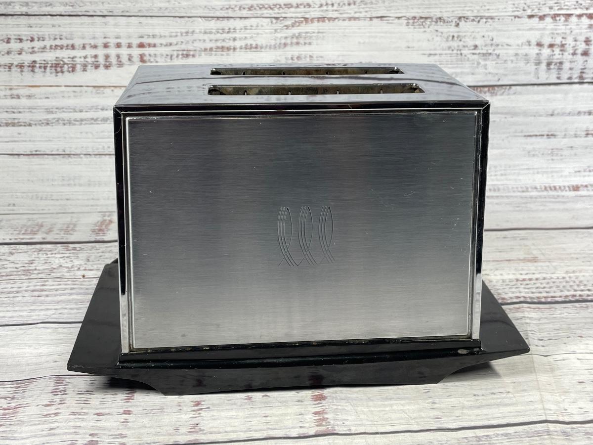 Item is in good condition. The toaster has been tested and does work. It is about 12” wide and 7.5” tall. There is a floral design on one side of the toaster that also has a good toaster guide.