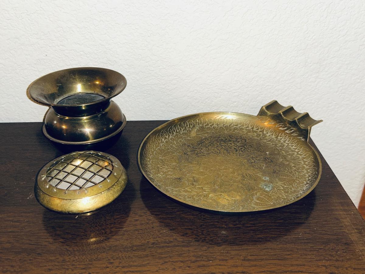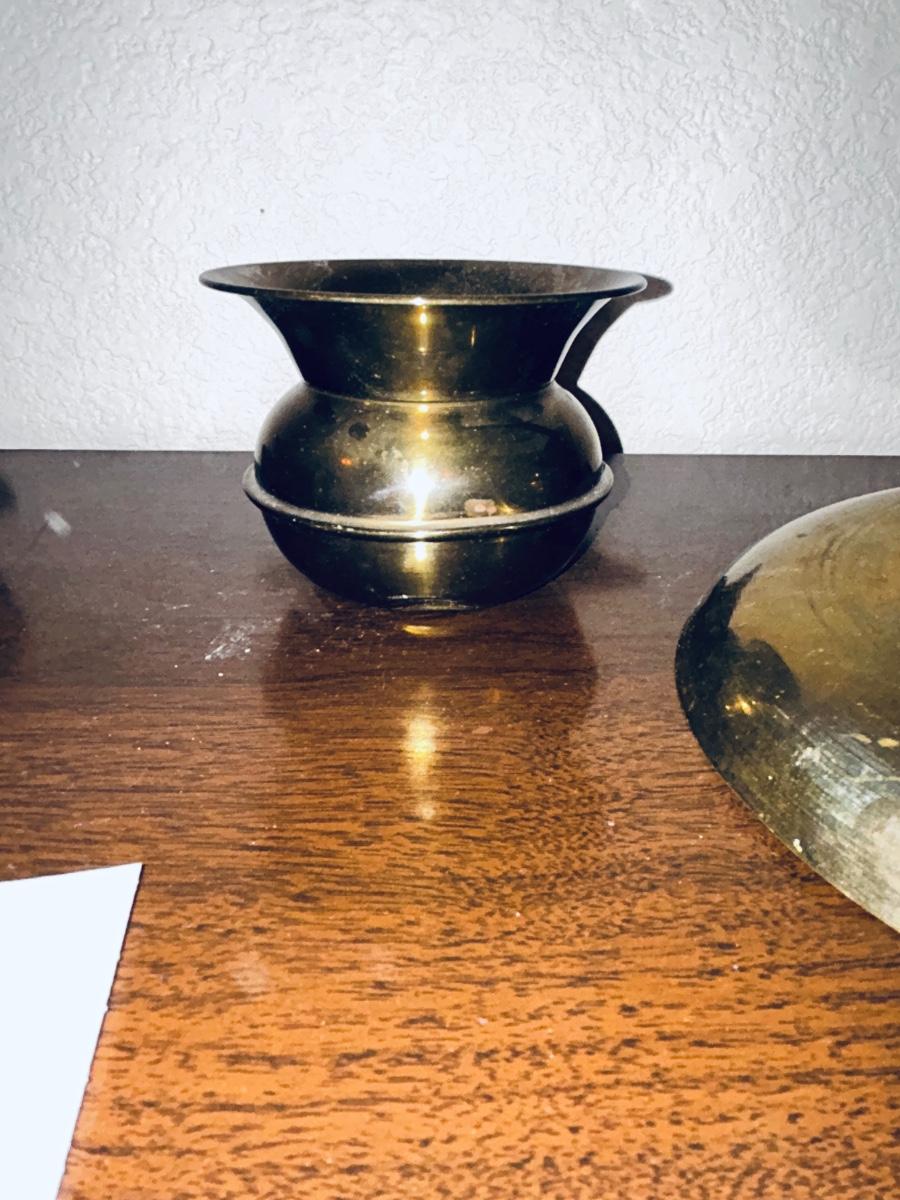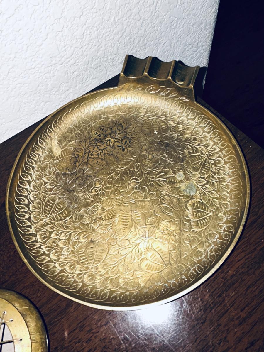 TOBACCO THEMED BRASS, A SPITTOON AND RATHER LARGE ASH TRAY? (MAYBE)