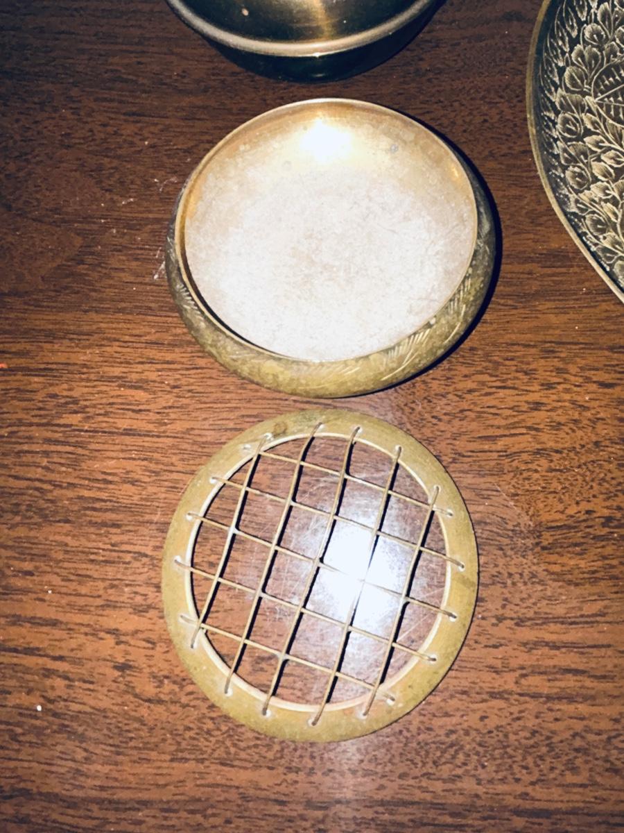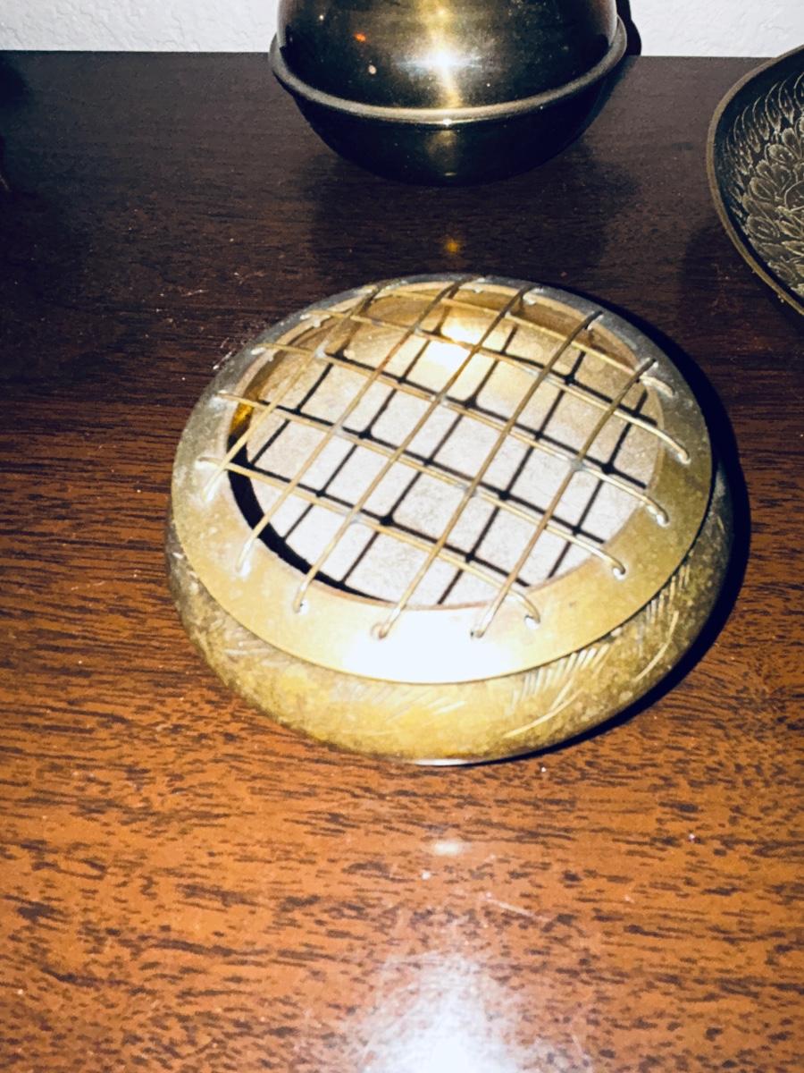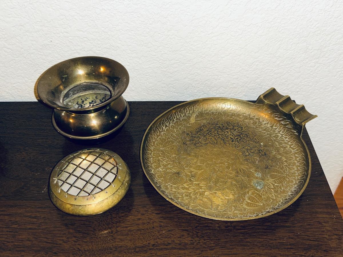 TOBACCO THEMED BRASS, A SPITTOON AND RATHER LARGE ASH TRAY? (MAYBE)