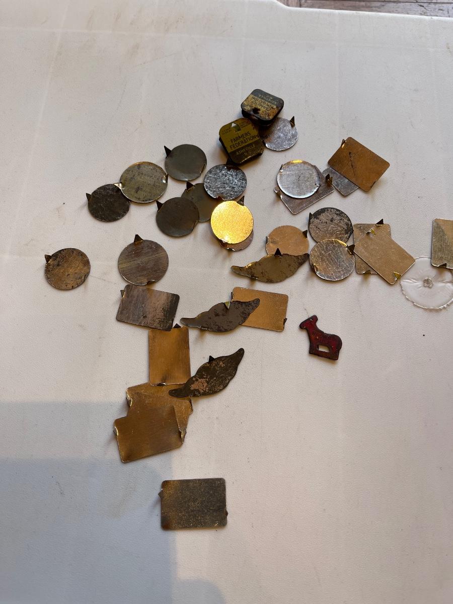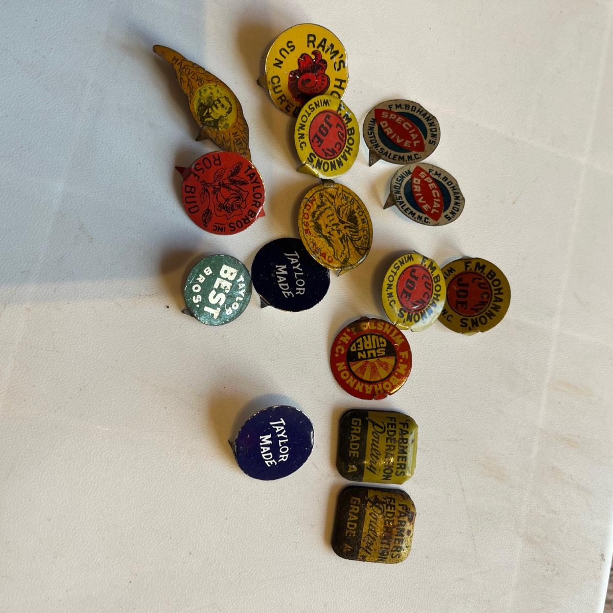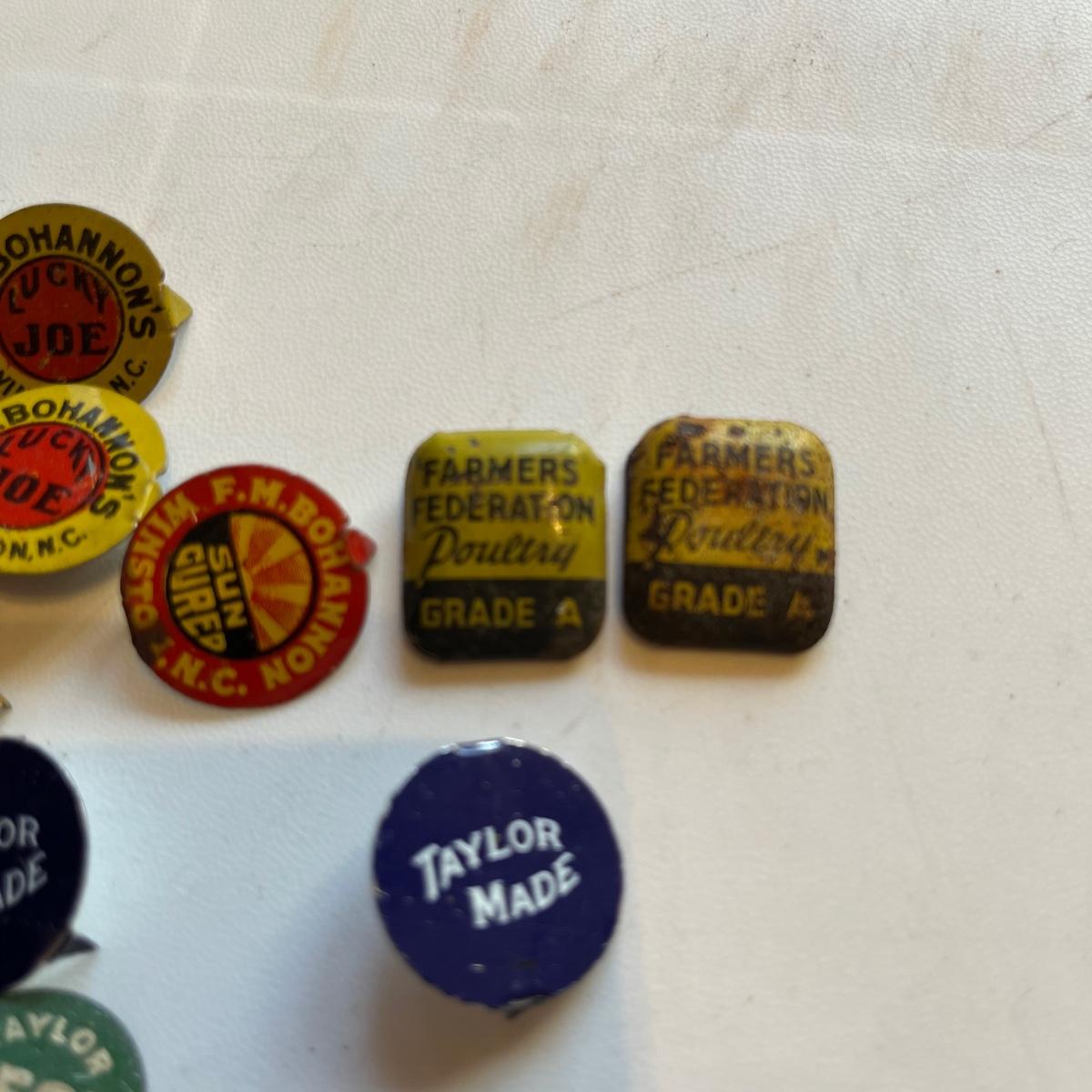 Lot contains over thirty tobacco tin tags including Taylor Bros, Black Maria, Rams Horn, F.M. Bohannon, Penns & more.