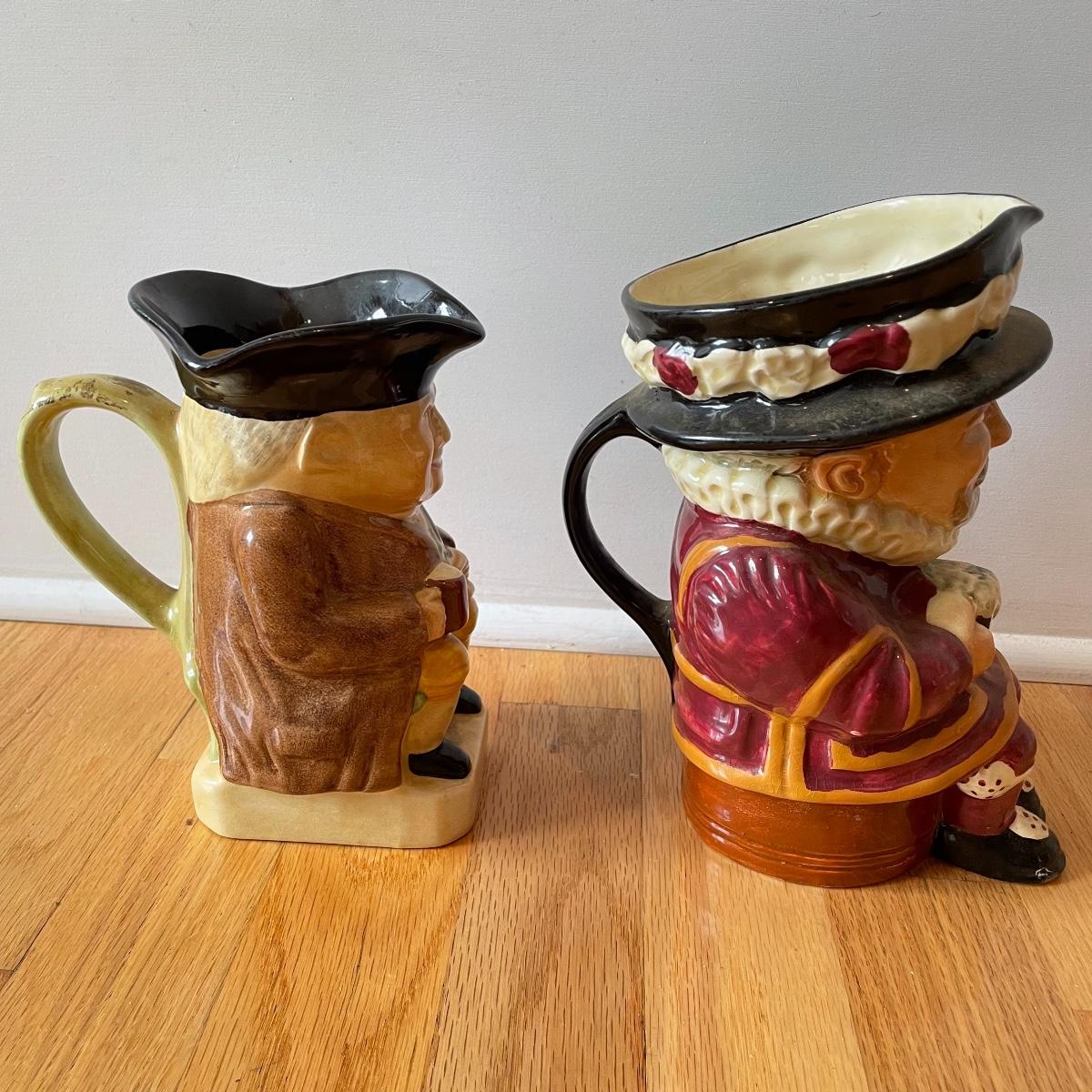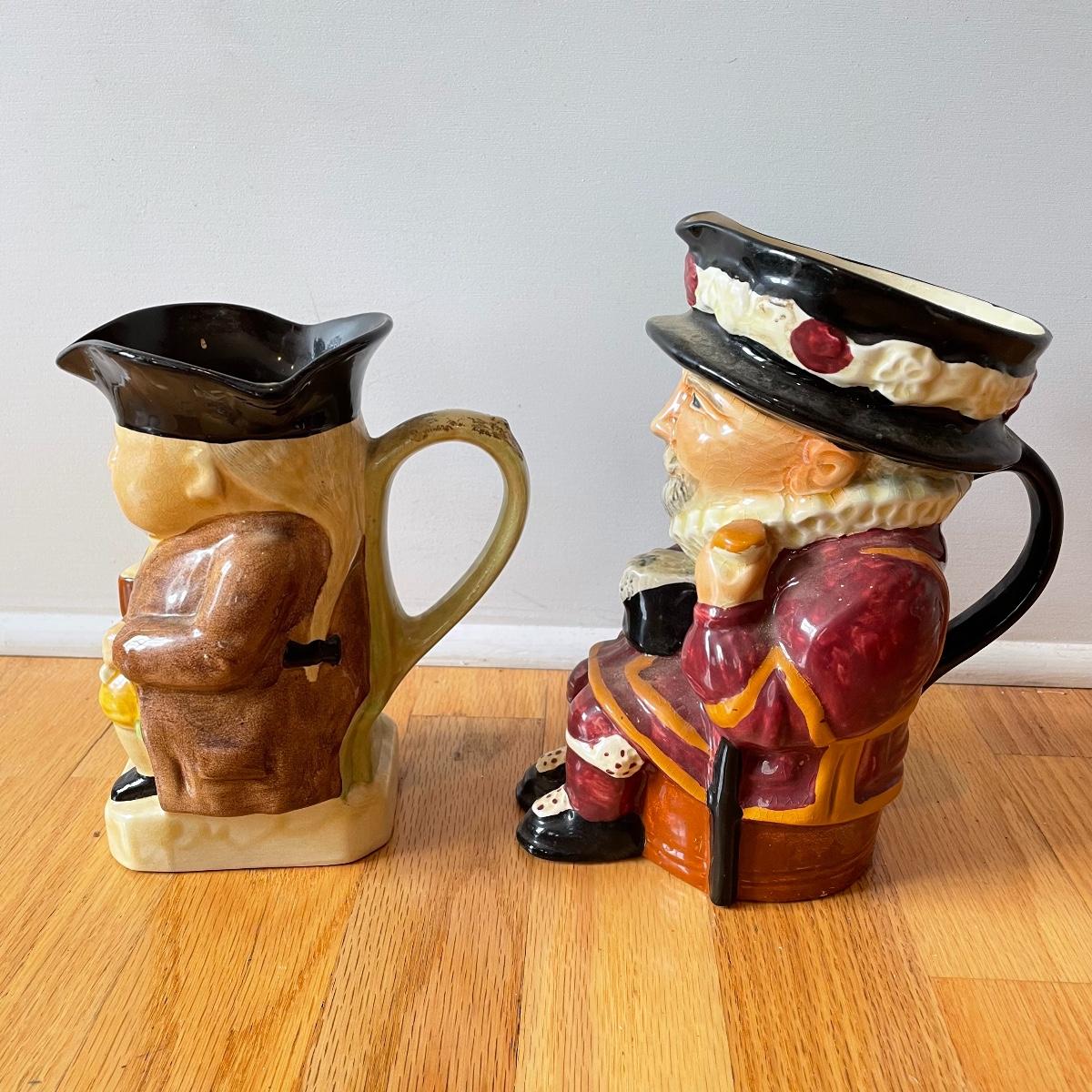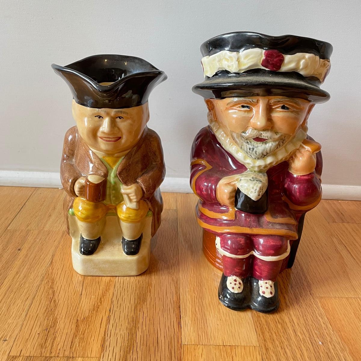 Two ceramic English steins. An 8.5” tall Beefeater and a 7.25” tall Toby Mugs. Shipping available.