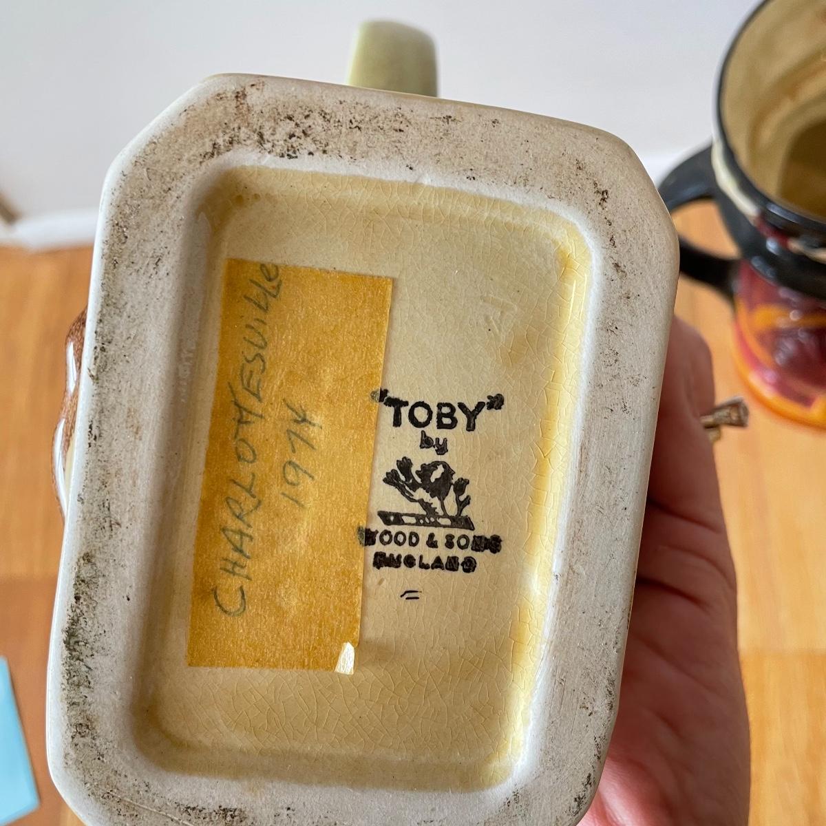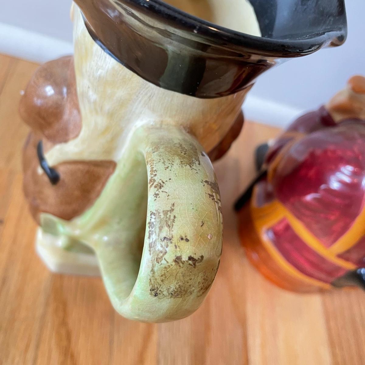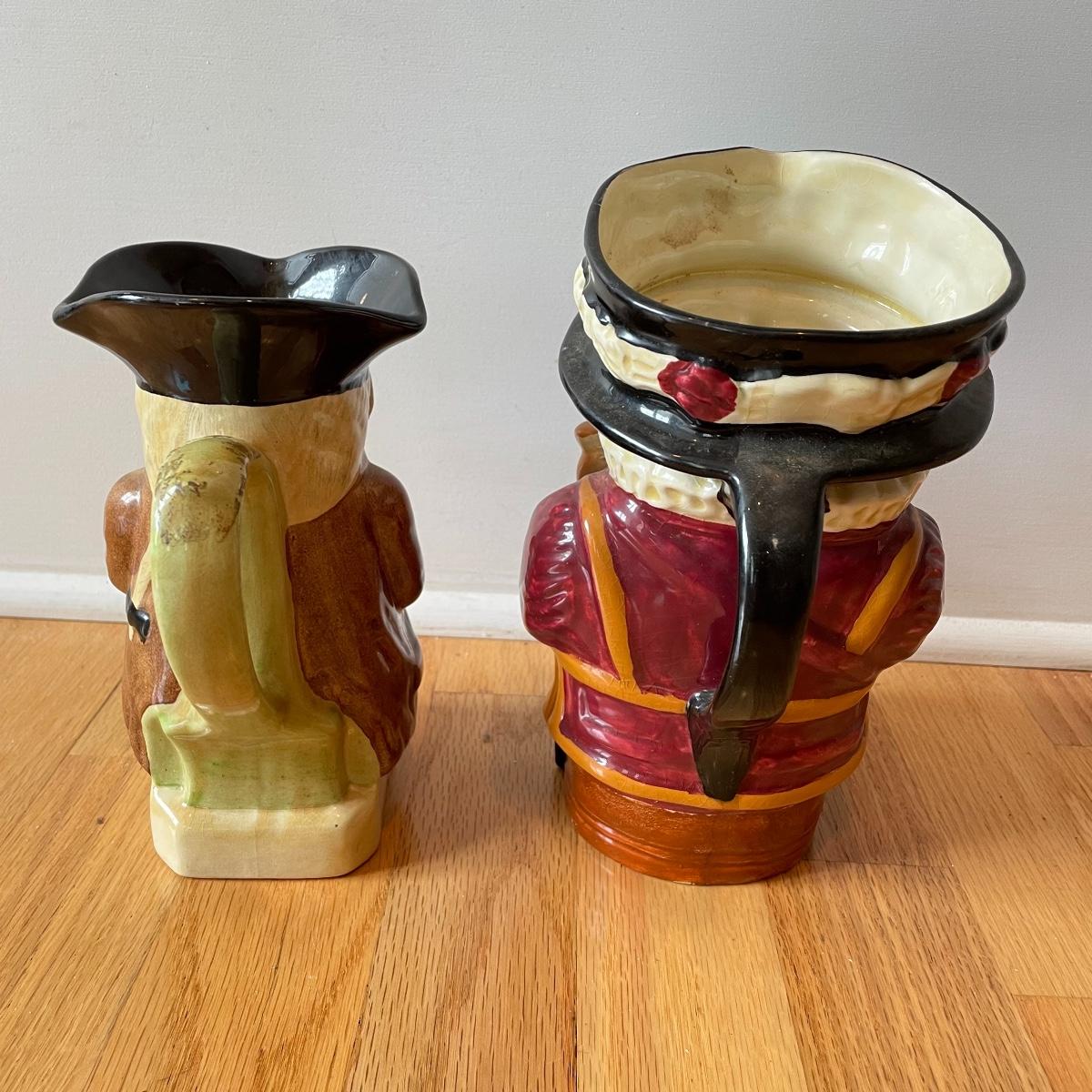 Two ceramic English steins. An 8.5” tall Beefeater and a 7.25” tall Toby Mugs. Shipping available.
