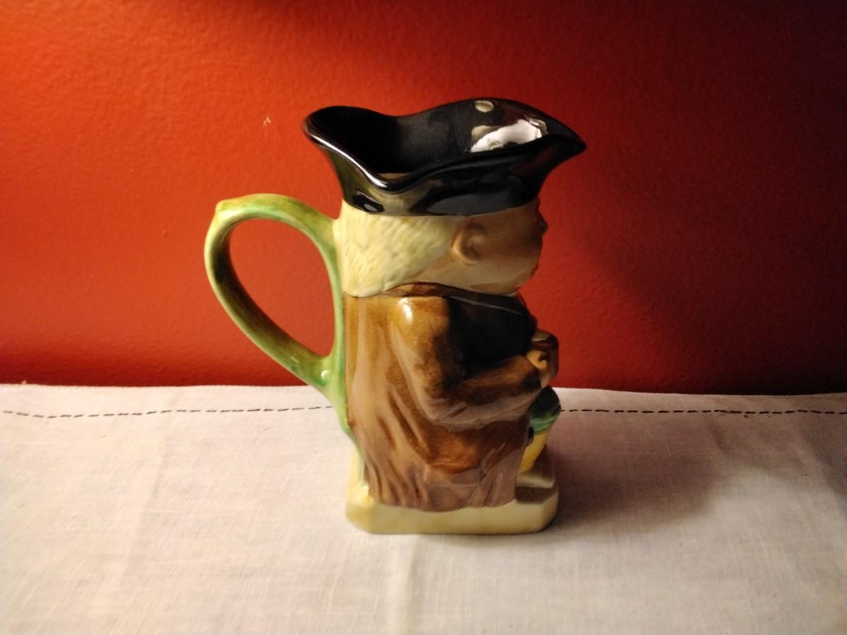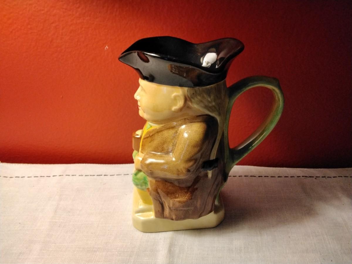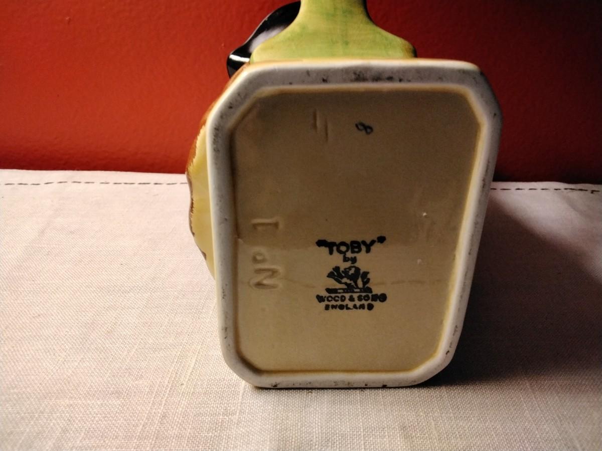 Wood & Son, Burslem, England, began in 1865, becoming Wood & Sons in 1907. Toby jugs were first made in the late 1700s. This jug was probably made in the 1950s or 1960s.