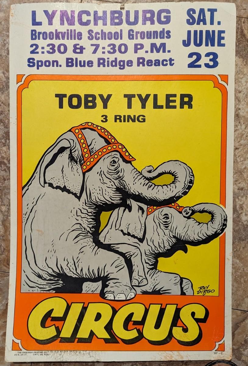 Toby Tyler 3 Ring Circus poster 1984 Brookville School Lynchburg VA