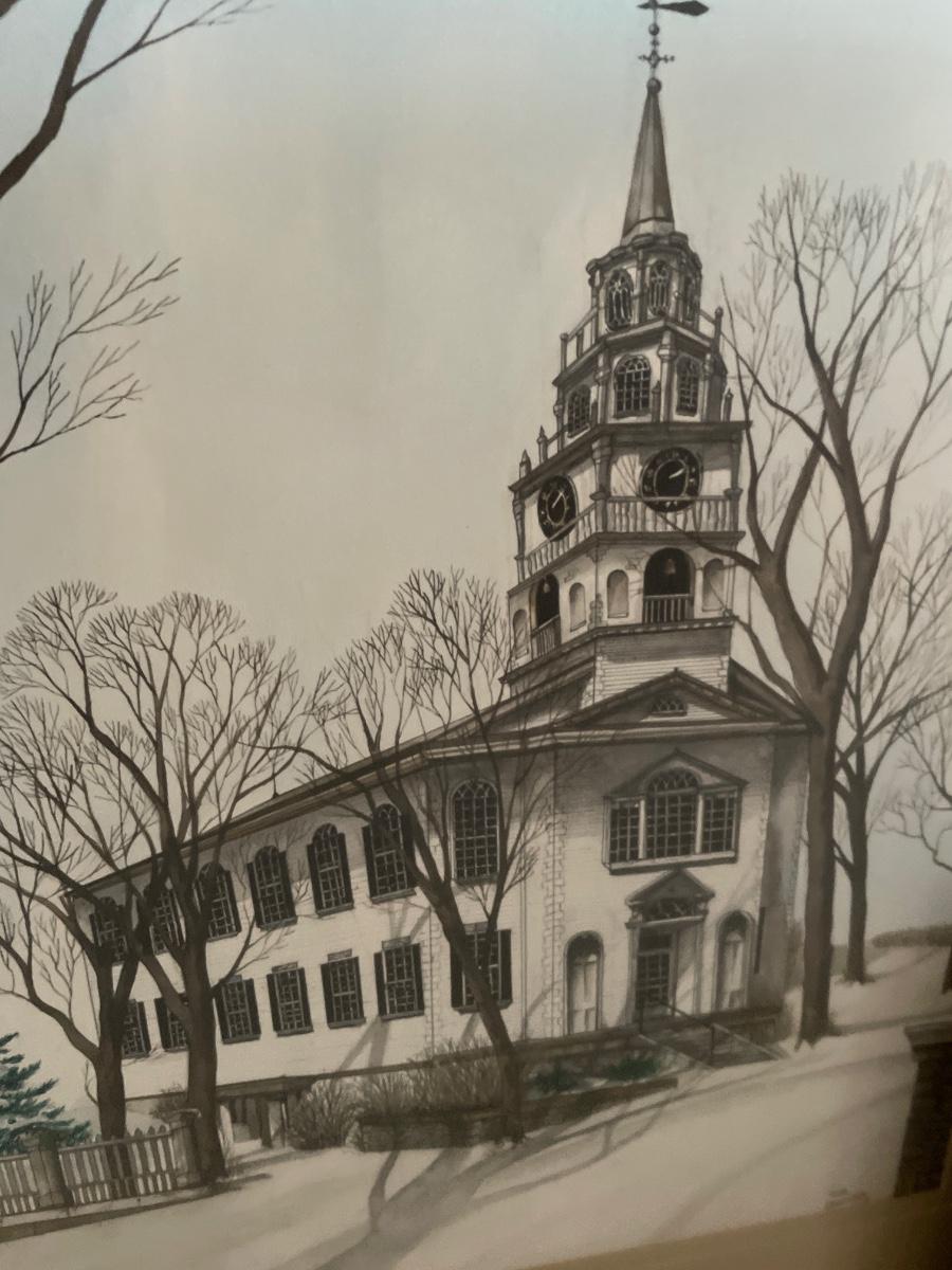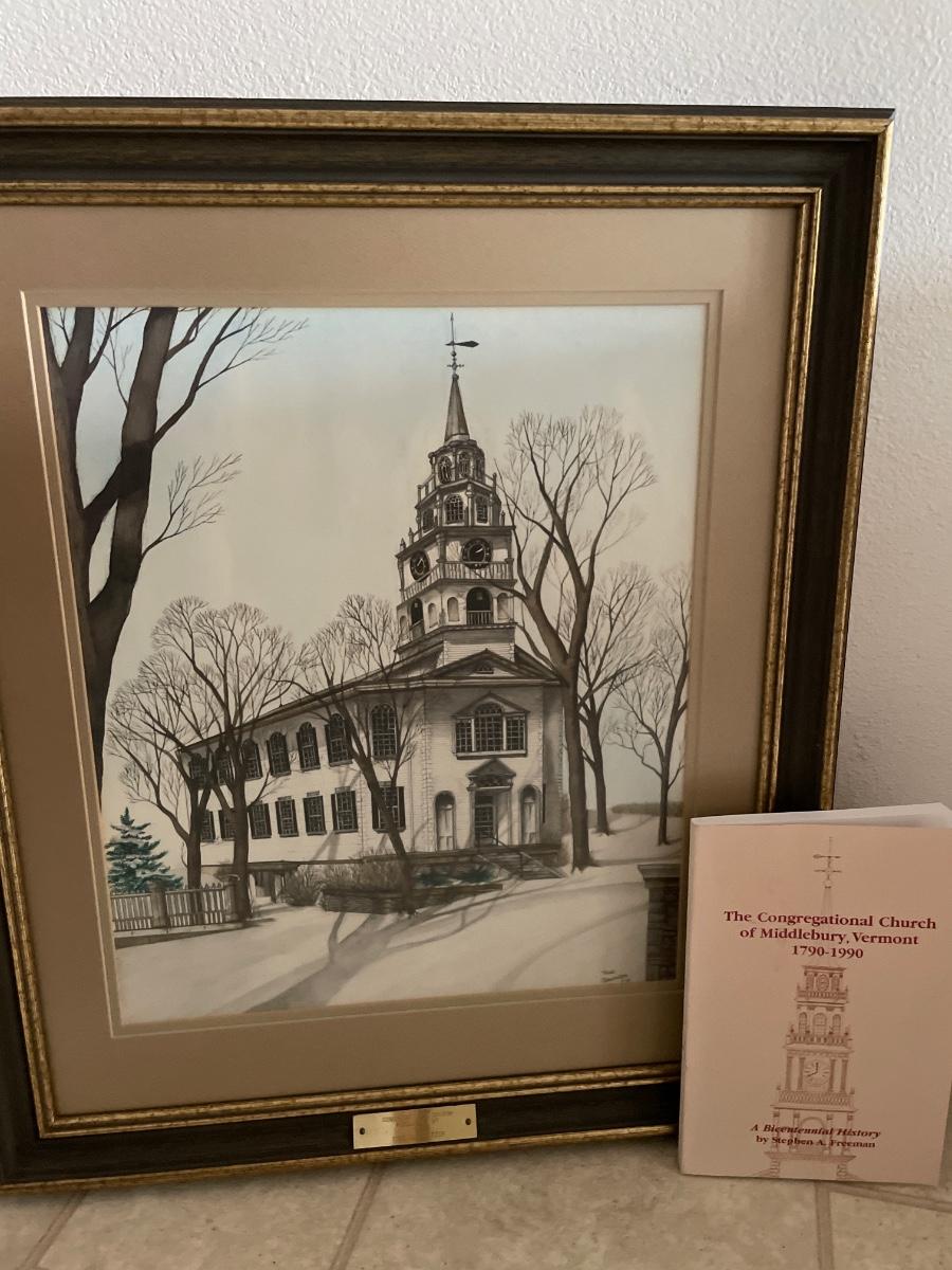 Congressional church, Middlebury, Vermont art by local ND artist Todd Clausnitzer..