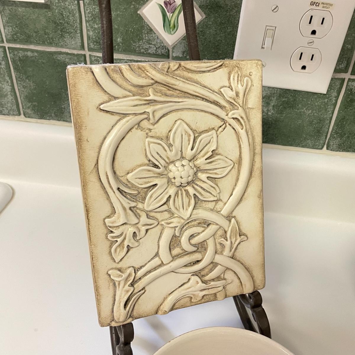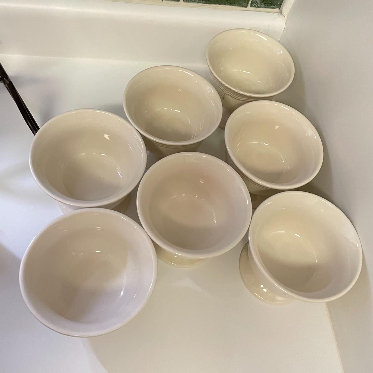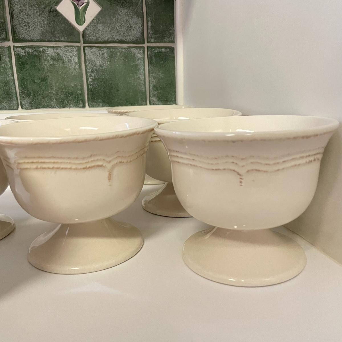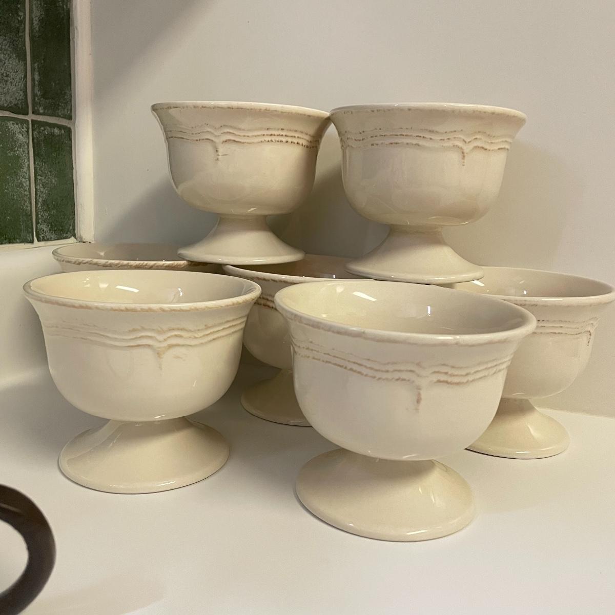 Seven Todd English footed bowls are 5”d x 4”. One 6” x 2.75” oven/microwave/dishwasher safe bowl included. Heavy resin Sid Dickens memory block names T-368 Traveller’s Joy measures 6” x 8” and comes with heavy iron easel. Local pick up only.