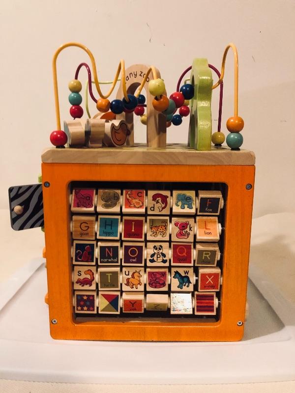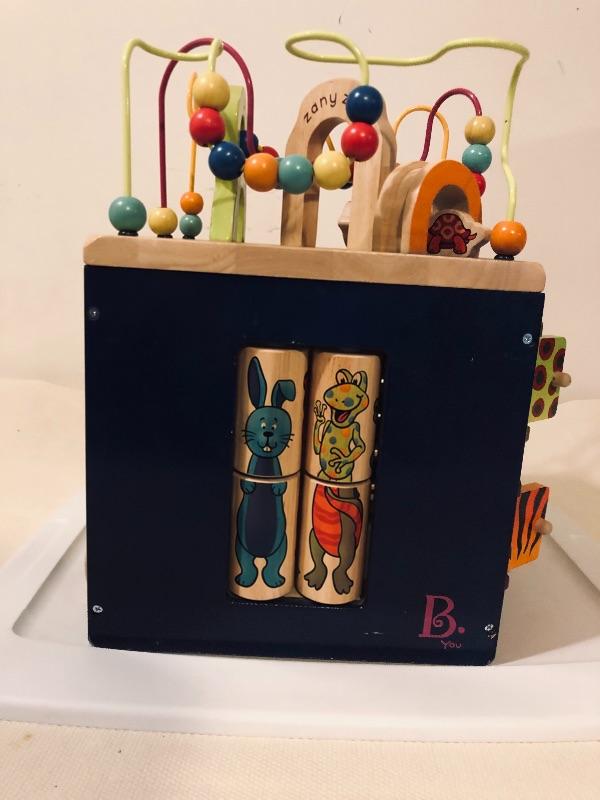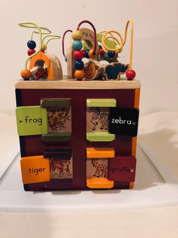 This is a Melissa and Doug brand activity cube for toddlers. Excellent condition