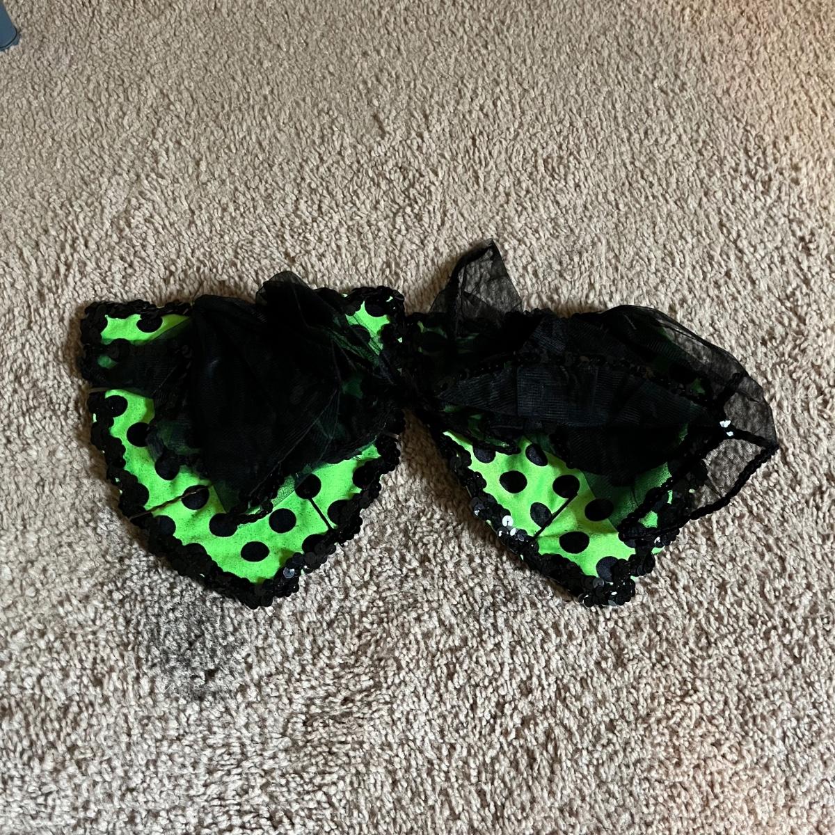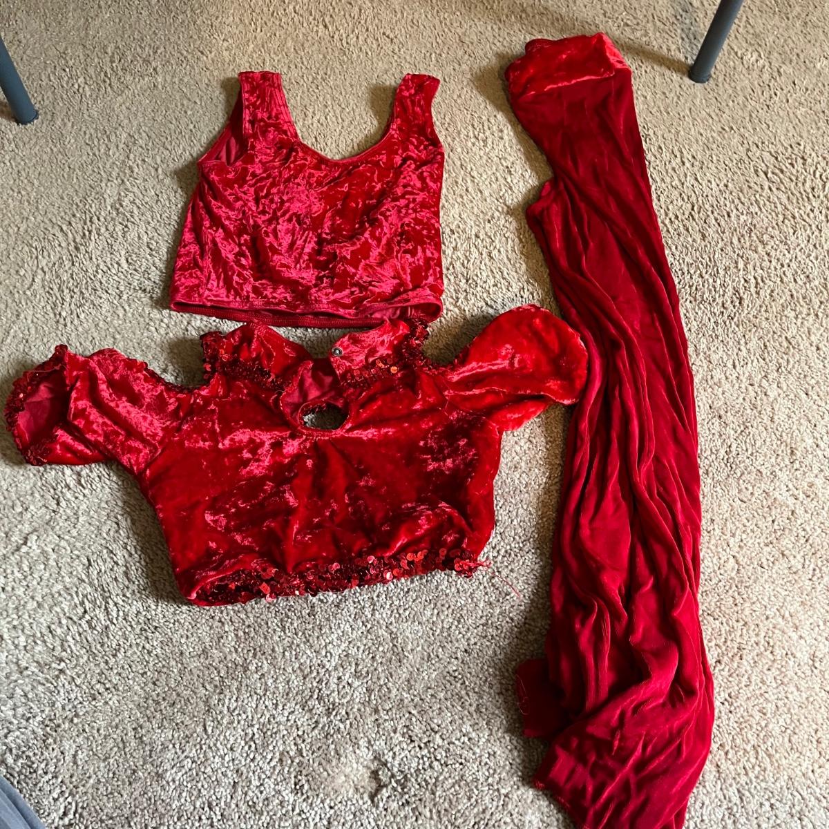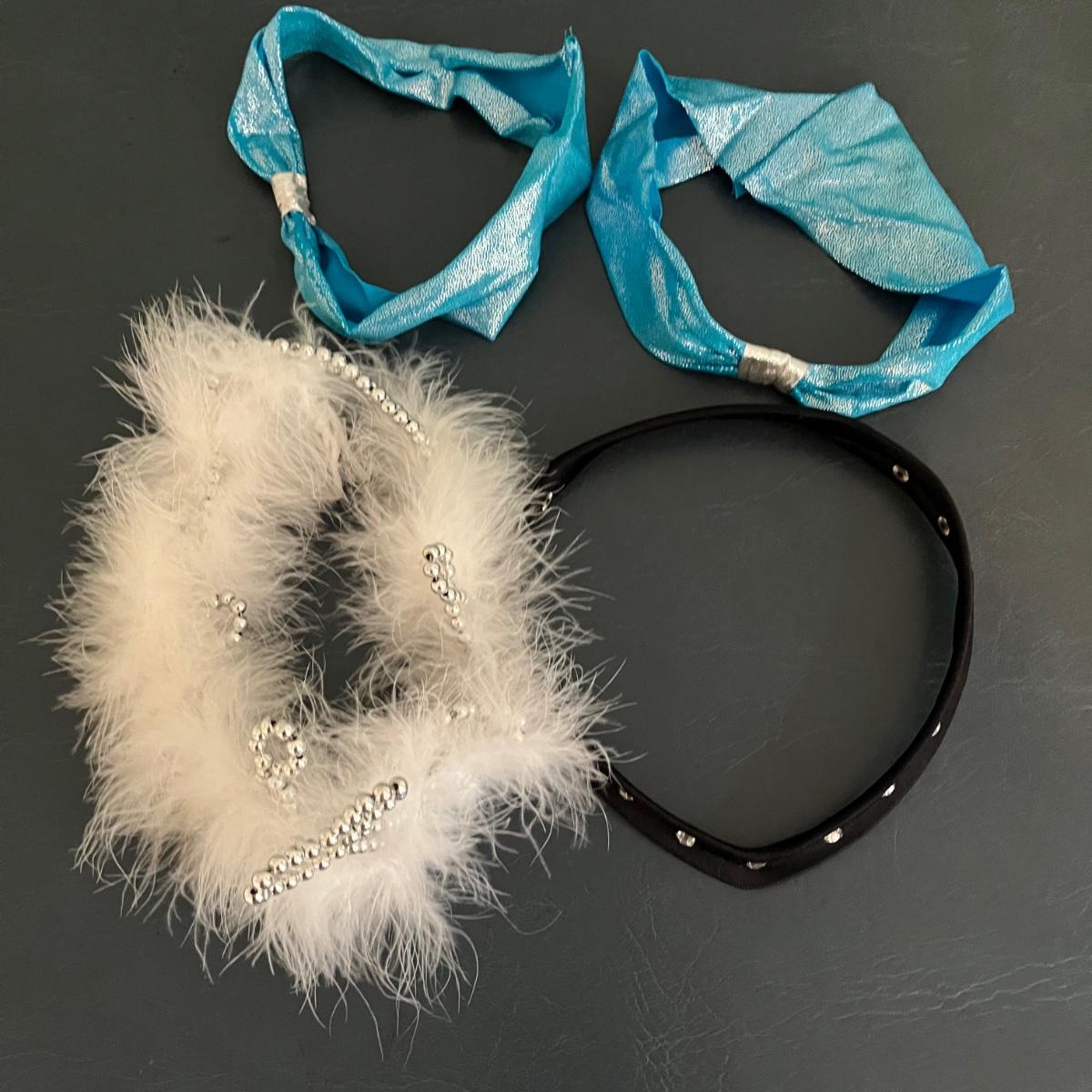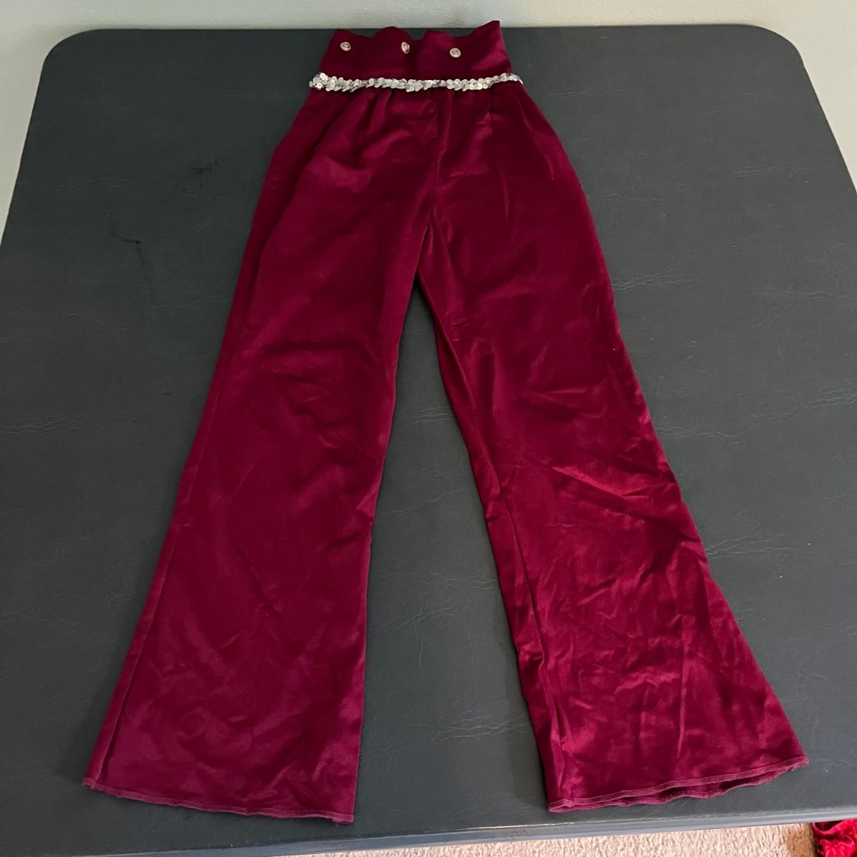 Lot includes dance shoes and skirt, four headbands, two red tops, two pair of gloves, designer black hat in size small, checkered shorts and more. Shorts have a 20” waist.