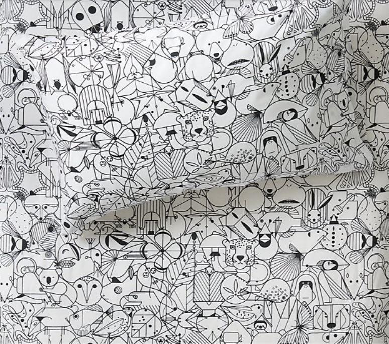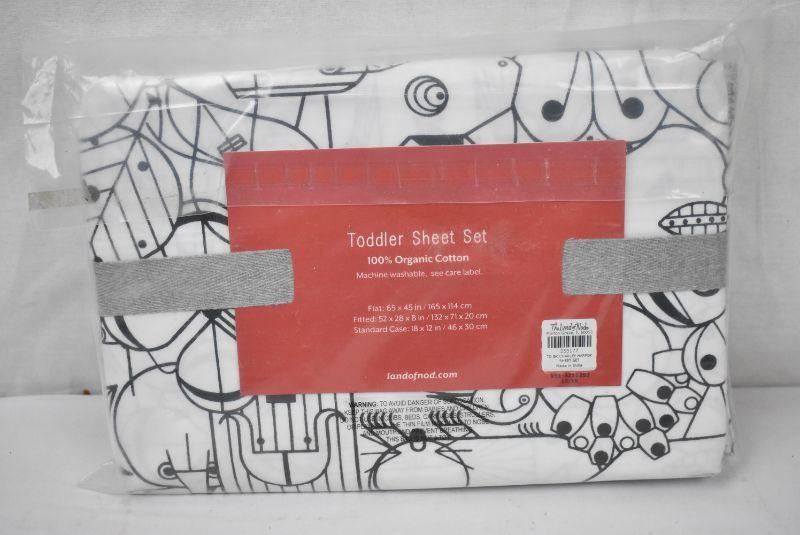 Toddler Sheet Set, 3 pieces, White & Black. Charley Harper for Land of Nod - New