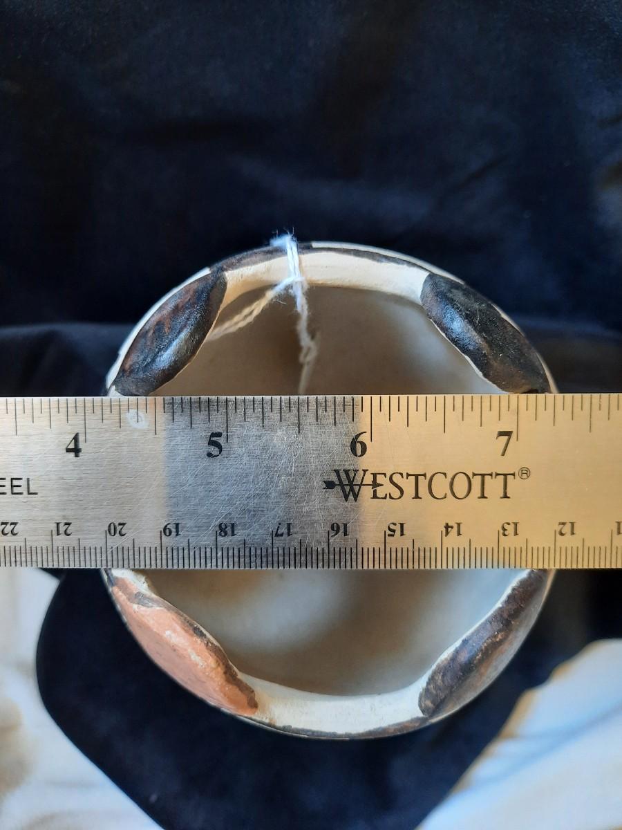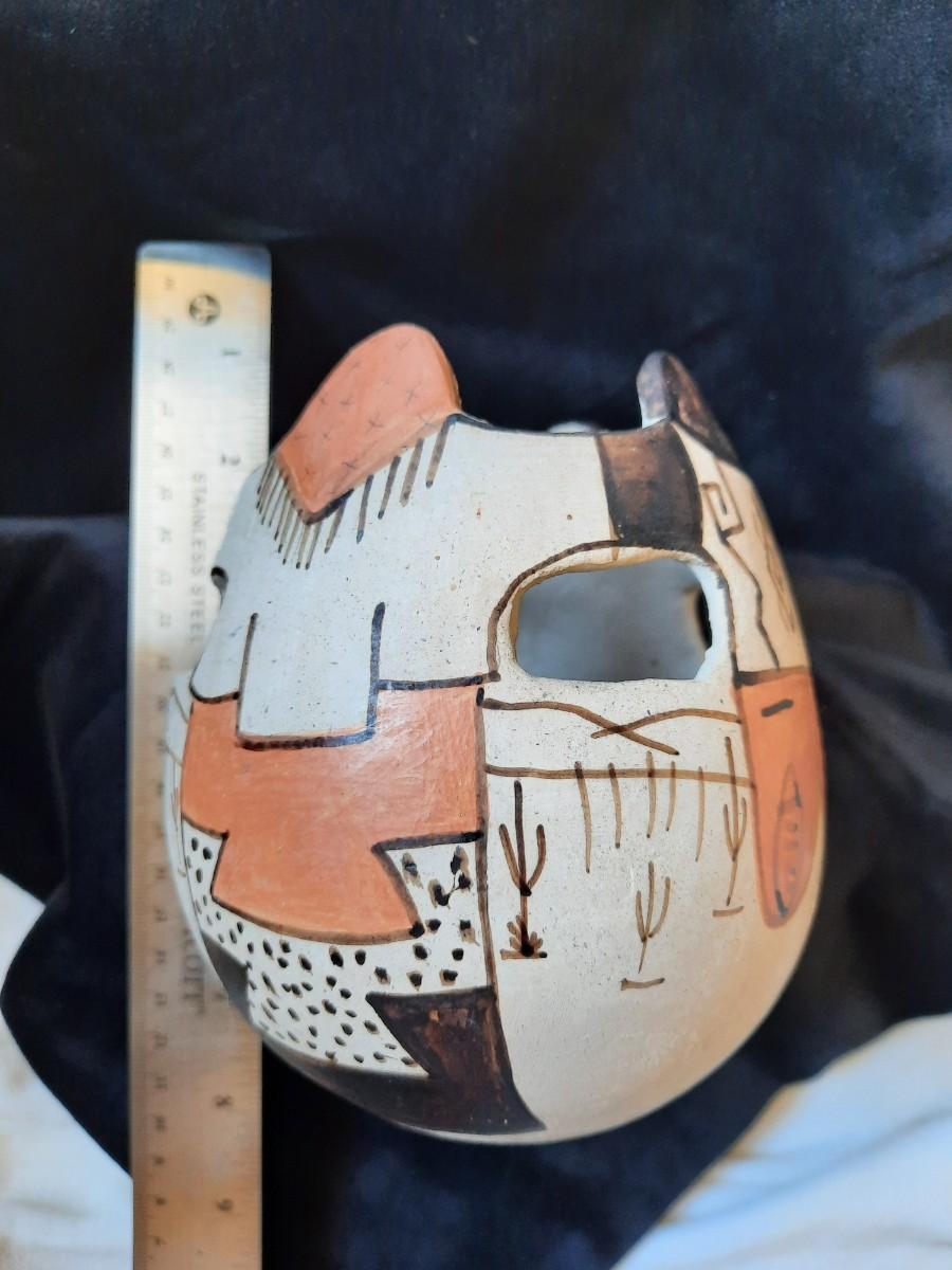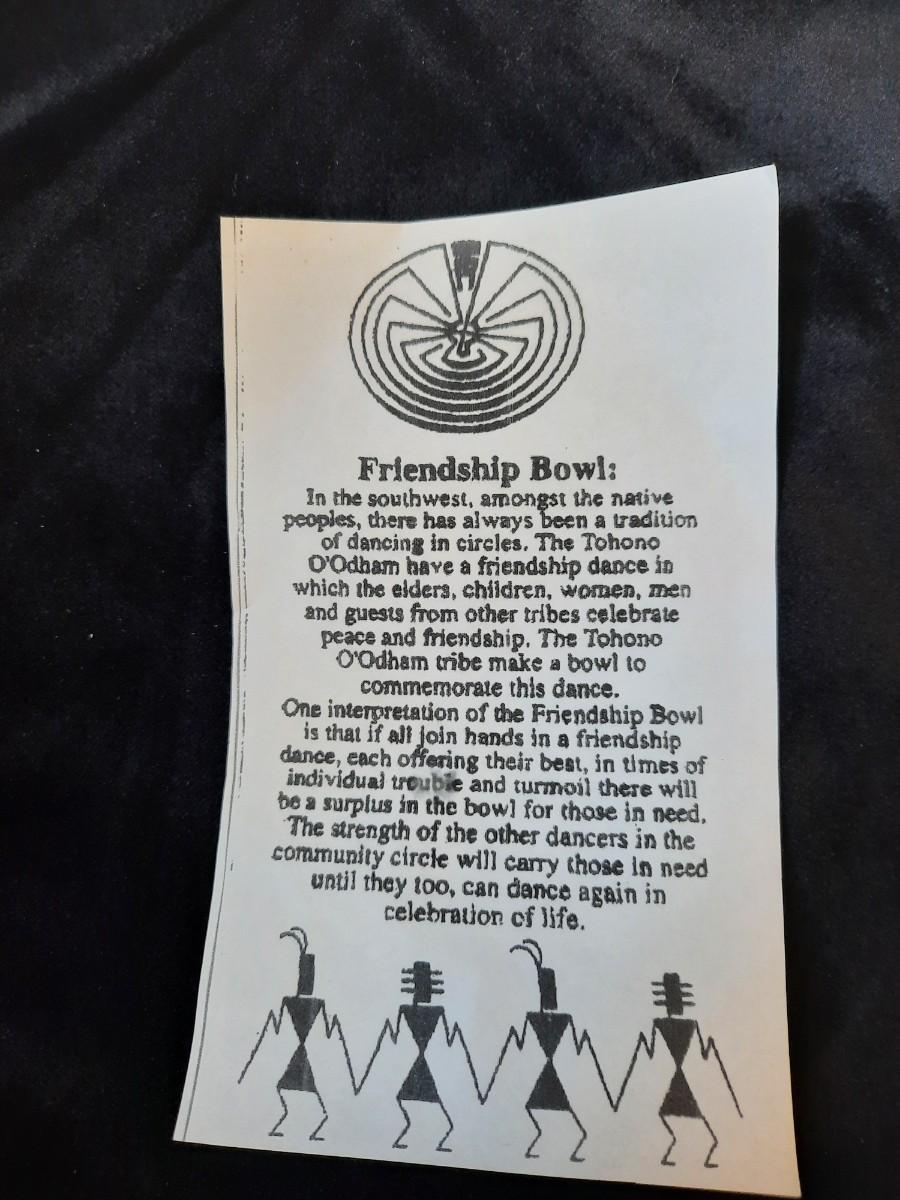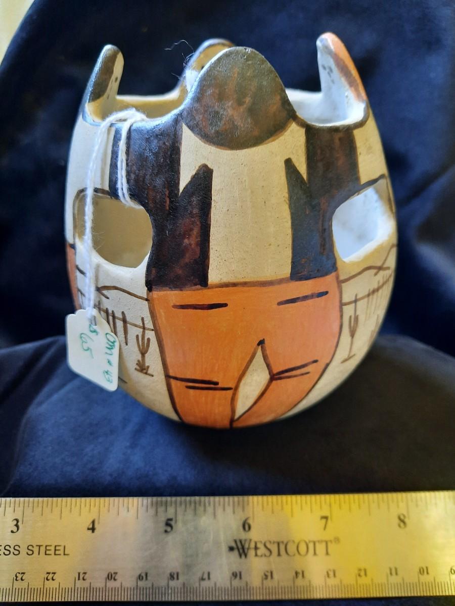 Hand made and hand painted clay friendship bowl made by Angea of the Tohono O'Odham tribe.