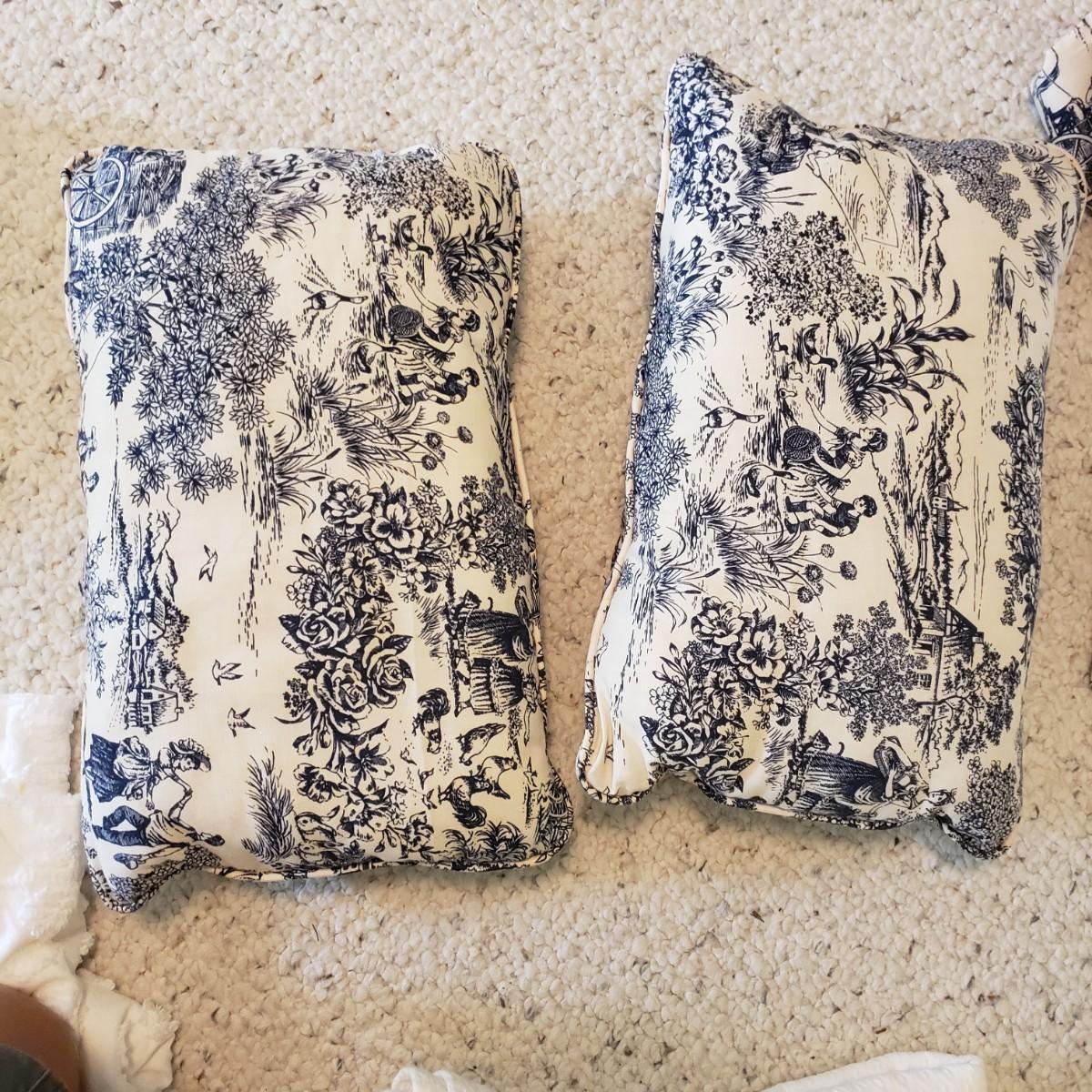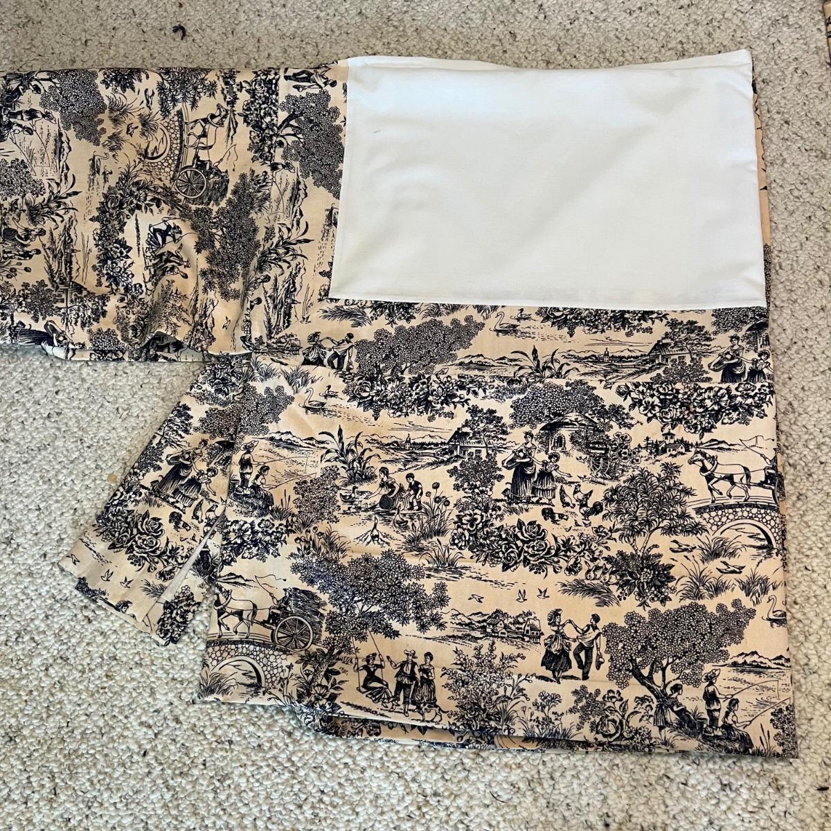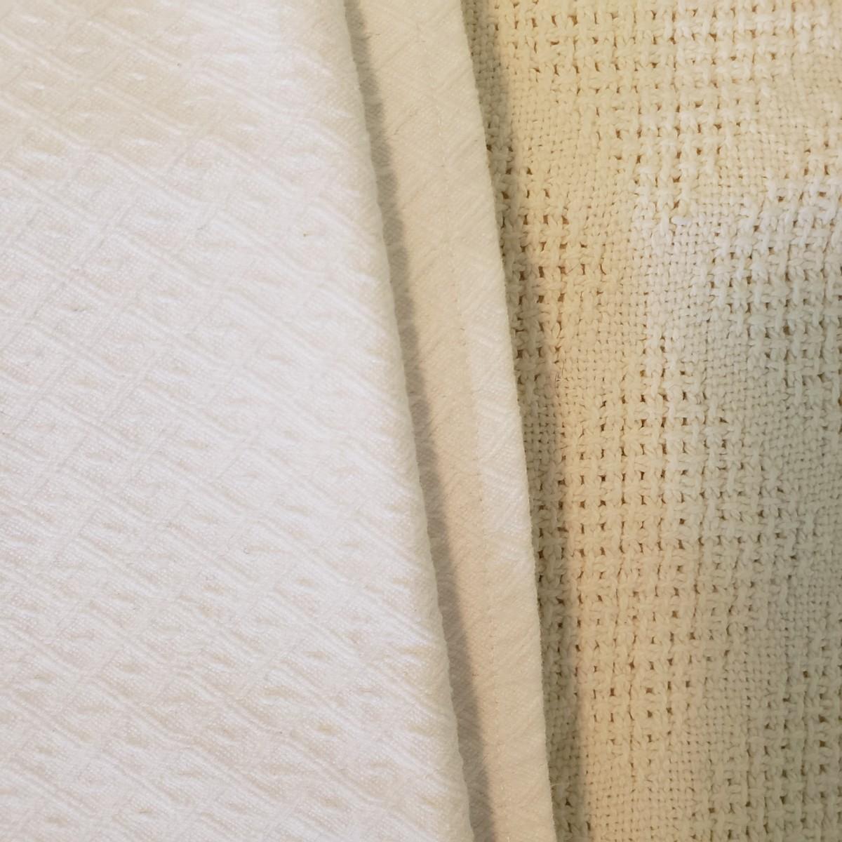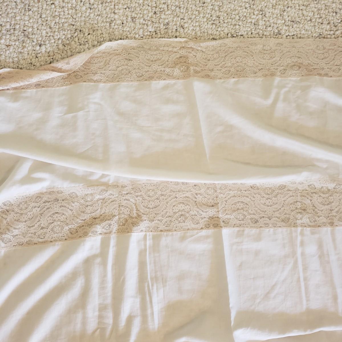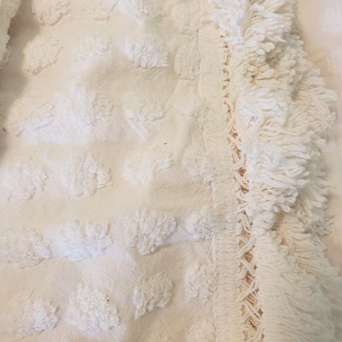 Twin bedding! There are two Martha Stewart chenille style white bedspreads with matching pillow shams, two cotton blankets, the white one has a stain, see pictures. Two wool blankets in a soft cream color, without tags and two lace bed coverlets. Also included, is one mattress cover,, which appears to be new in the bag. Finally, are what appears to be hand-sewn bedskirts for twin beds and measure 20.5 wide x 72” long with two matching pillows. Each measures approximately 17” x 3” x 10”H.