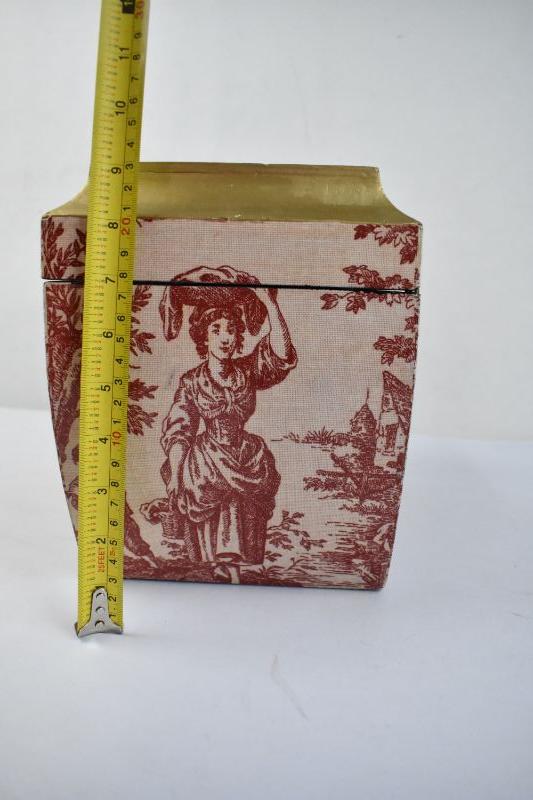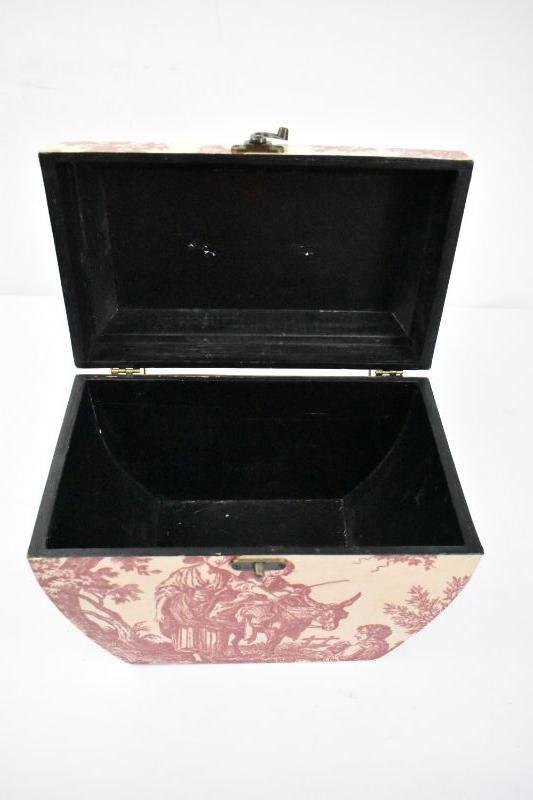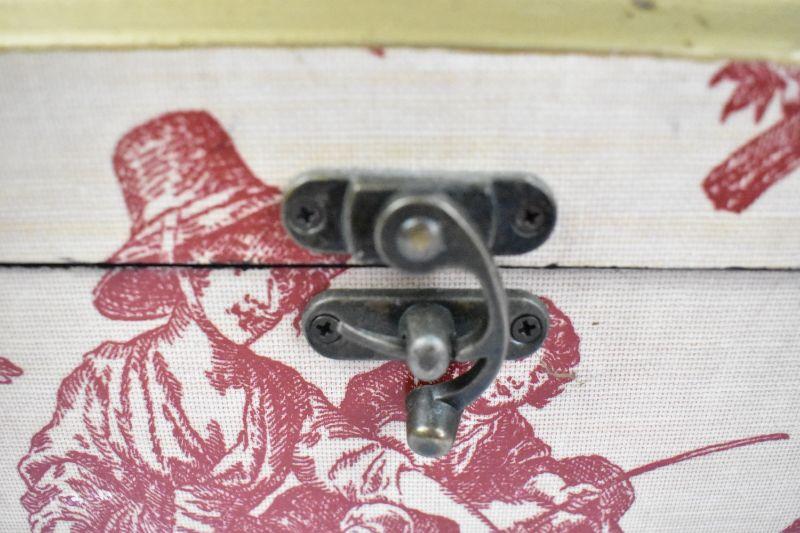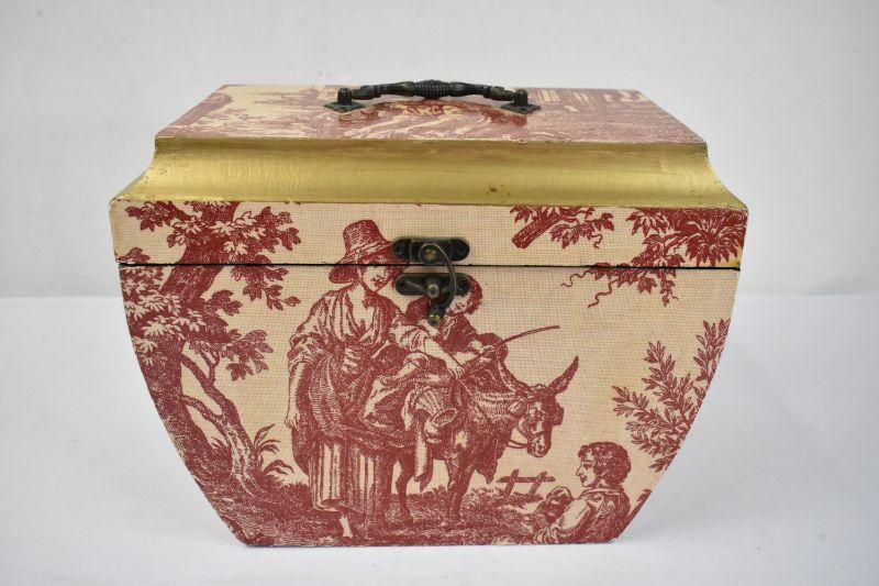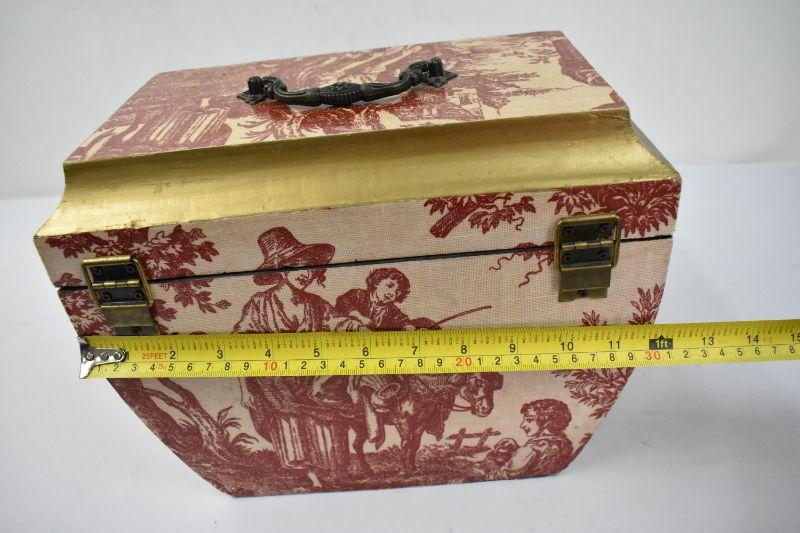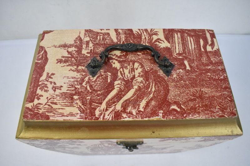 Toile Design Wooden Hinged Box, Tan/Gold/Red