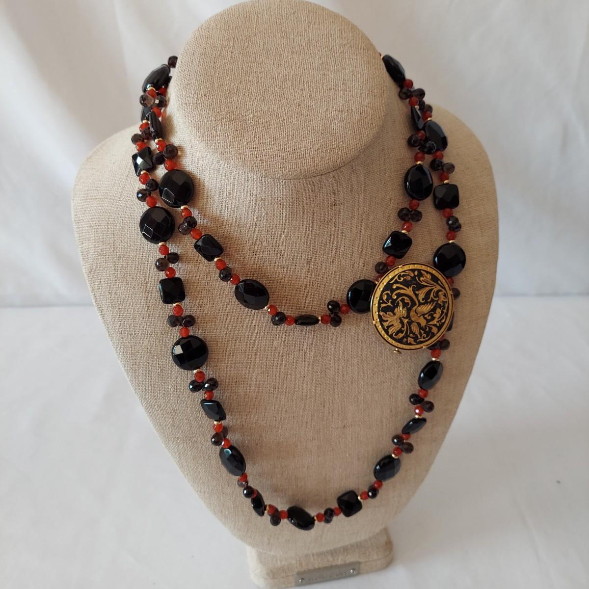 Toledo Damascene 24k Jewelry and 14k Beaded Necklace (PB2-BBL)