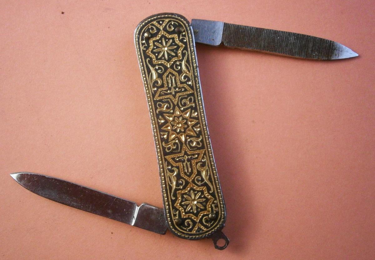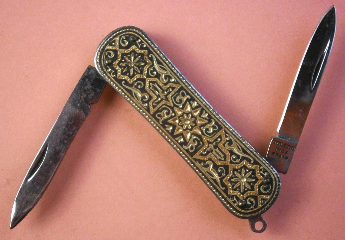 Toledo INOX Spain Pocket Knife, 2 1/4 in. closed, 2 blades, brass frame.