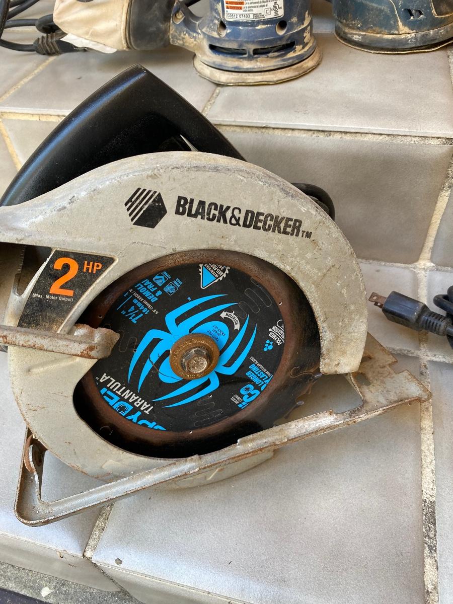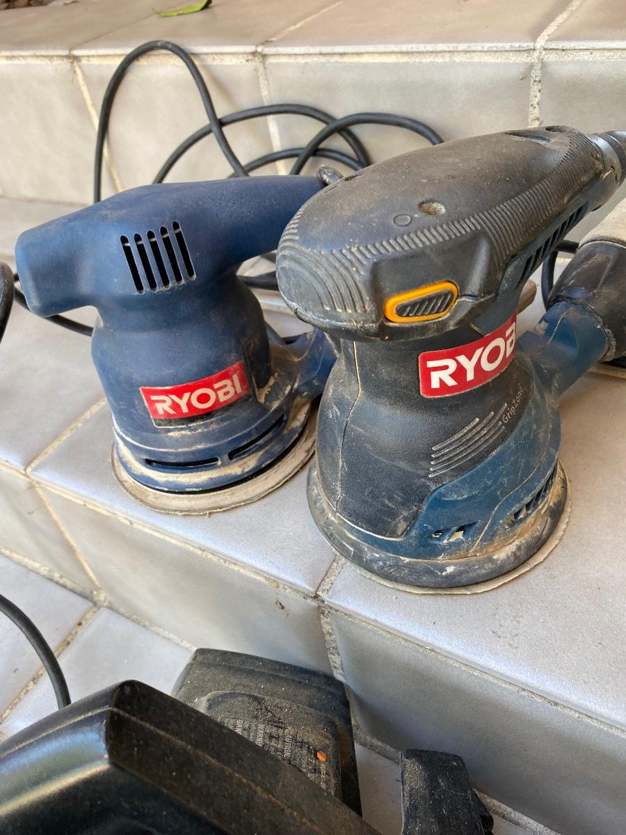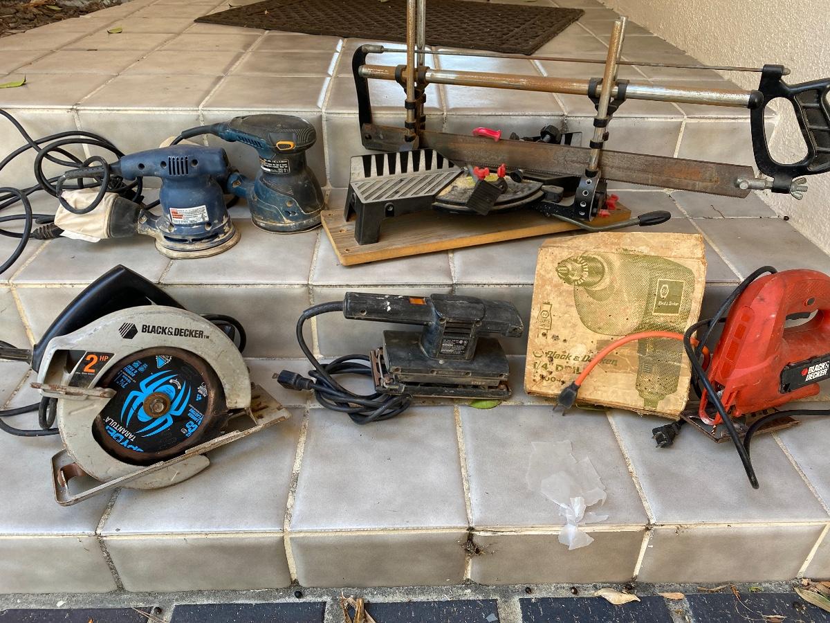 Power tool lot. Includes tools from Ryobi and Black & Decker. Sanders, Saws and drills. Corded tools are untested.