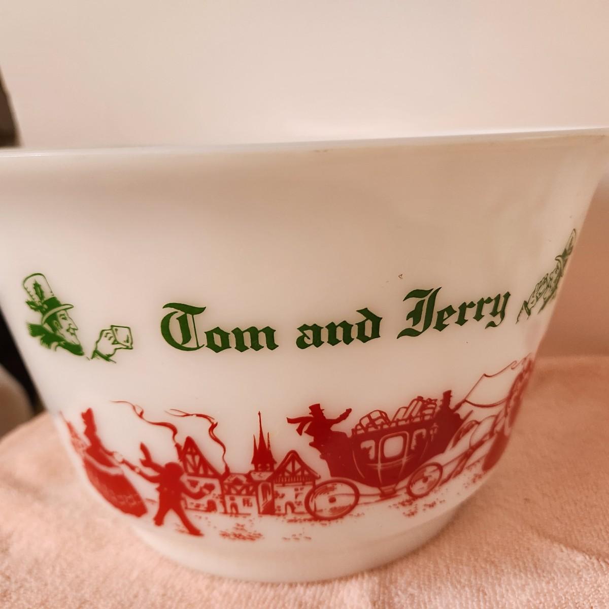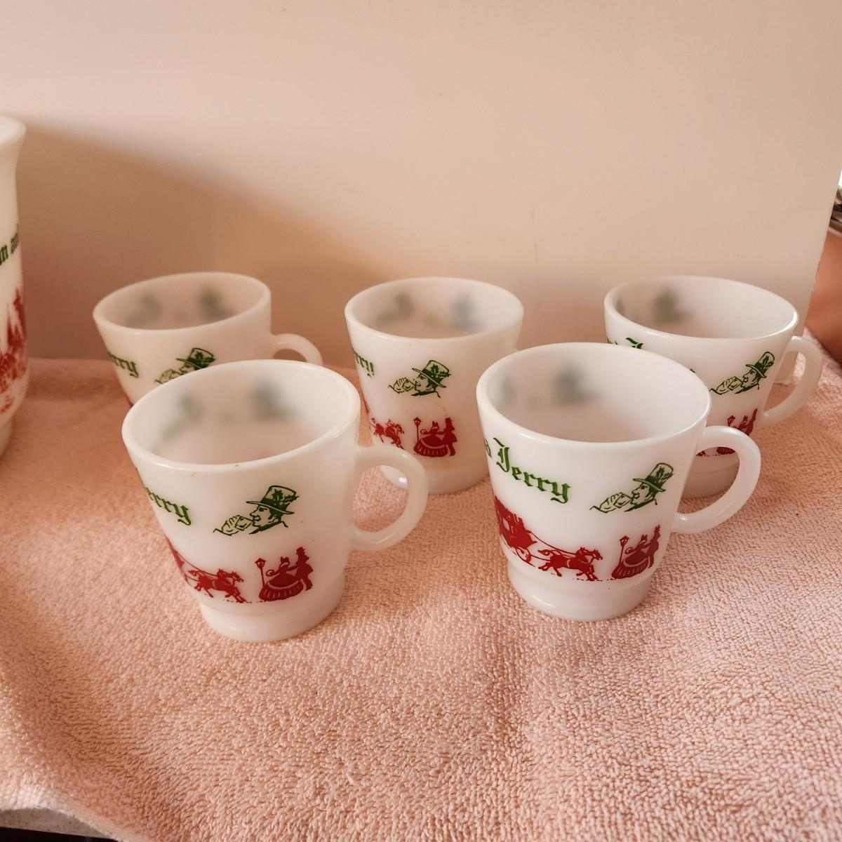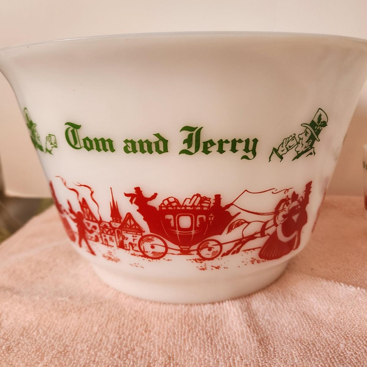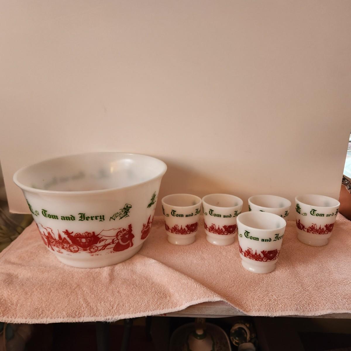 Tom and Jerry Red Carriage Bowl & 5 Cups Mugs Barware Punch Eggnog set