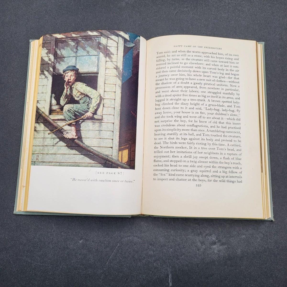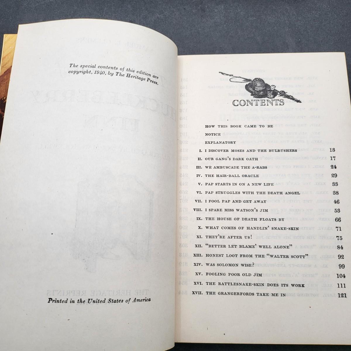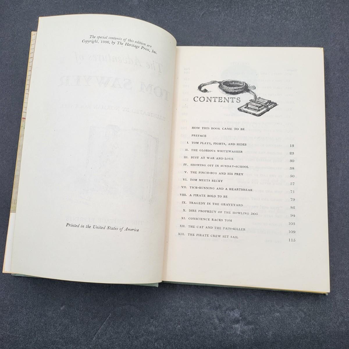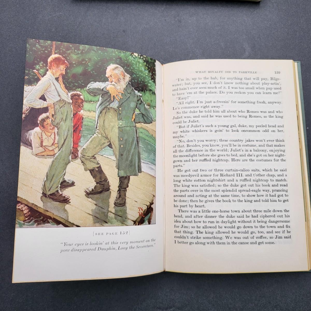 Heritage Press, Tom Sawyer 1939, Huckleberry Finn 1940, Samuel L. Clemens, hardback books. Illustrated by Norman Rockwell. Some inscription pen mark writing and owner sticker inside. Covers and binding are in pretty decent shape, except for the cardboard sleeve they are stored in has flaws.