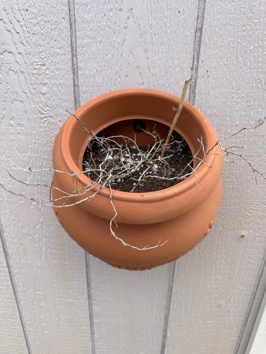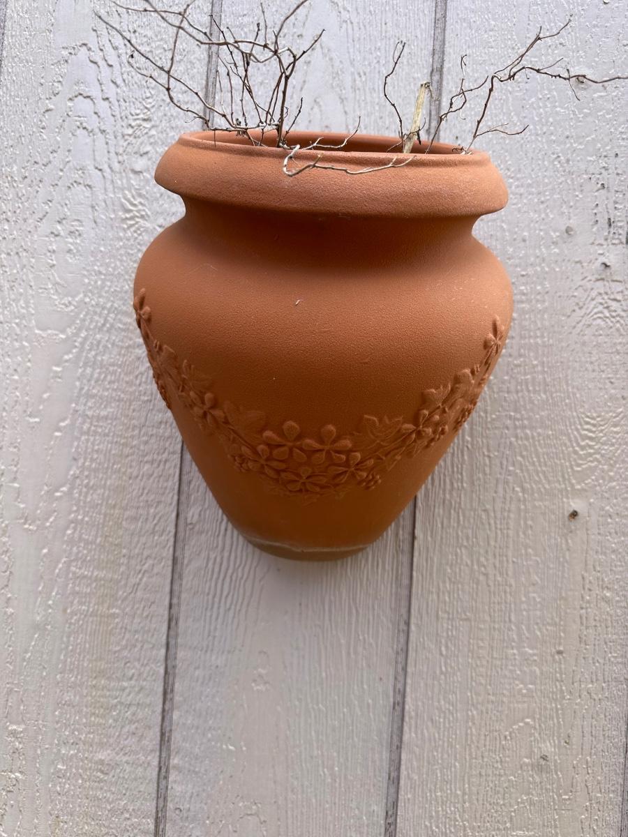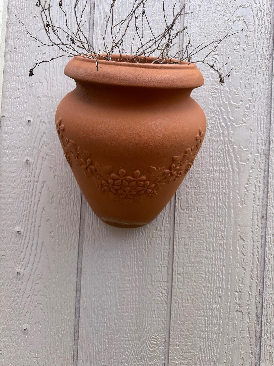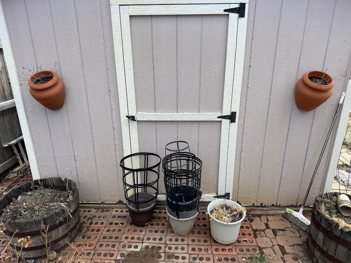 TOMATO CAGE LIKE POTS AND 2 WALL HUNG FLOWER POTS