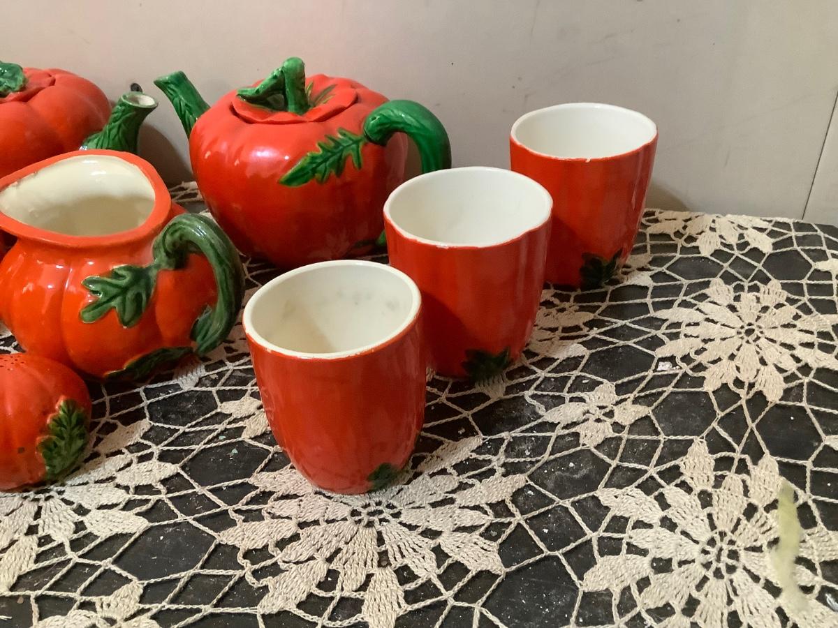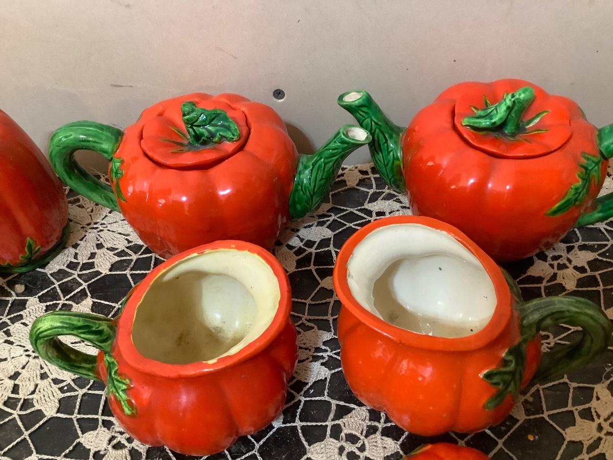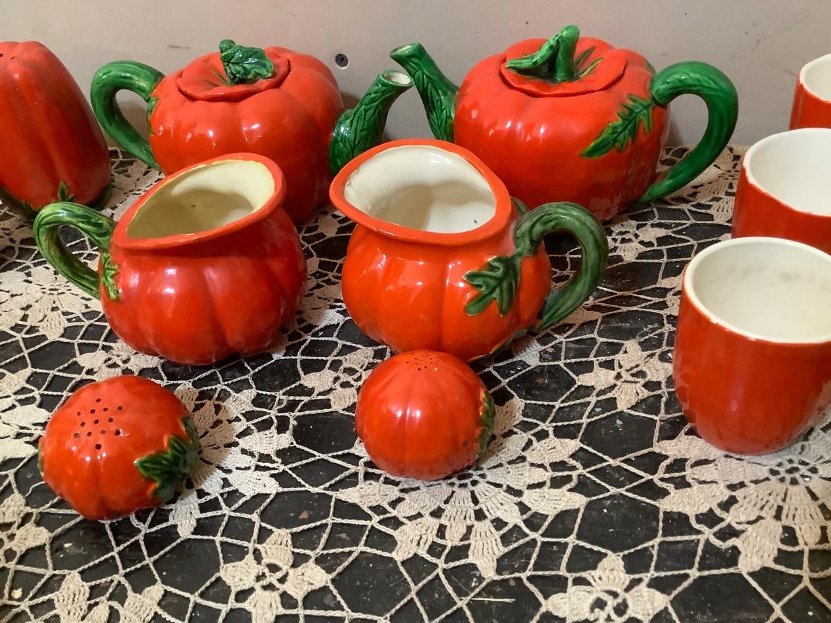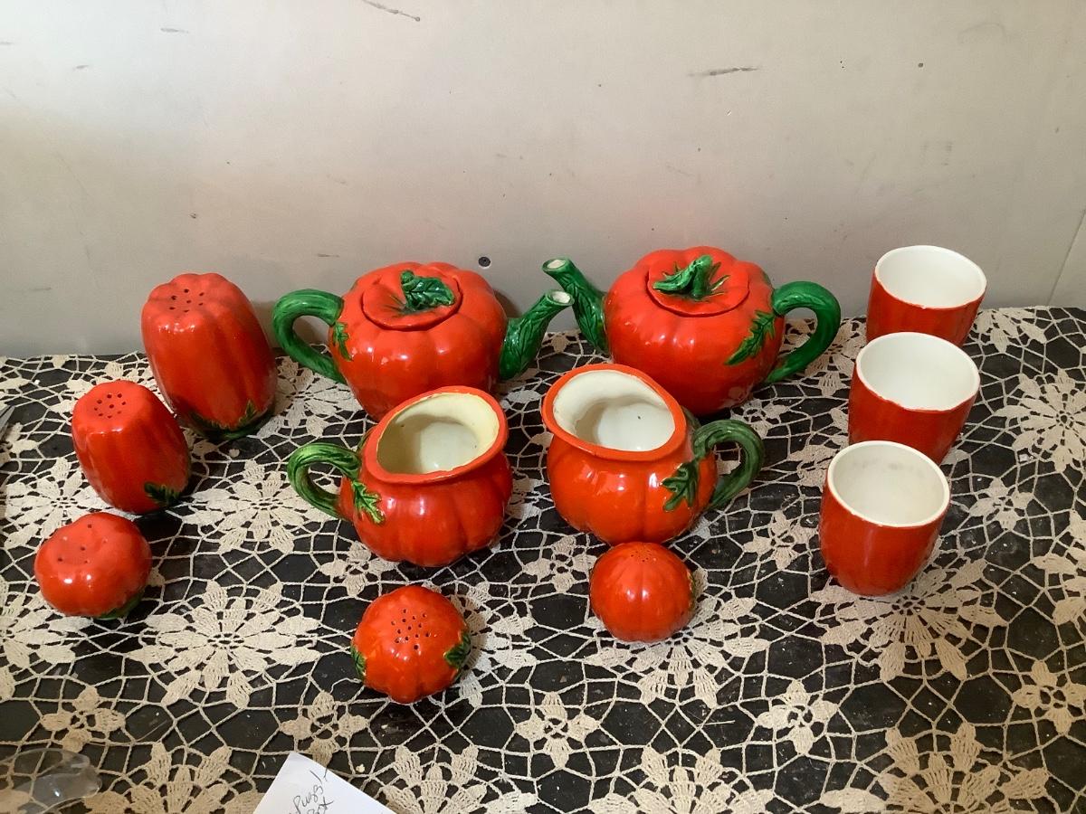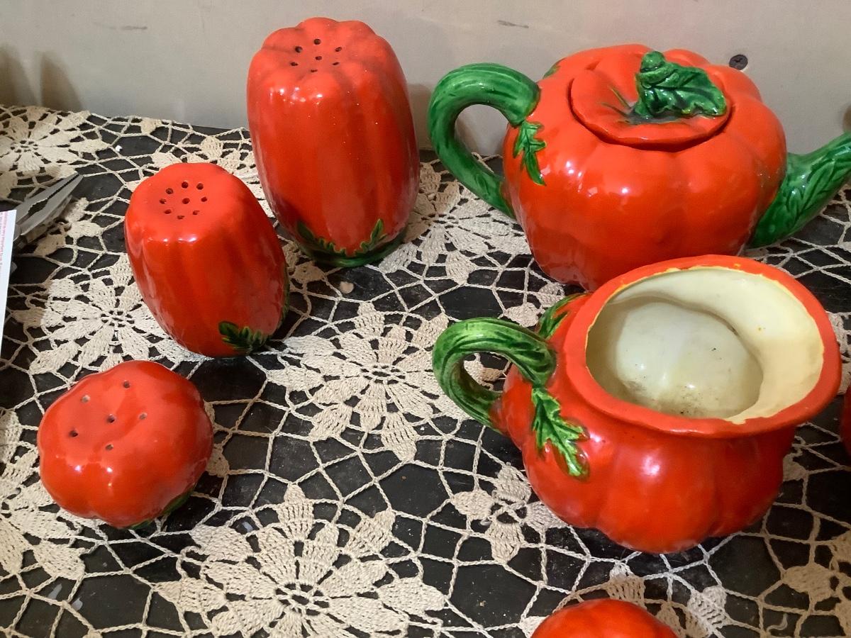 Two smaller tea pots, two smaller pitcher, two larger glass one smaller glass three shakers, and salt and peppers