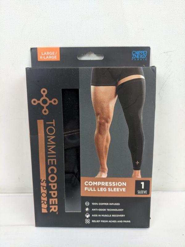 Tommie Copper Sports Compress Full Leg Sleeve, Black, Large/XL - New
