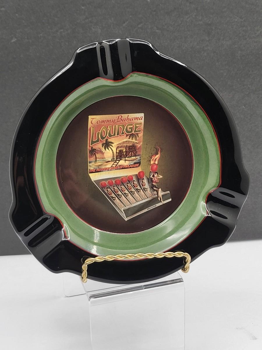 (2007) collectible 8" Tommy Bahama black/green glazed ceramic ashtray.