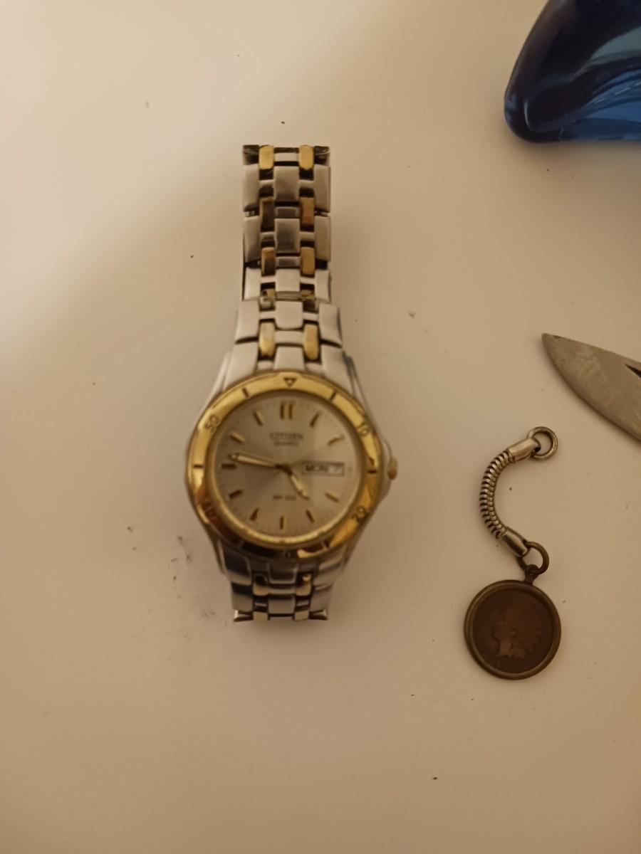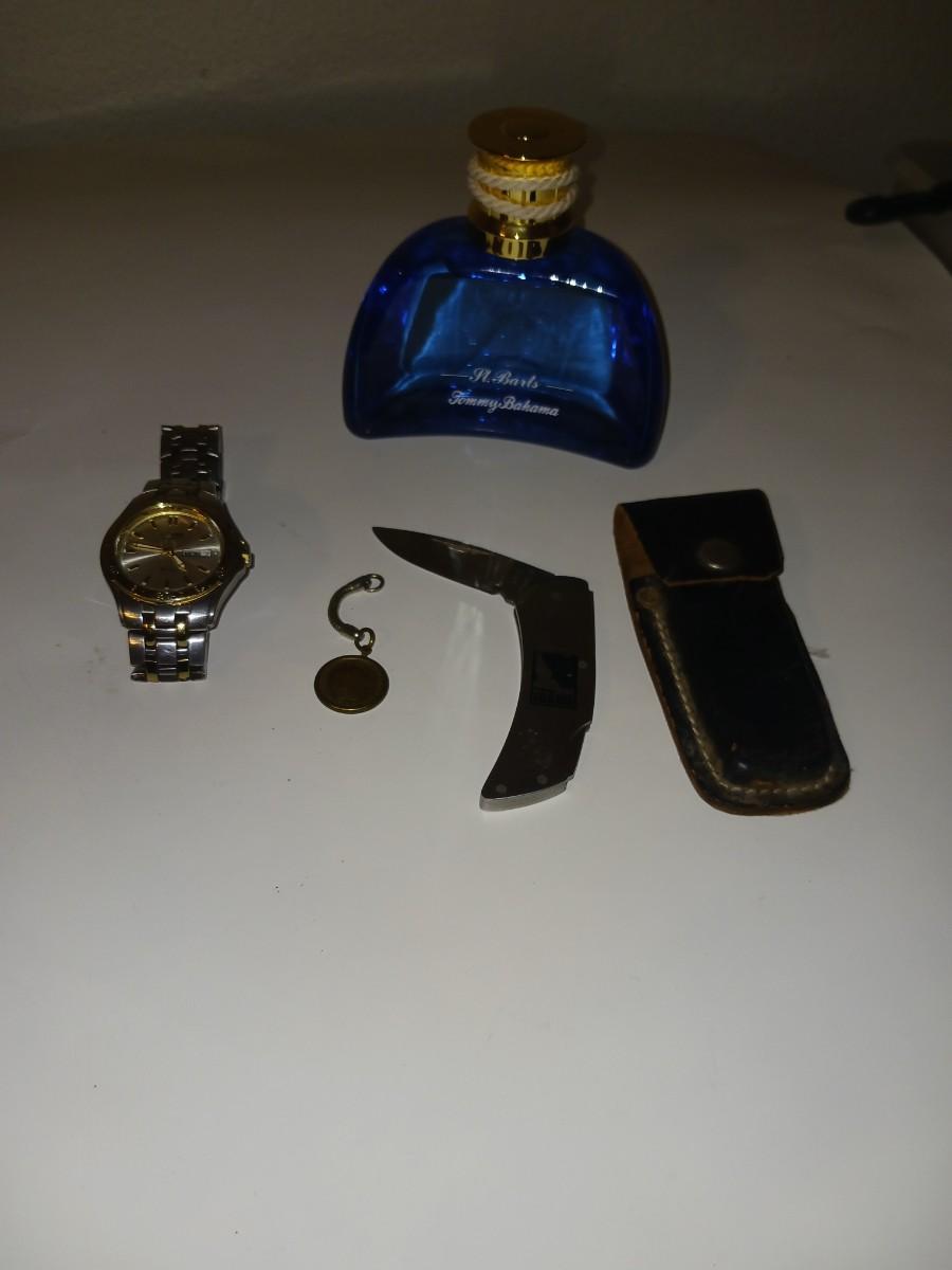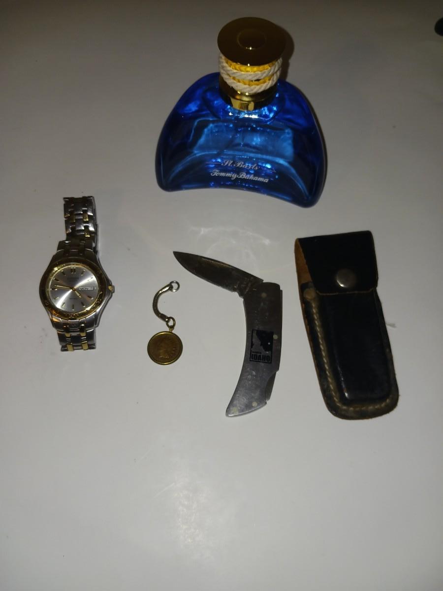 TOMMY BAHAMA COLOGNE, ZIPPO IDAHO KNIFE, CITIZEN MENS WATCH, INDIAN HEAD PENNY KEYCHAIN