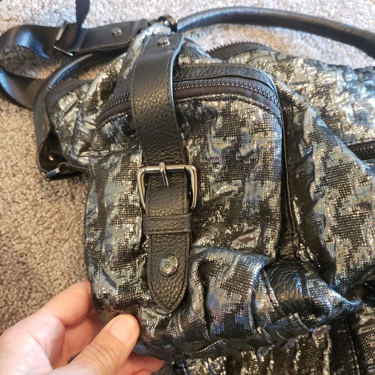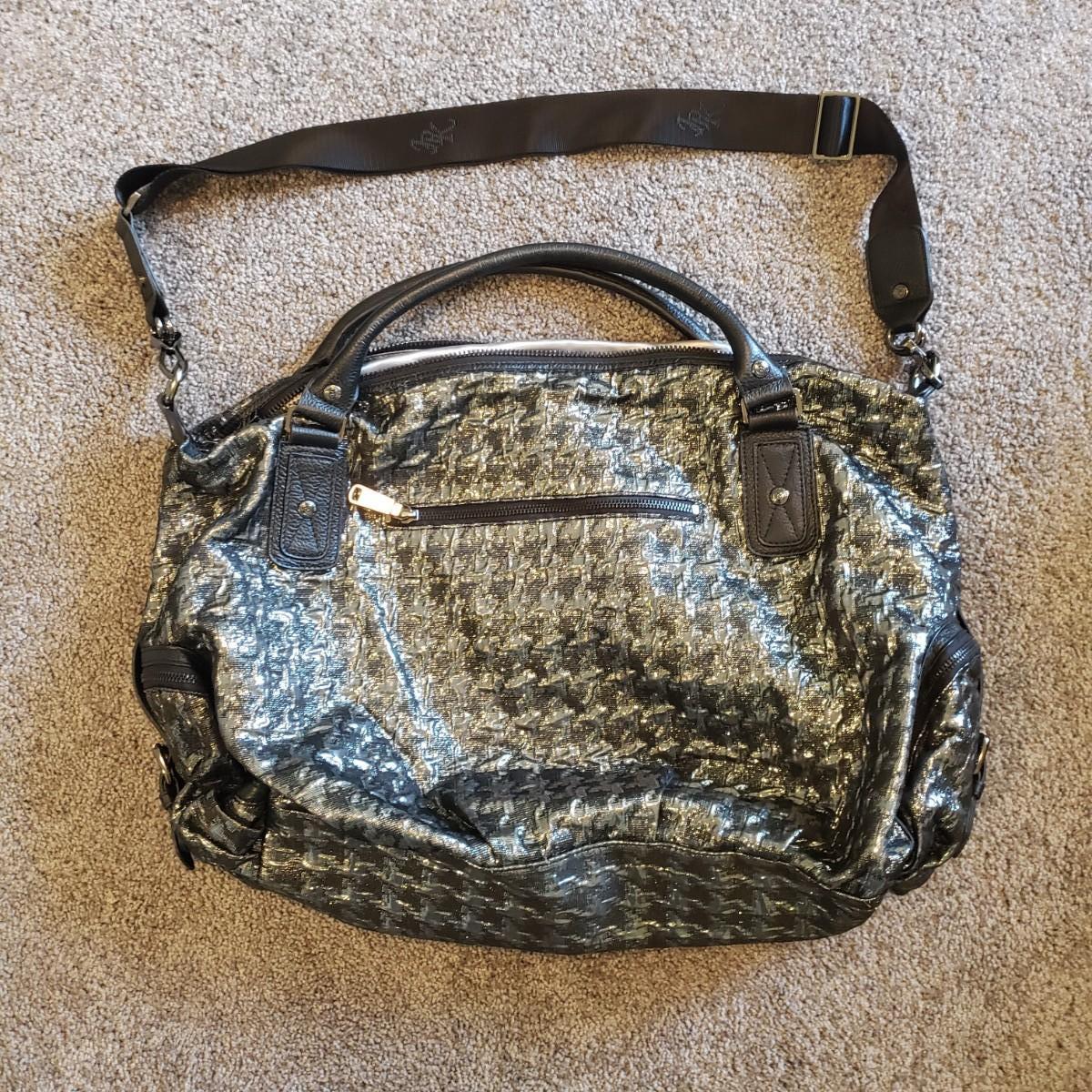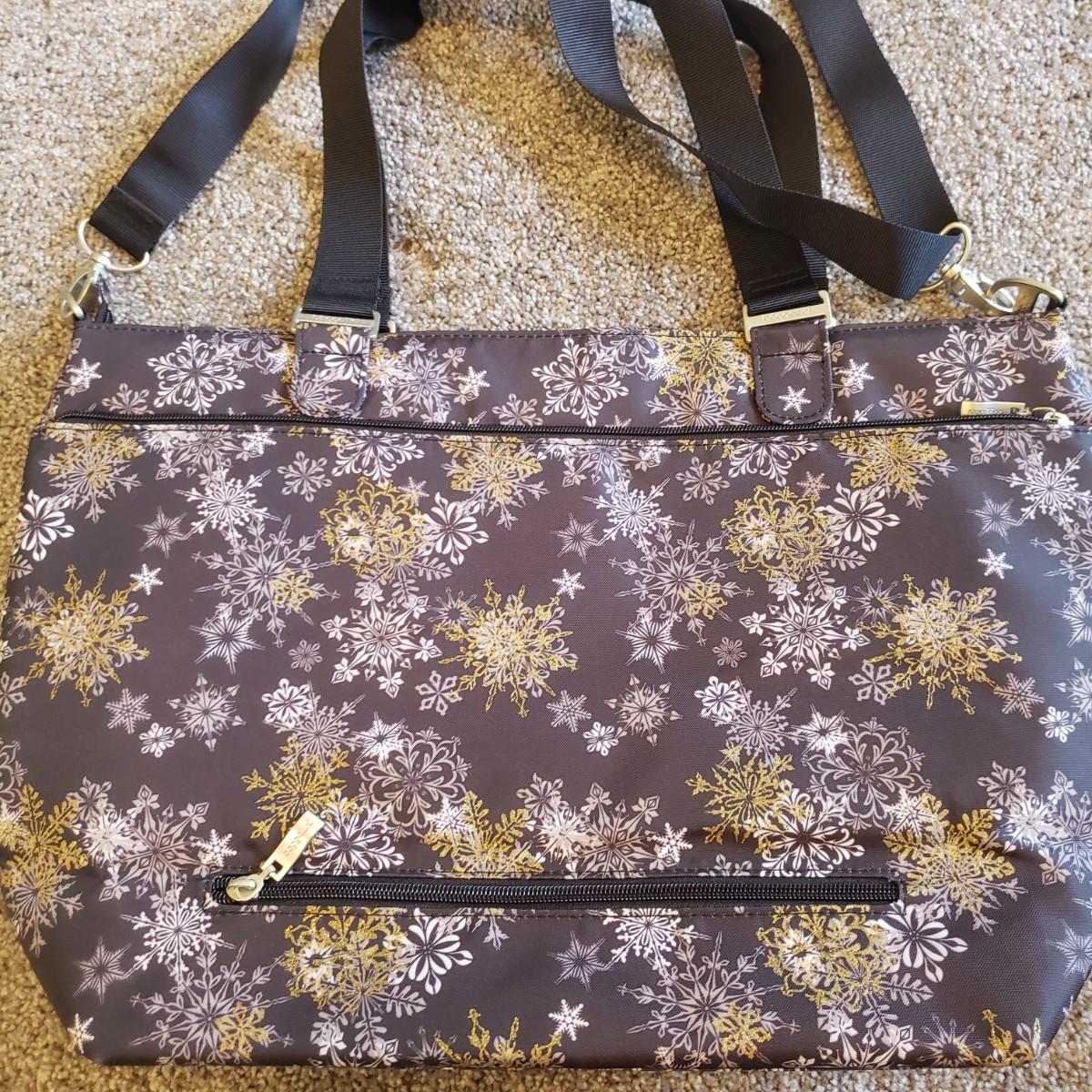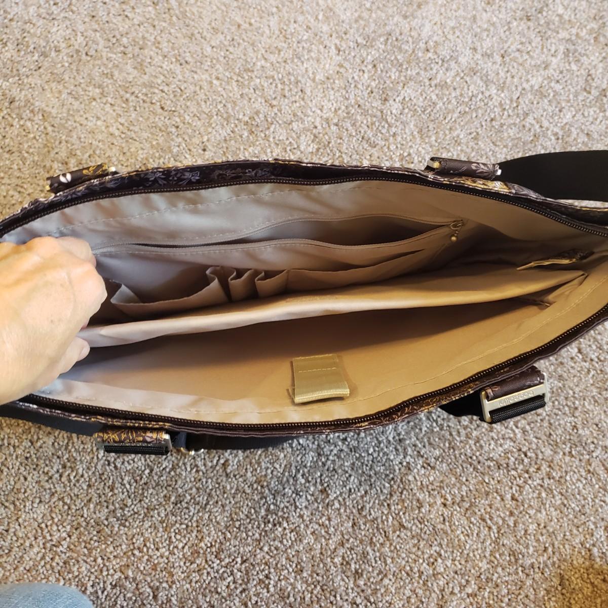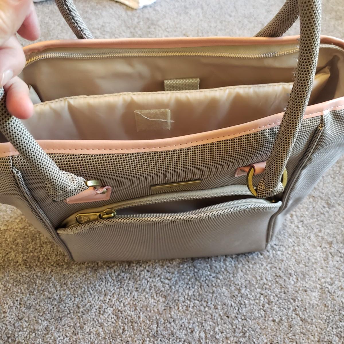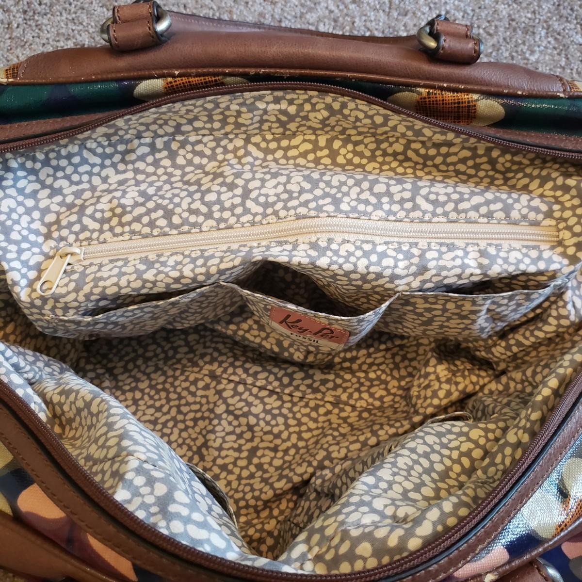 This six piece travel bag lot features name brands and appears to be barely use. The Fossil plastic/canvas travel bag with a daisy pattern measures 19" x 9" x 20" H, including the strap, as pictured. There is some wear on the piping, see pictures. Some bags have a laptop pocket, many pockets and adjustable straps. See pictures for details.