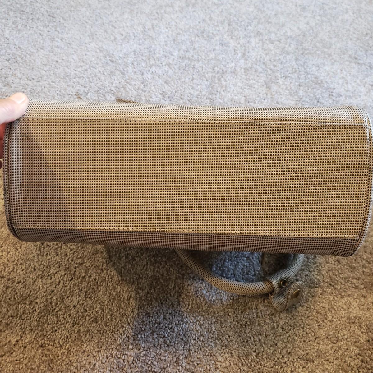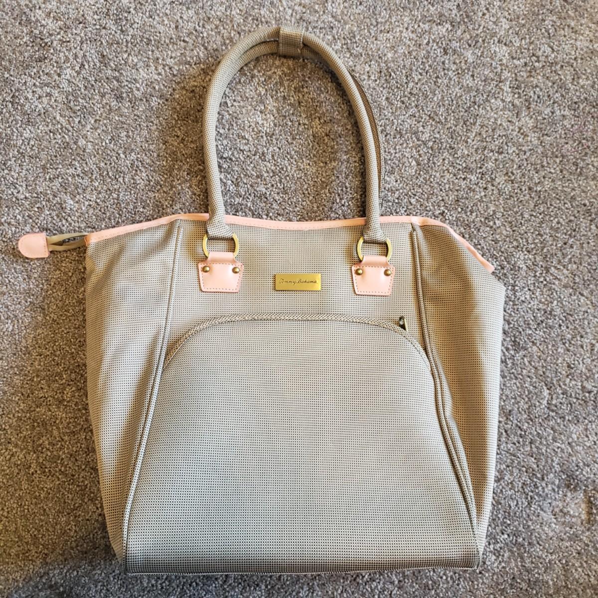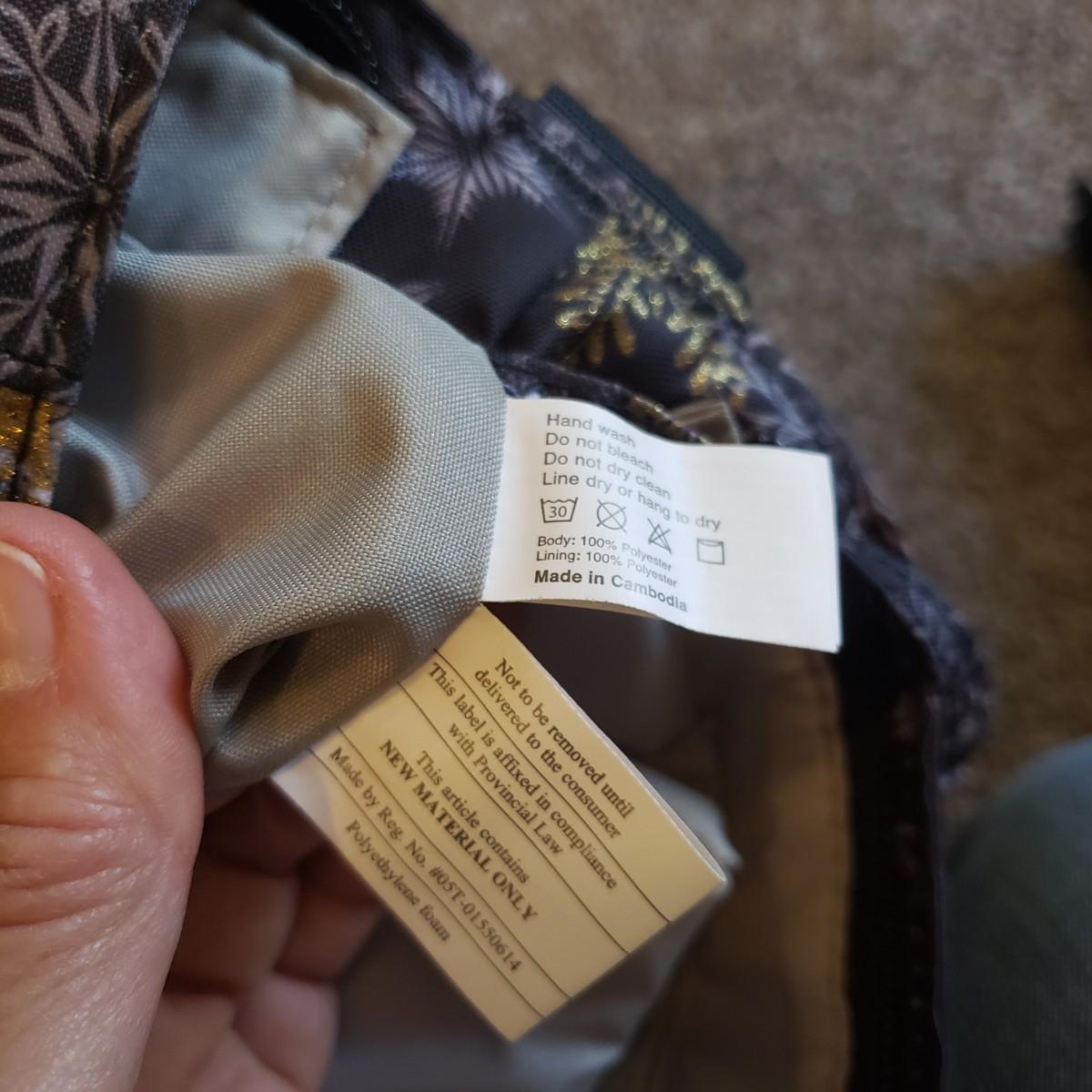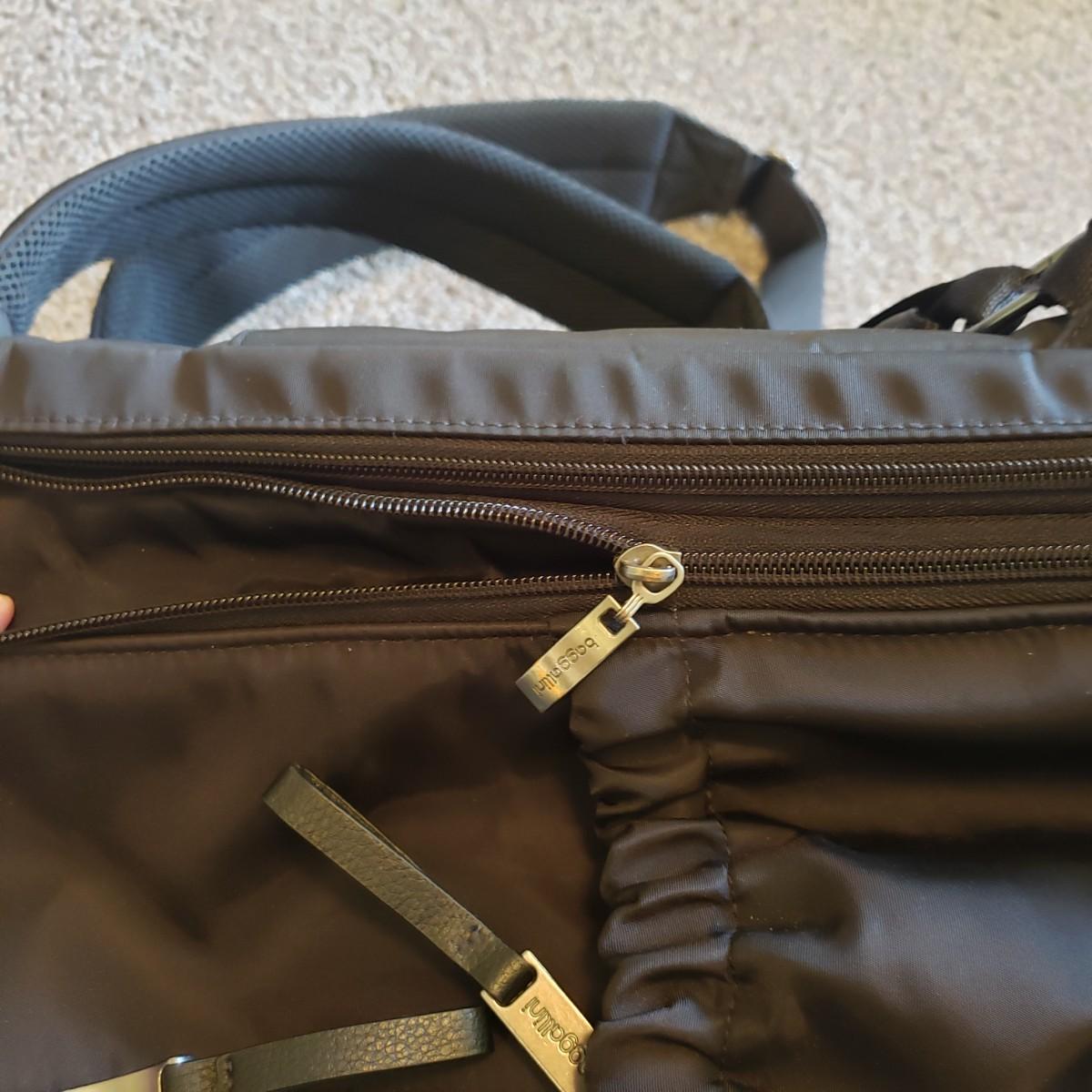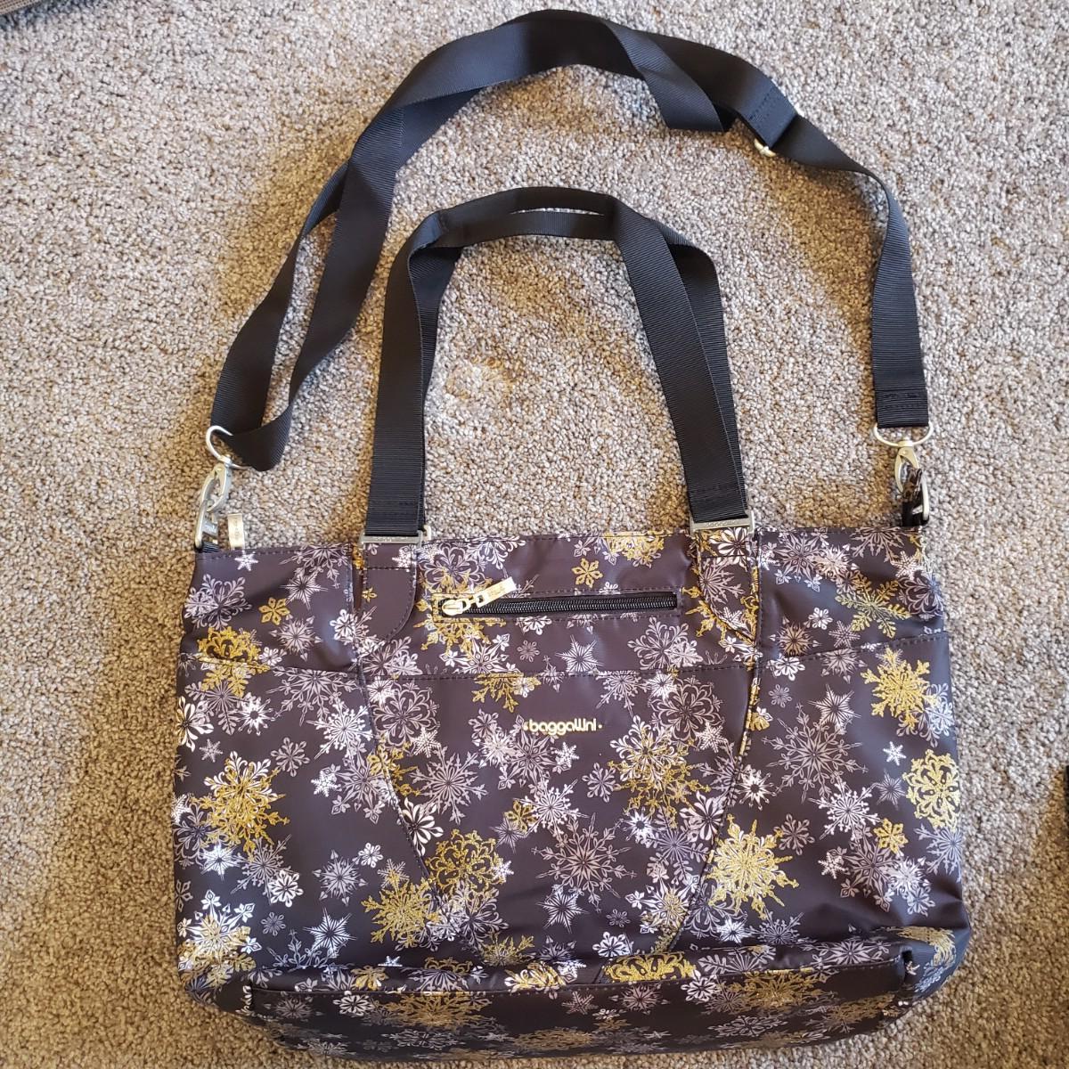 This six piece travel bag lot features name brands and appears to be barely use. The Fossil plastic/canvas travel bag with a daisy pattern measures 19" x 9" x 20" H, including the strap, as pictured. There is some wear on the piping, see pictures. Some bags have a laptop pocket, many pockets and adjustable straps. See pictures for details.