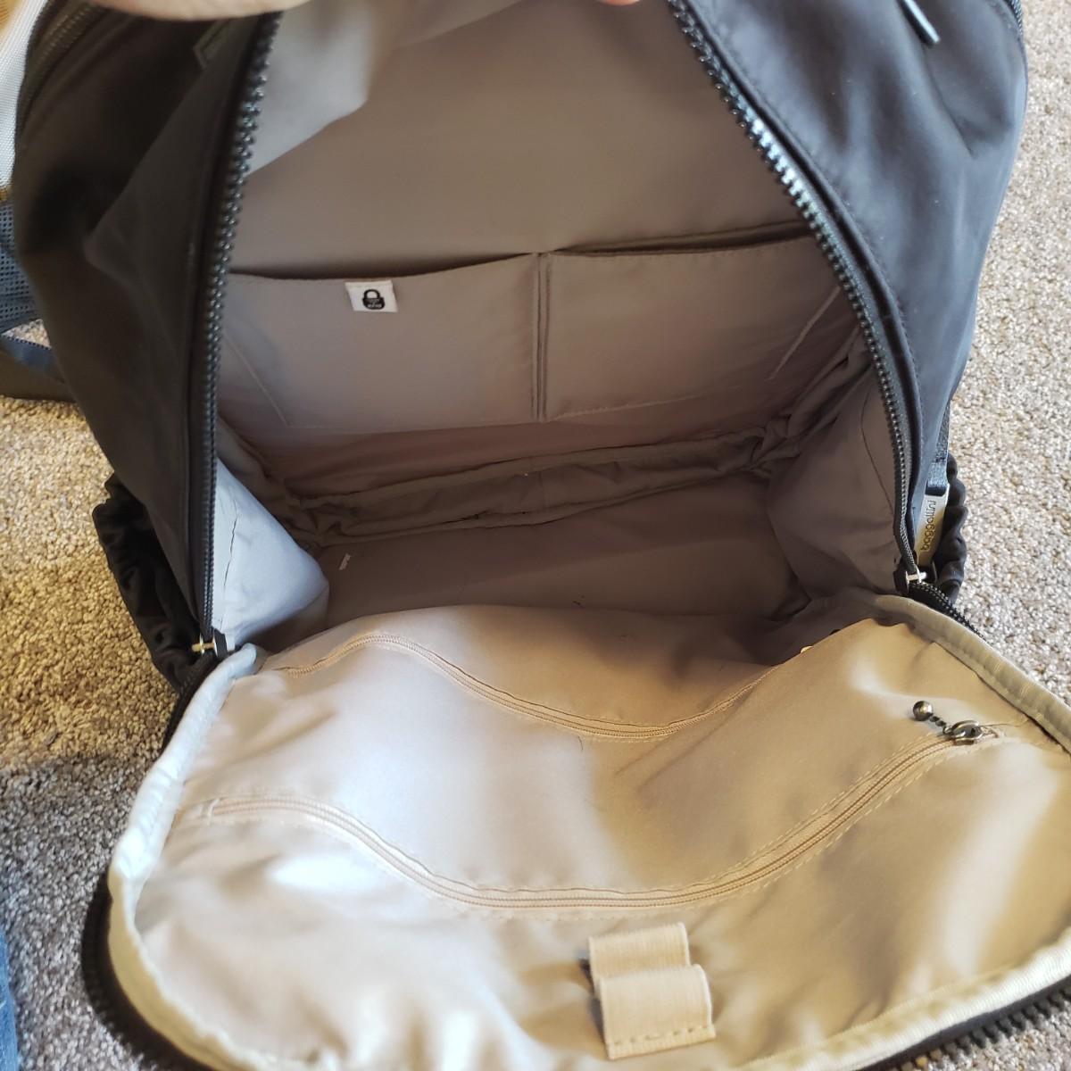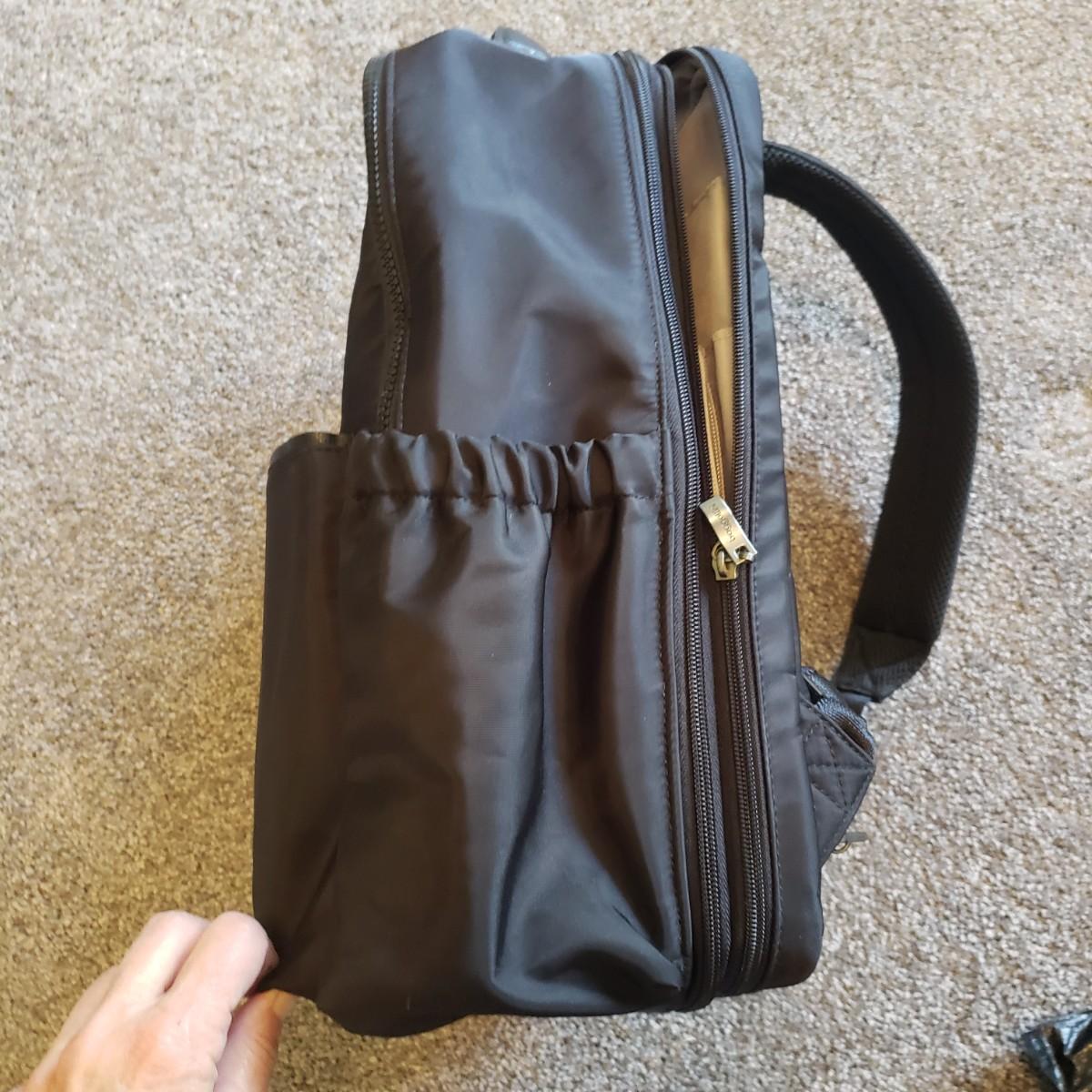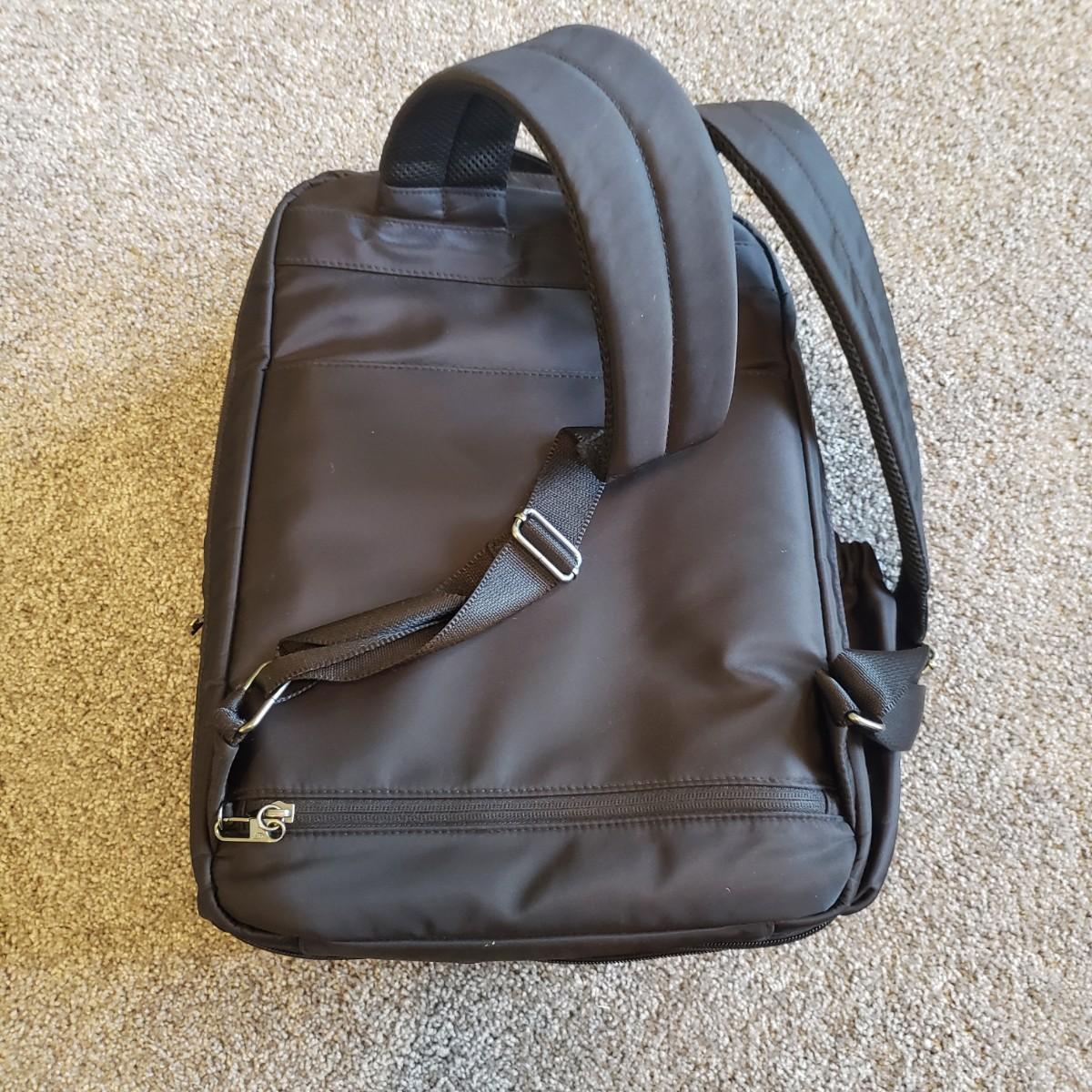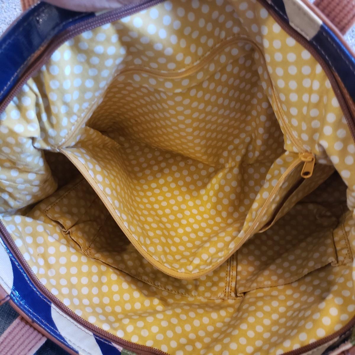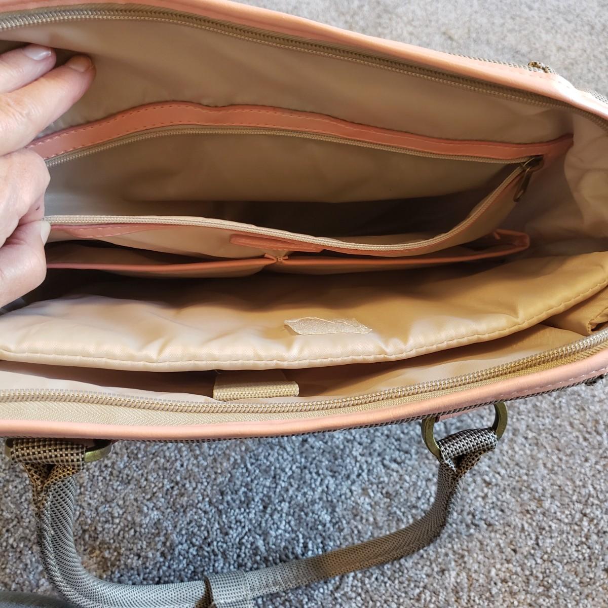 This six piece travel bag lot features name brands and appears to be barely use. The Fossil plastic/canvas travel bag with a daisy pattern measures 19" x 9" x 20" H, including the strap, as pictured. There is some wear on the piping, see pictures. Some bags have a laptop pocket, many pockets and adjustable straps. See pictures for details.