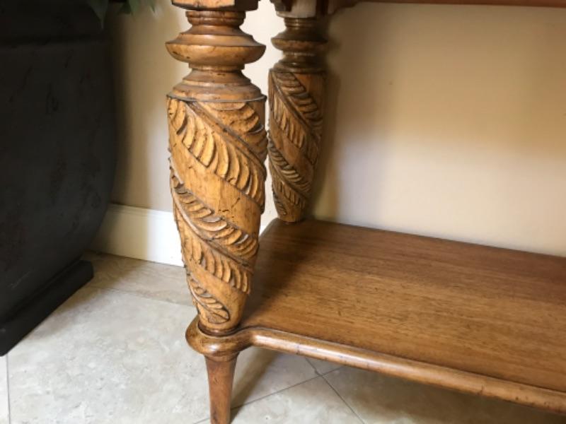 Beautiful piece can be used as an entry table, sofa table or sideboard. Has two drawers and a bottom shelf.