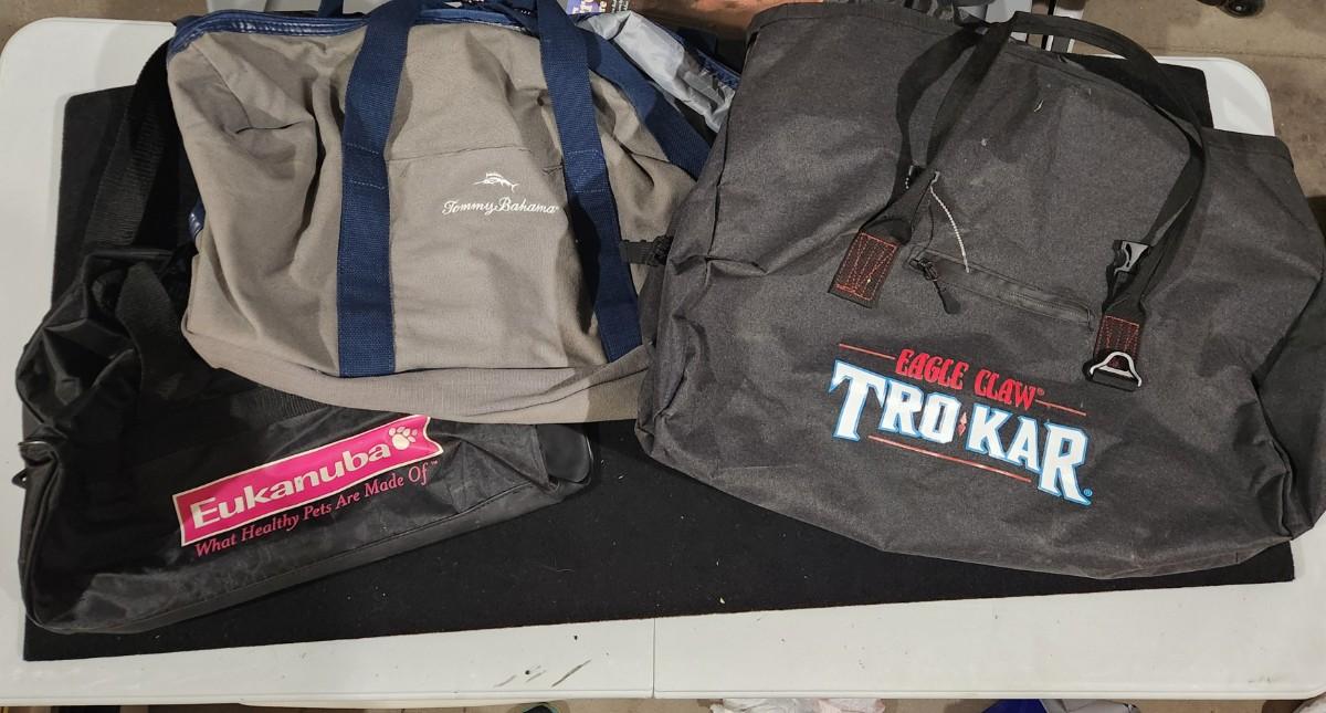 Tommy Bahamas Duffle Bag Lot Vintage w/ Eagle Claw Tro Kar Bag & Eukanuba Duffle