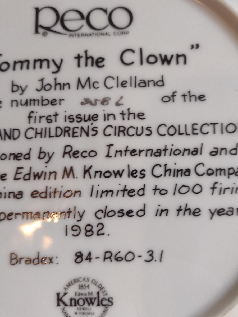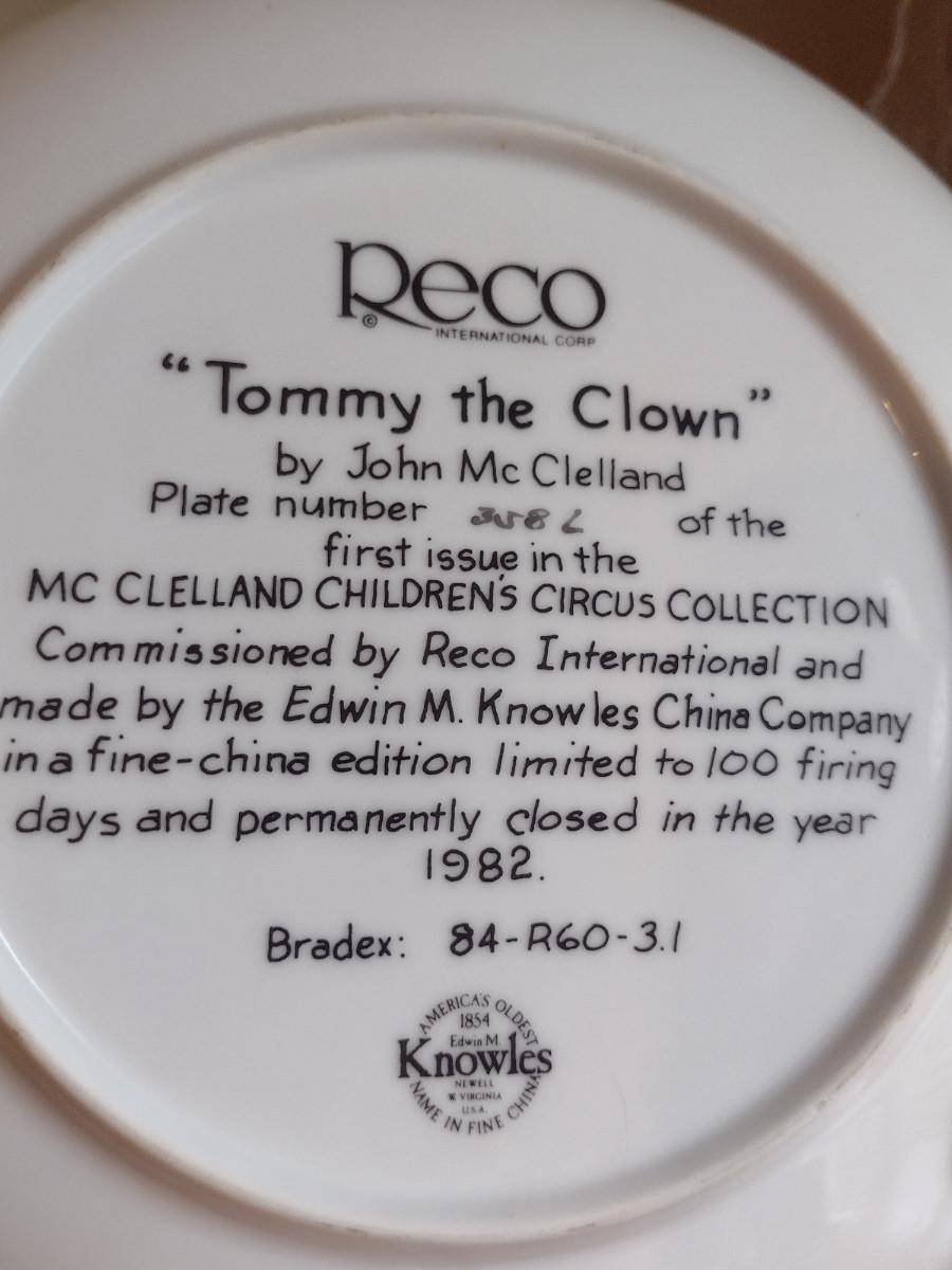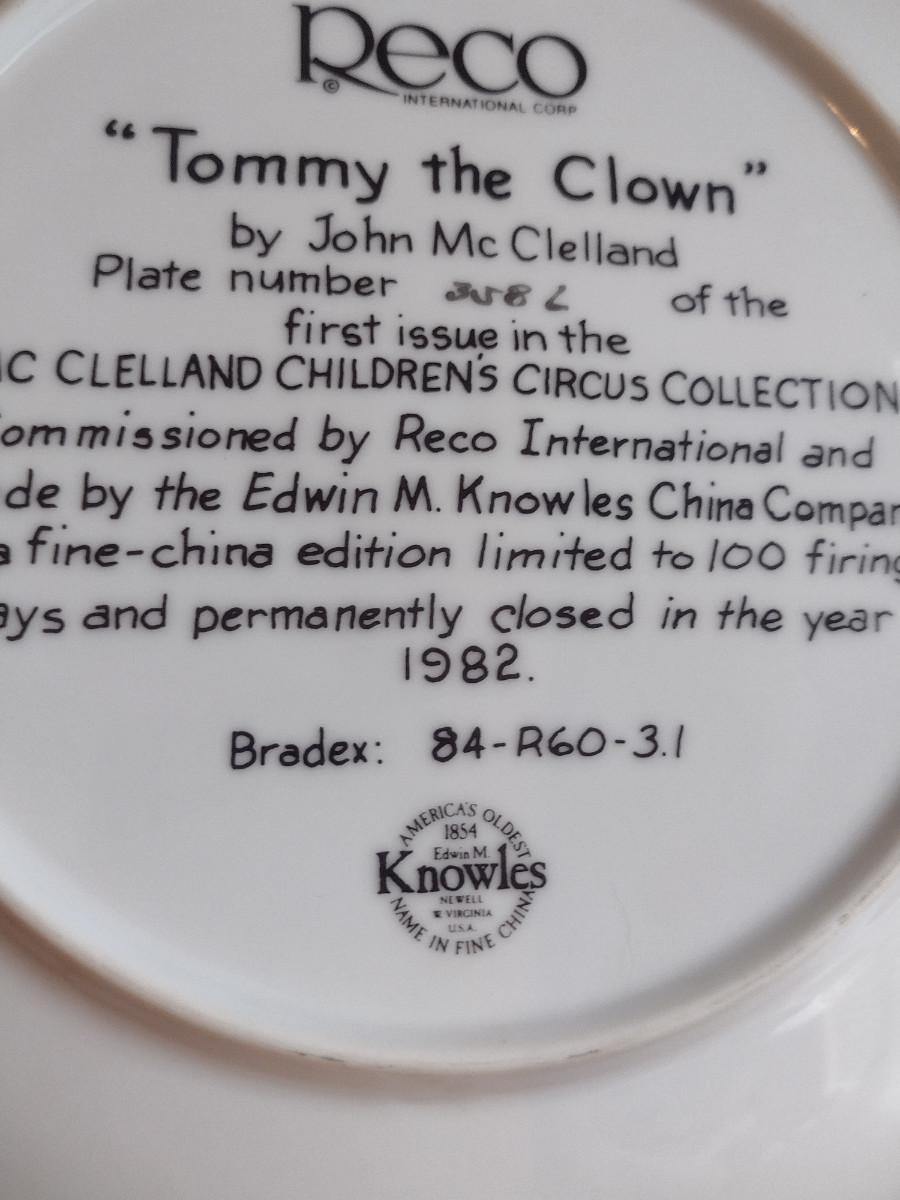 'Tommy the Clown' by John McClelland Limited Edition/Numbered Porcelain Plate- Approx 9 1/4" in Diameter