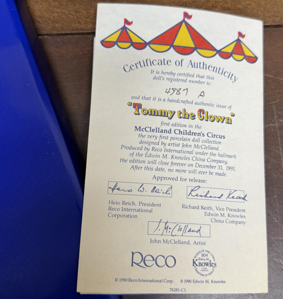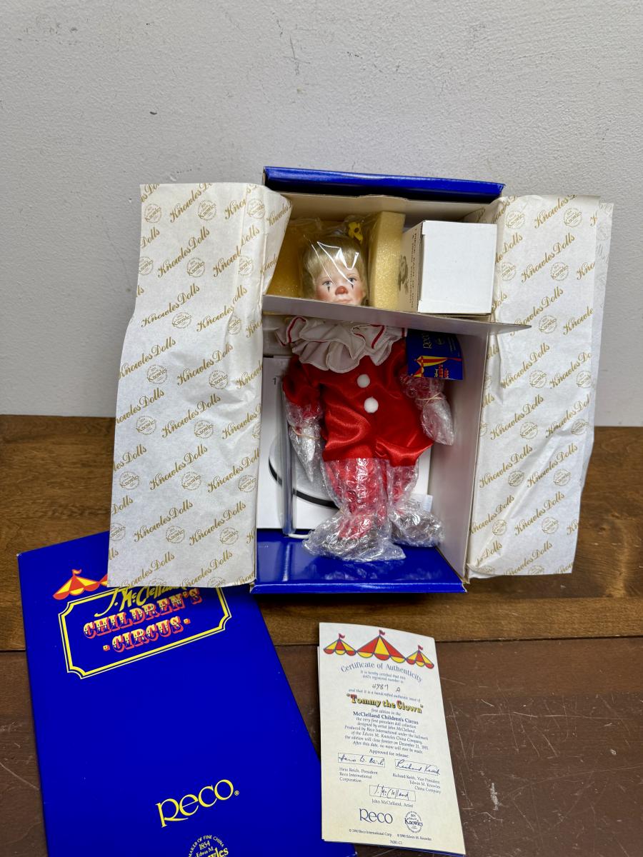 Tommy the Clown Limited Edition from McClelland Children’s Circus.Porcelain Doll Collection Knowles China Company