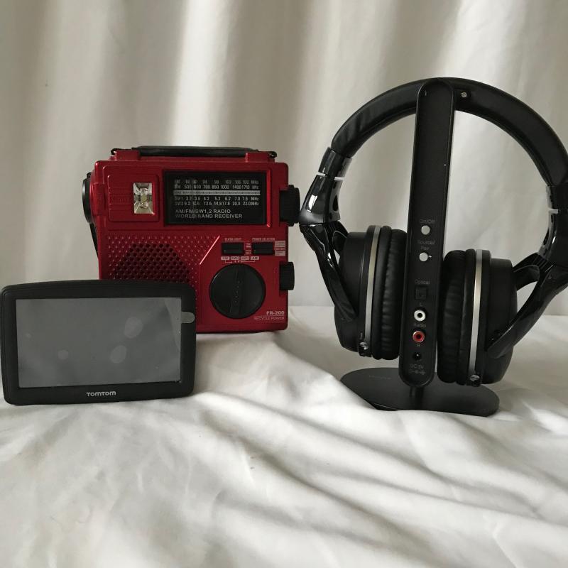 Lot includes two Auvio wireless headphones, TomTom navigation system( model 4eF00) and Grundig AM/FM radio world band receiver. No shipping available. Local pickup only in Hendersonville, NC.