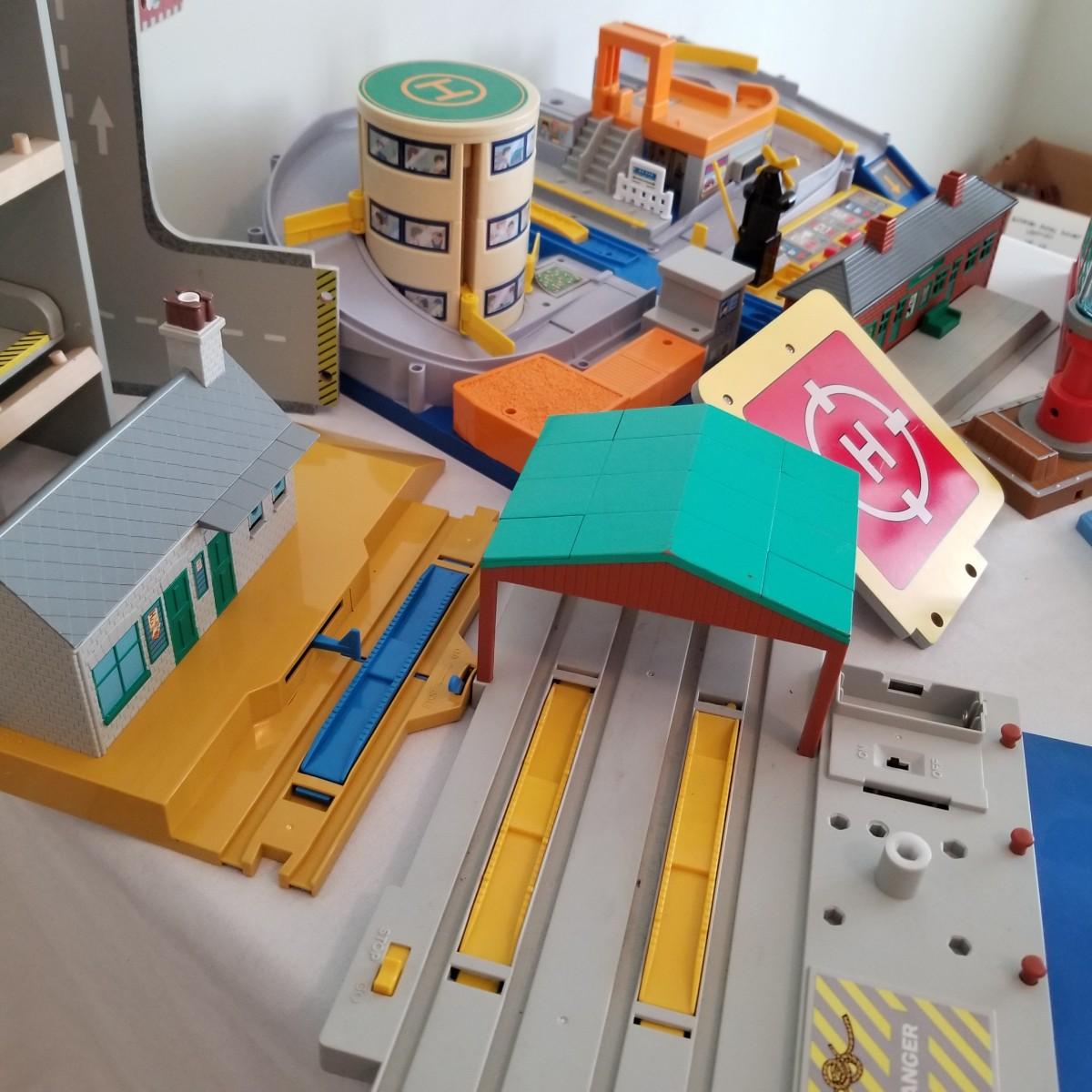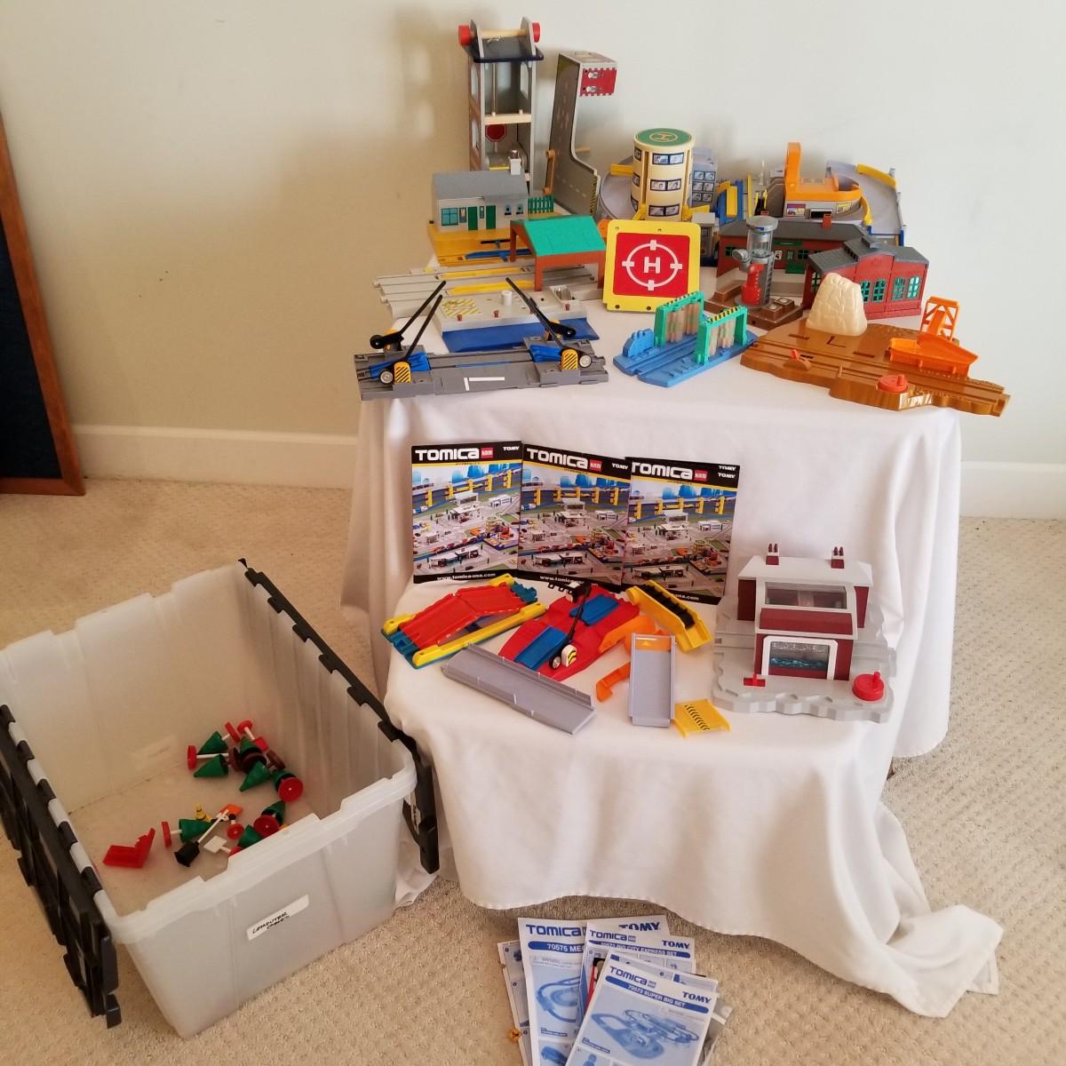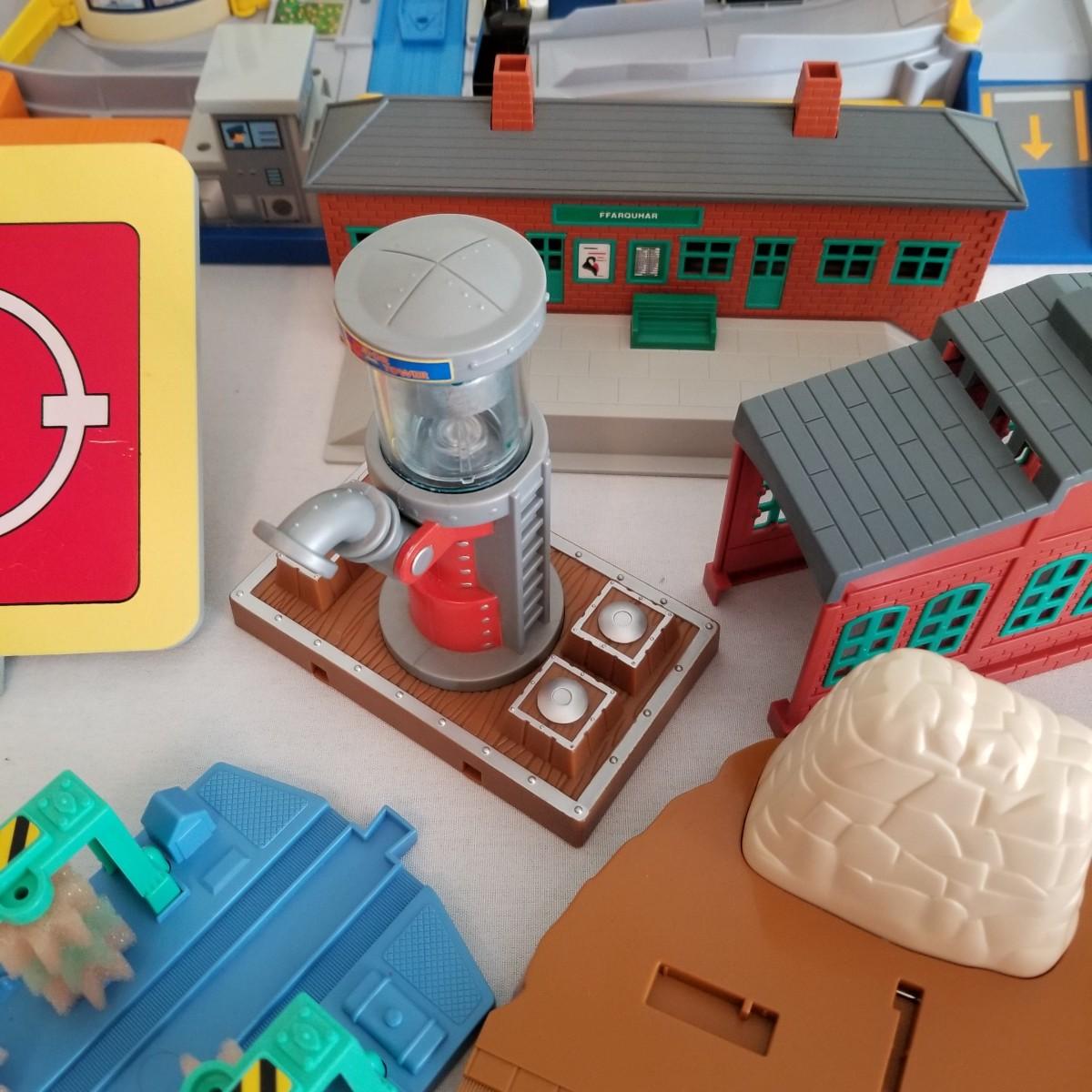 Multiple pieces of Tomy building sets, accessories and manuals that may or may not be part of the sets. Many interactive pieces with levers and knobs. Battery operated items not tested. See photos for details. Shipping available.