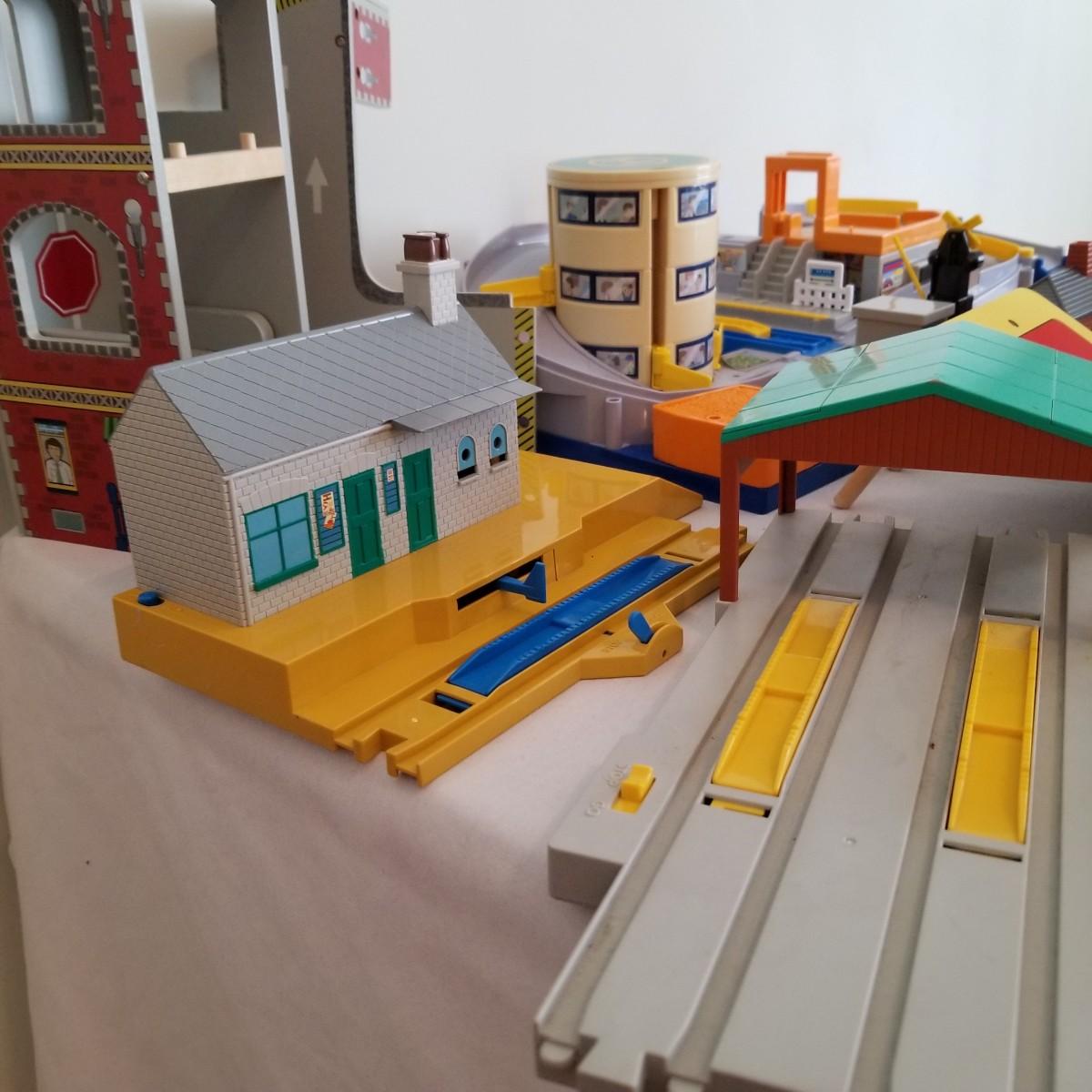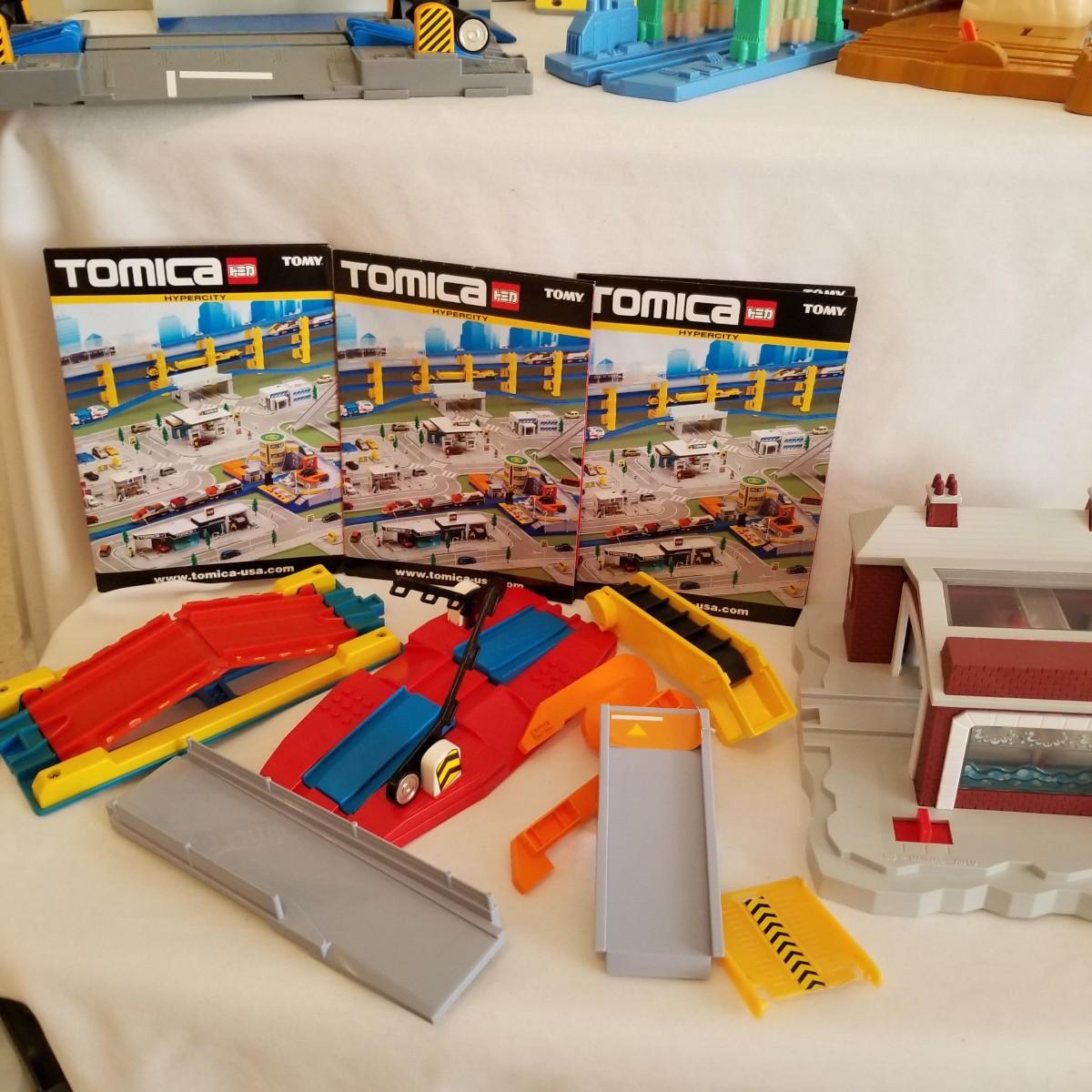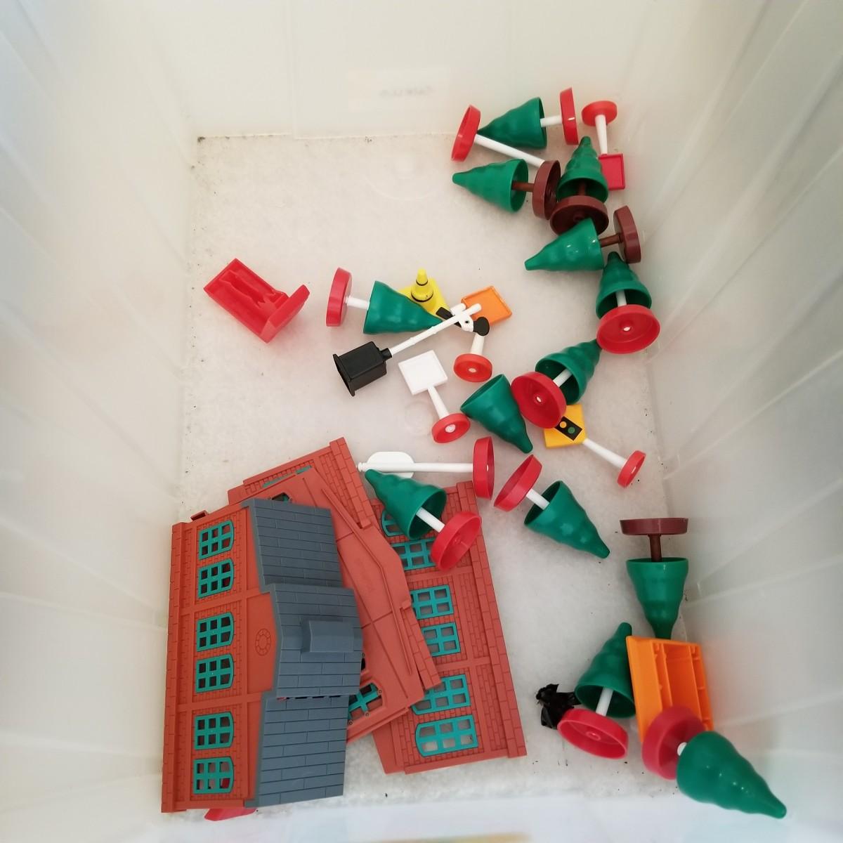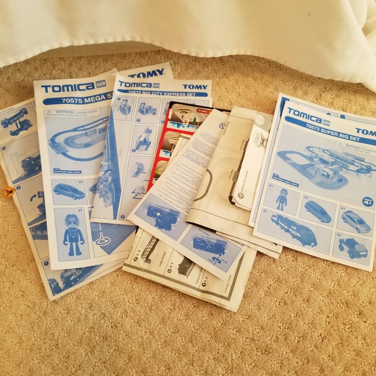 Multiple pieces of Tomy building sets, accessories and manuals that may or may not be part of the sets. Many interactive pieces with levers and knobs. Battery operated items not tested. See photos for details. Shipping available.