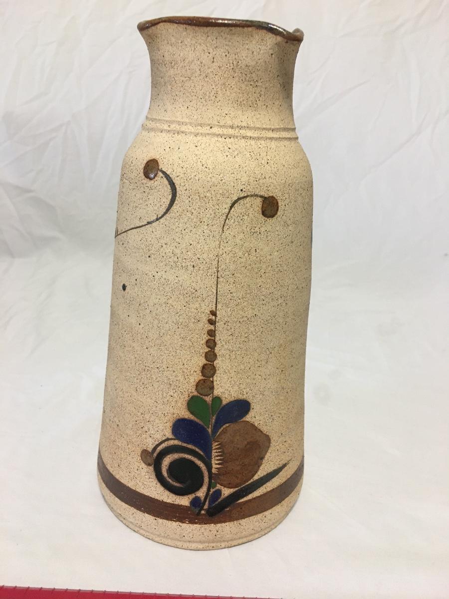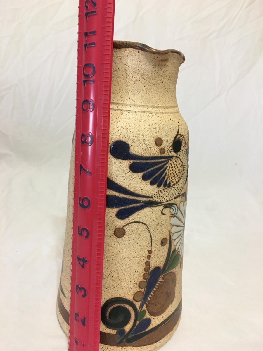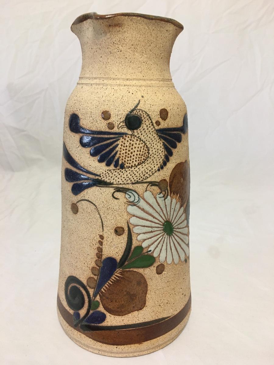 TONALA Pottery 11” Vase Hand Painted Mexican Folk Art Bird Flowers Vintage