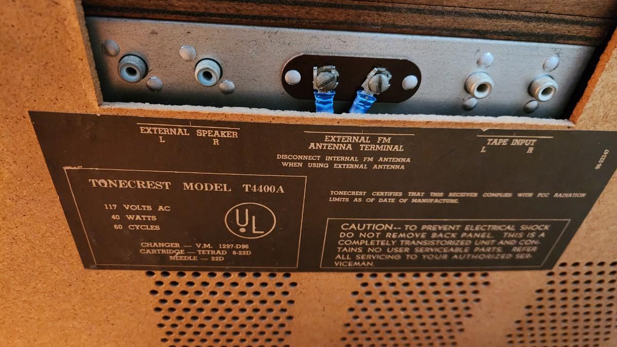 Tonecrest Record Player AM/FM Radio Console Model T4400A