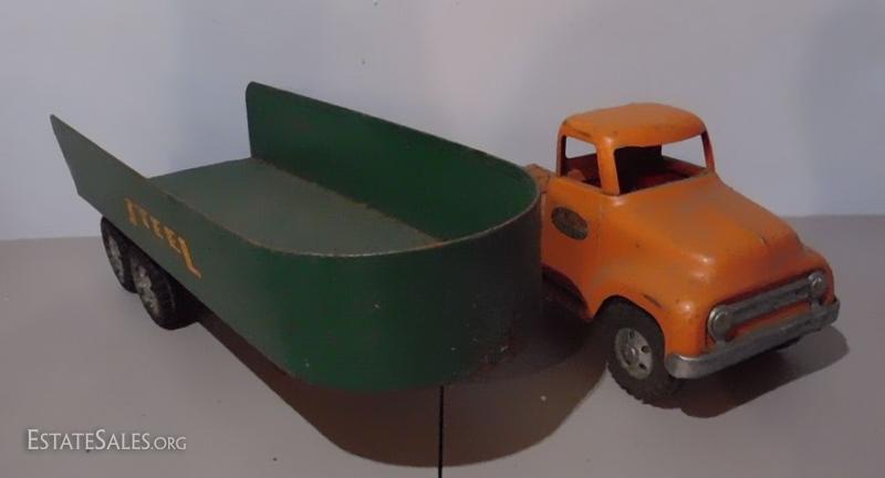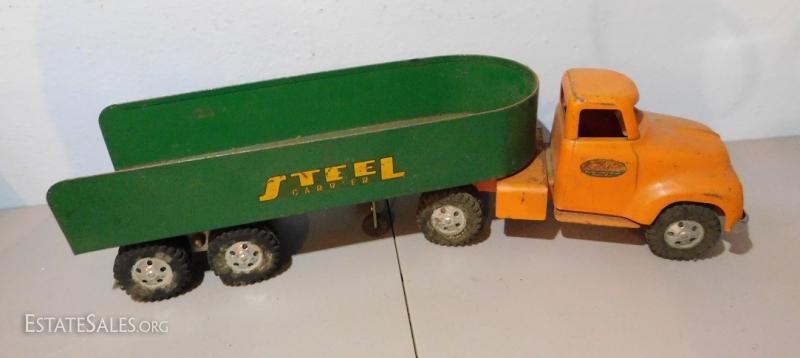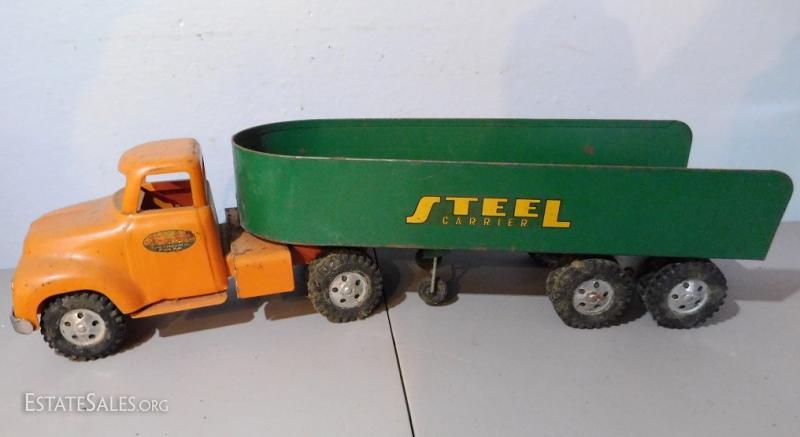 Tonka Steel Carrier cab and trailer. Has some wear and oxidation.