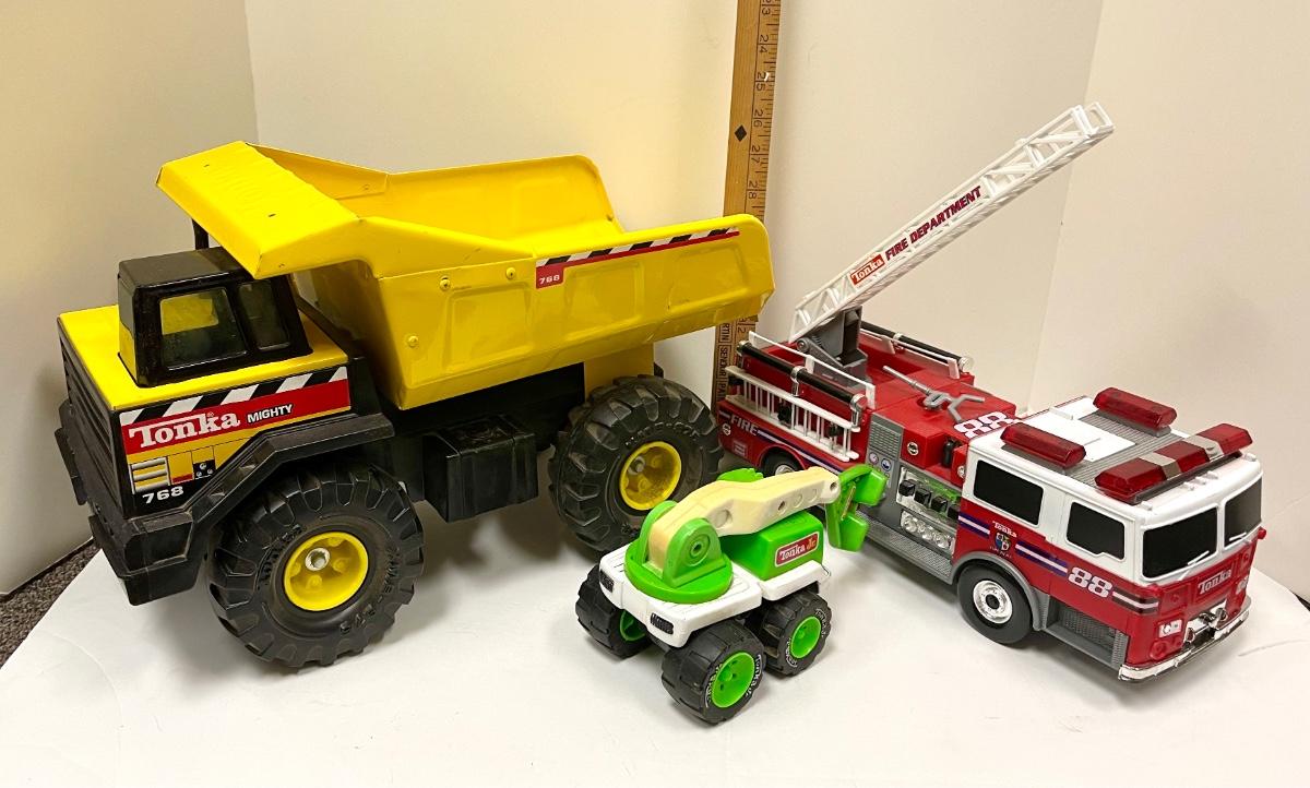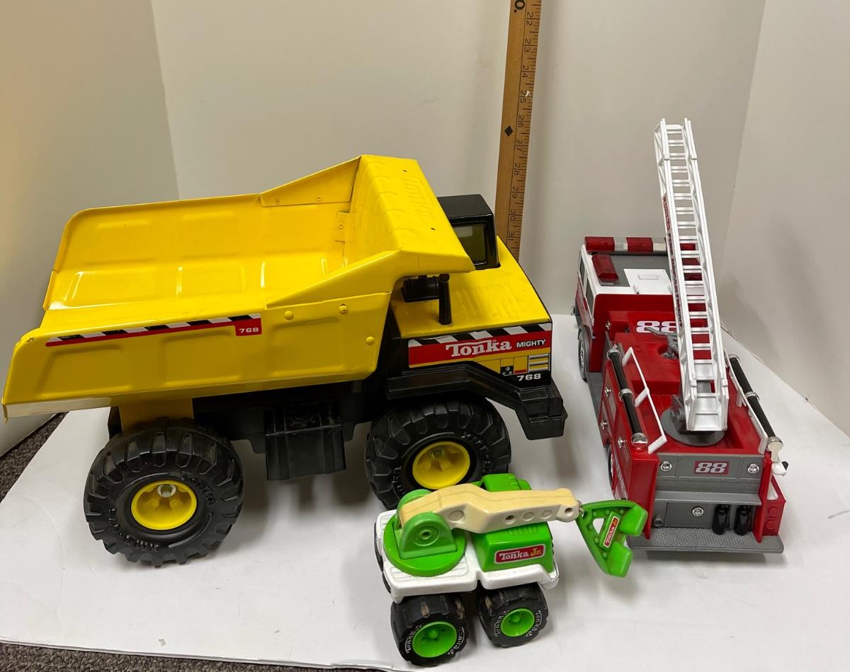Tonka toy lot fire truck tow truck dump truck