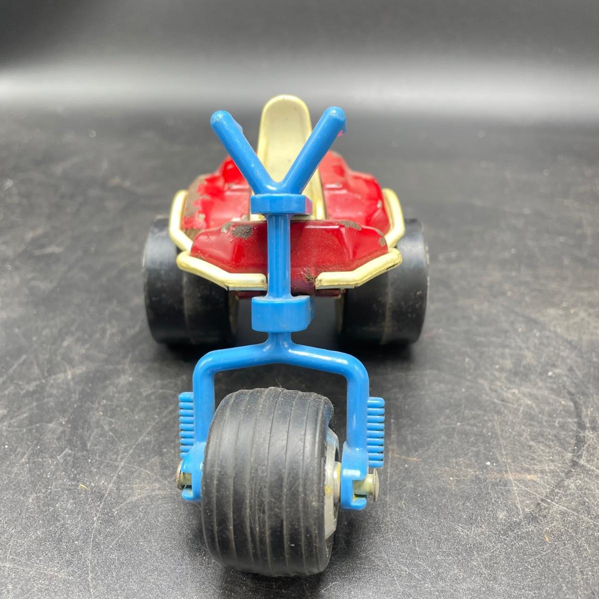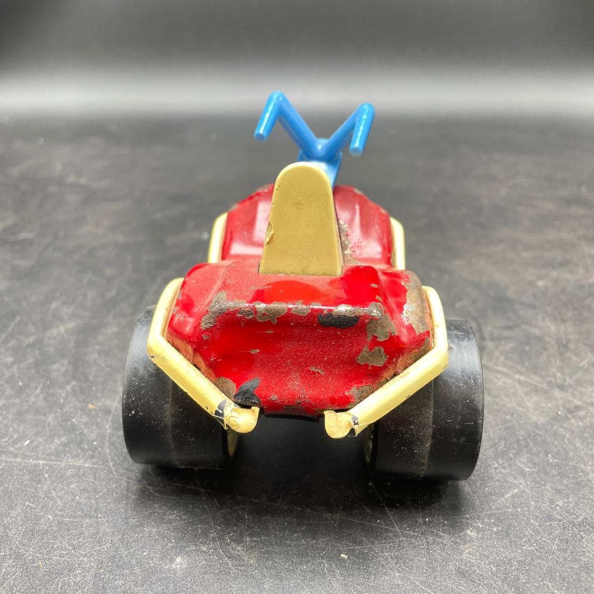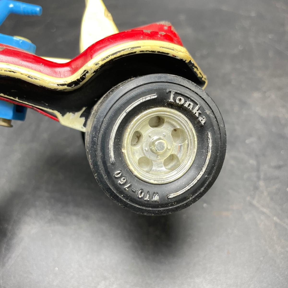 A die cast 1972 Marchbox Super Kings K - 7 Racing Car Transporter with a vintage tin Tonka Trike with hard plastic wheels. See images. Shipping available.