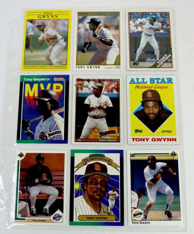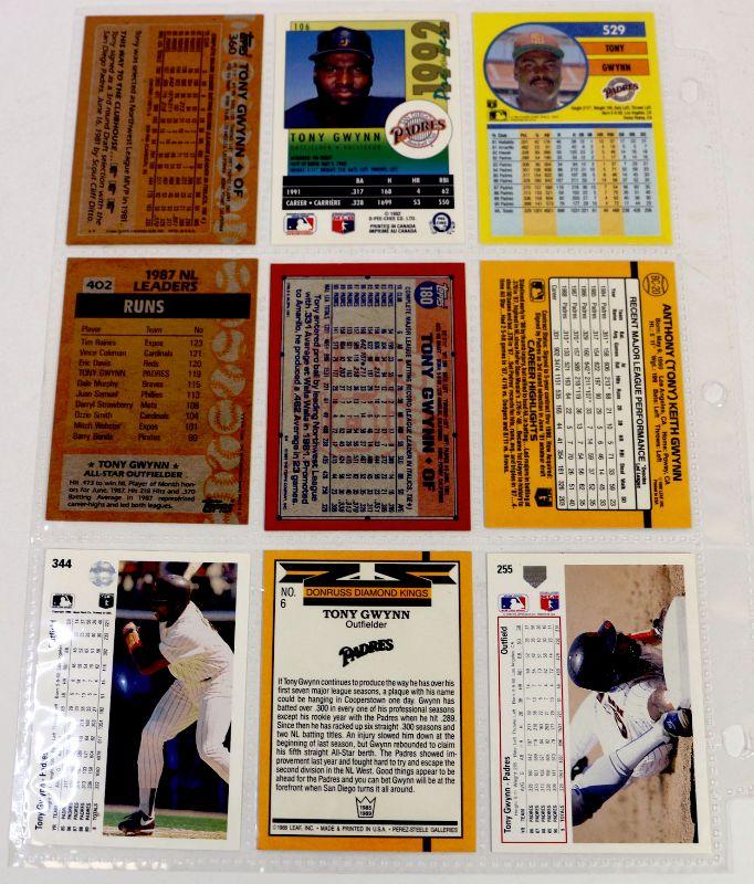 Nice set of 9 Baseball Cards featuring Baseball Star Tony Gwynn
