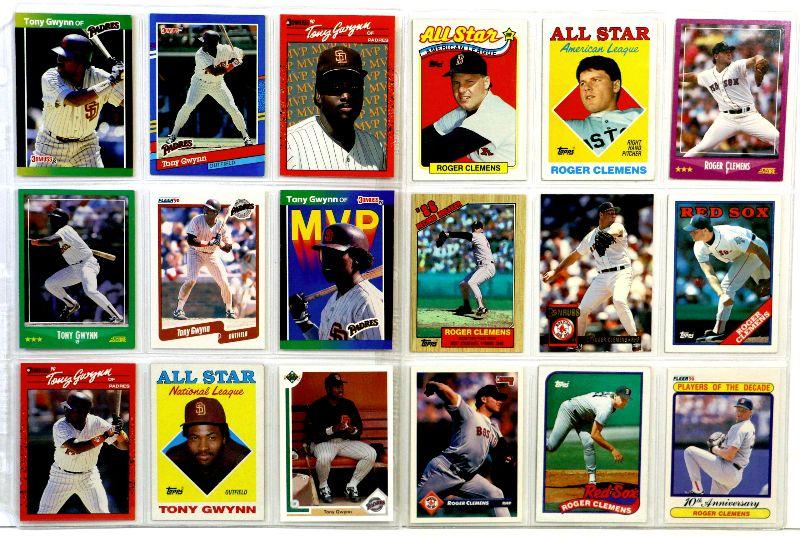 TONY GWYNN ROGER CLEMENS BASEBALL CARDS SET OF 18 - EX/MINT