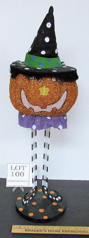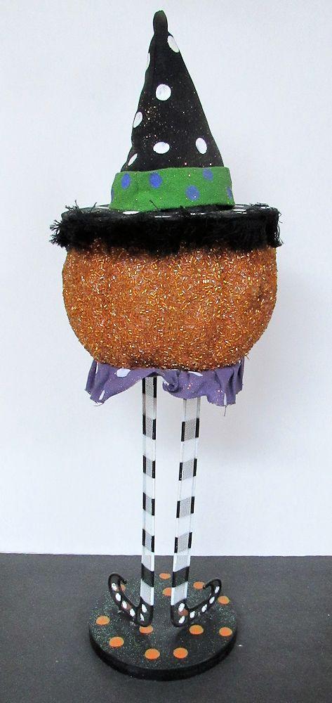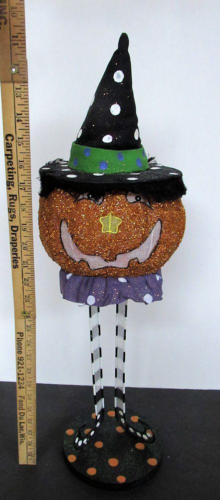 Too Cute Halloween Pumpkin on Metal Legs, Tall and Happy