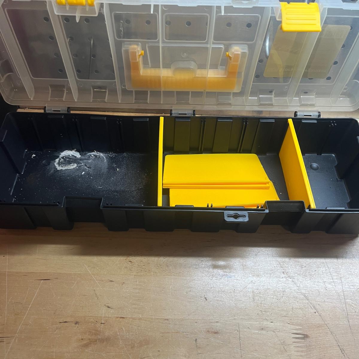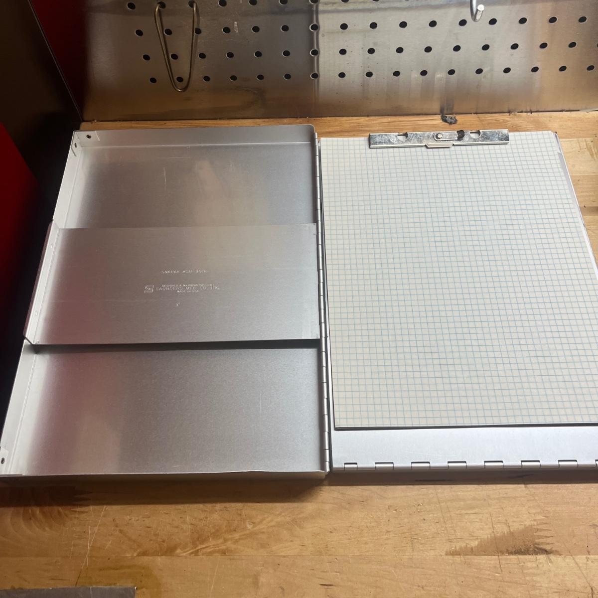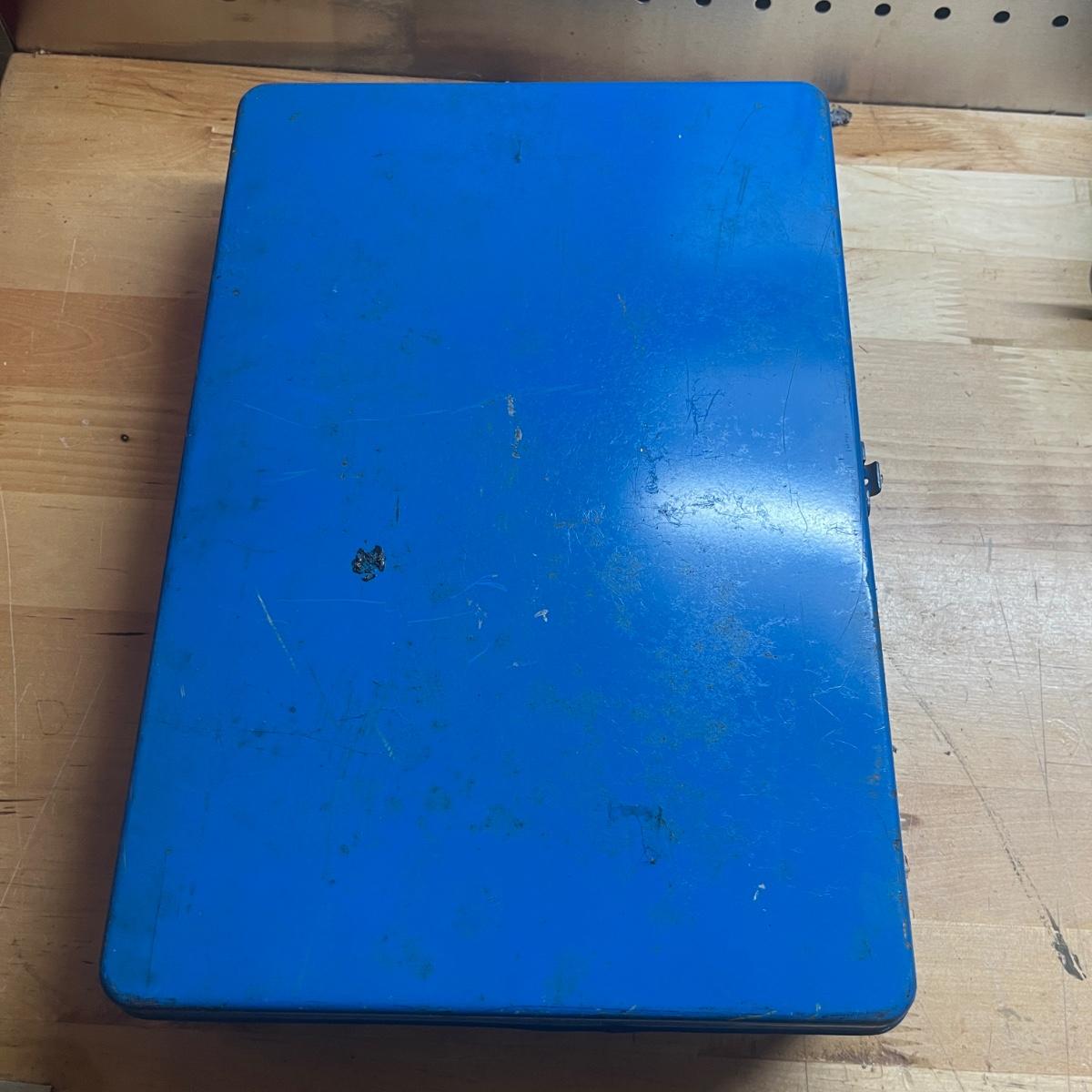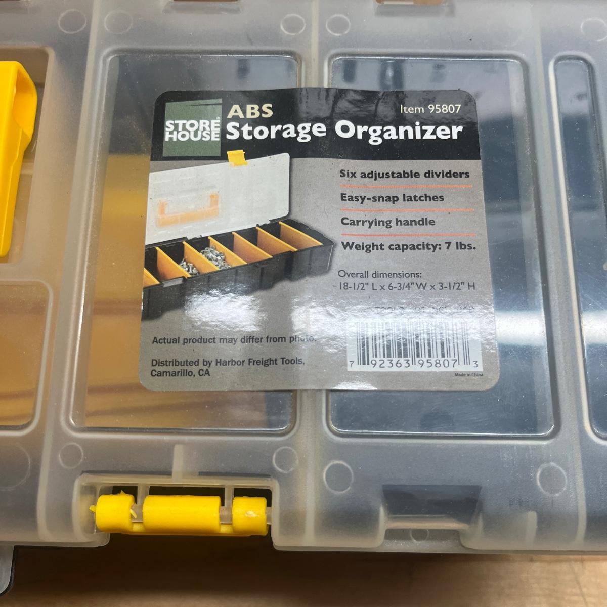Lot includes two General tool bags, metal toolbox, plastic storage organizer, metal box, metal paper holder, tool belt belt clips and more. Tool bags measure 16” x 9” x 12”H when open.