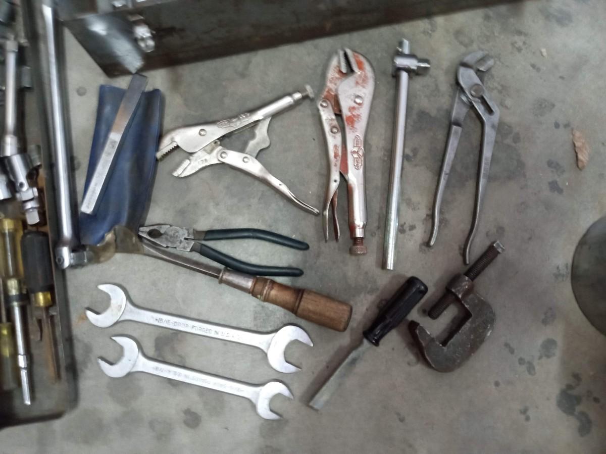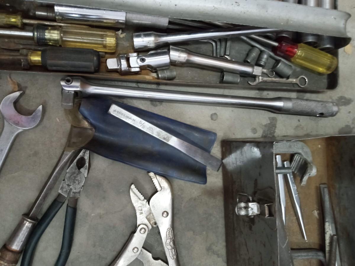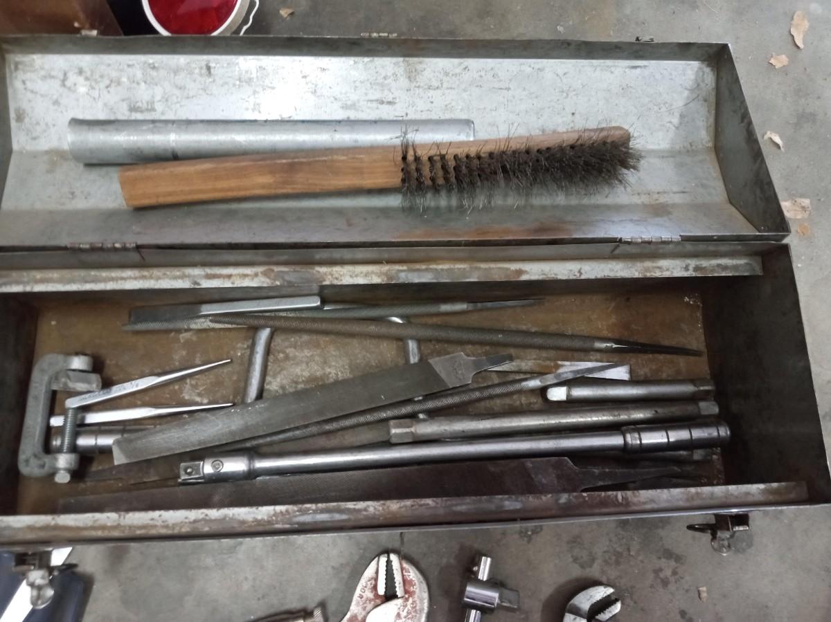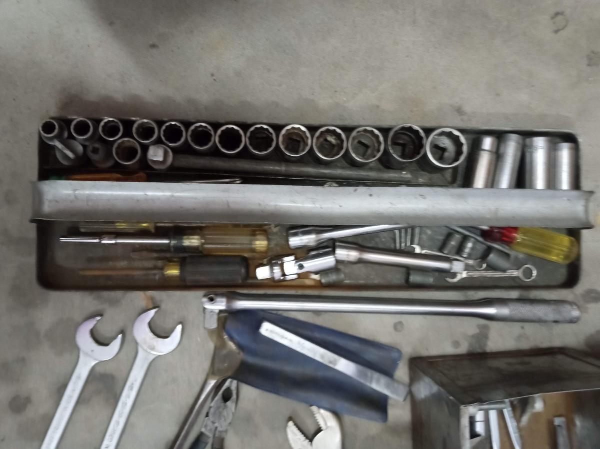 TOOL BOX FILLED WITH SOCKETS AND VARIOUS HAND TOOLS