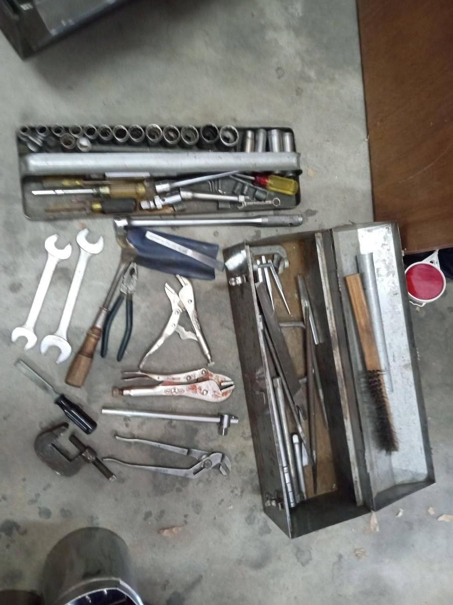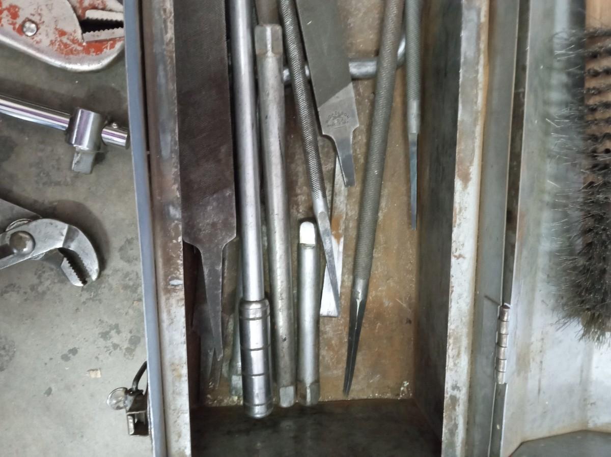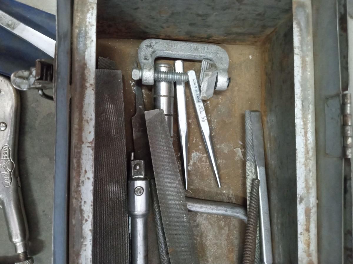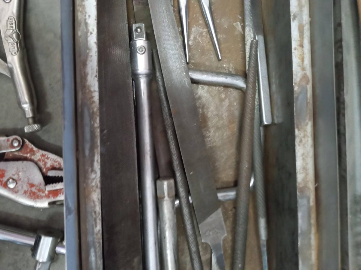 TOOL BOX FILLED WITH SOCKETS AND VARIOUS HAND TOOLS