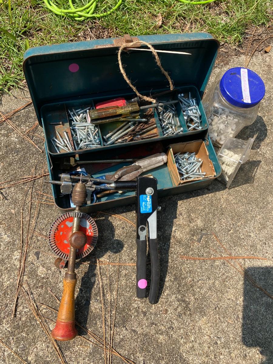 LOT 228 Blue Metal Vintage Tool Box w/ Contents