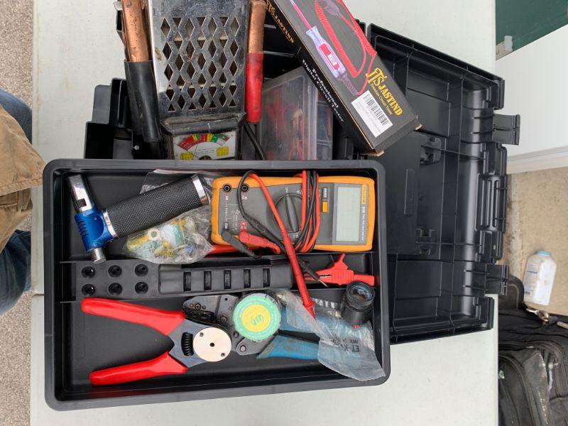 Tool box lot - Fluke 26iii , multimeter, battery tester, hand tools