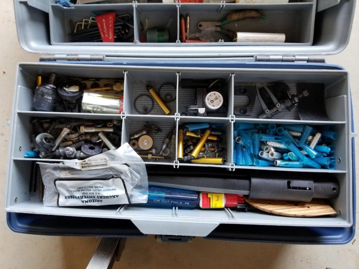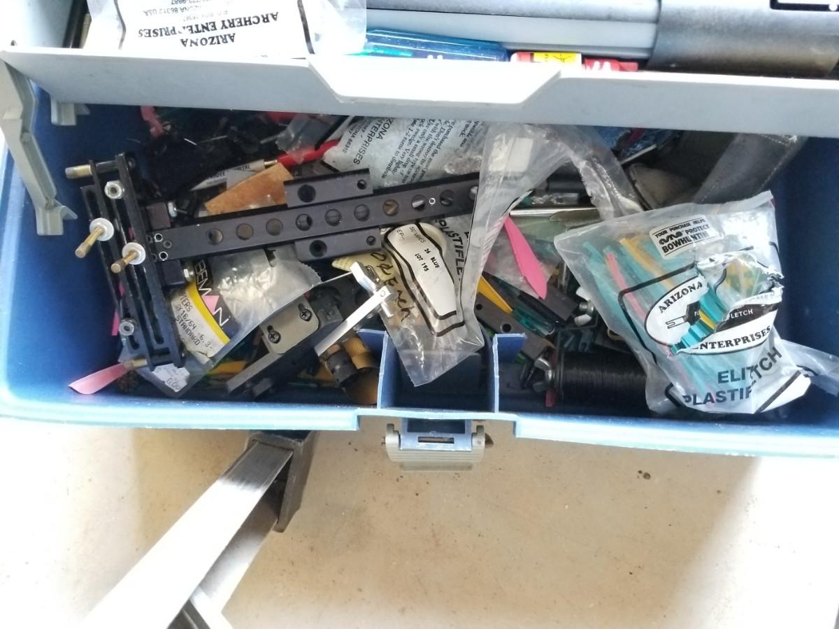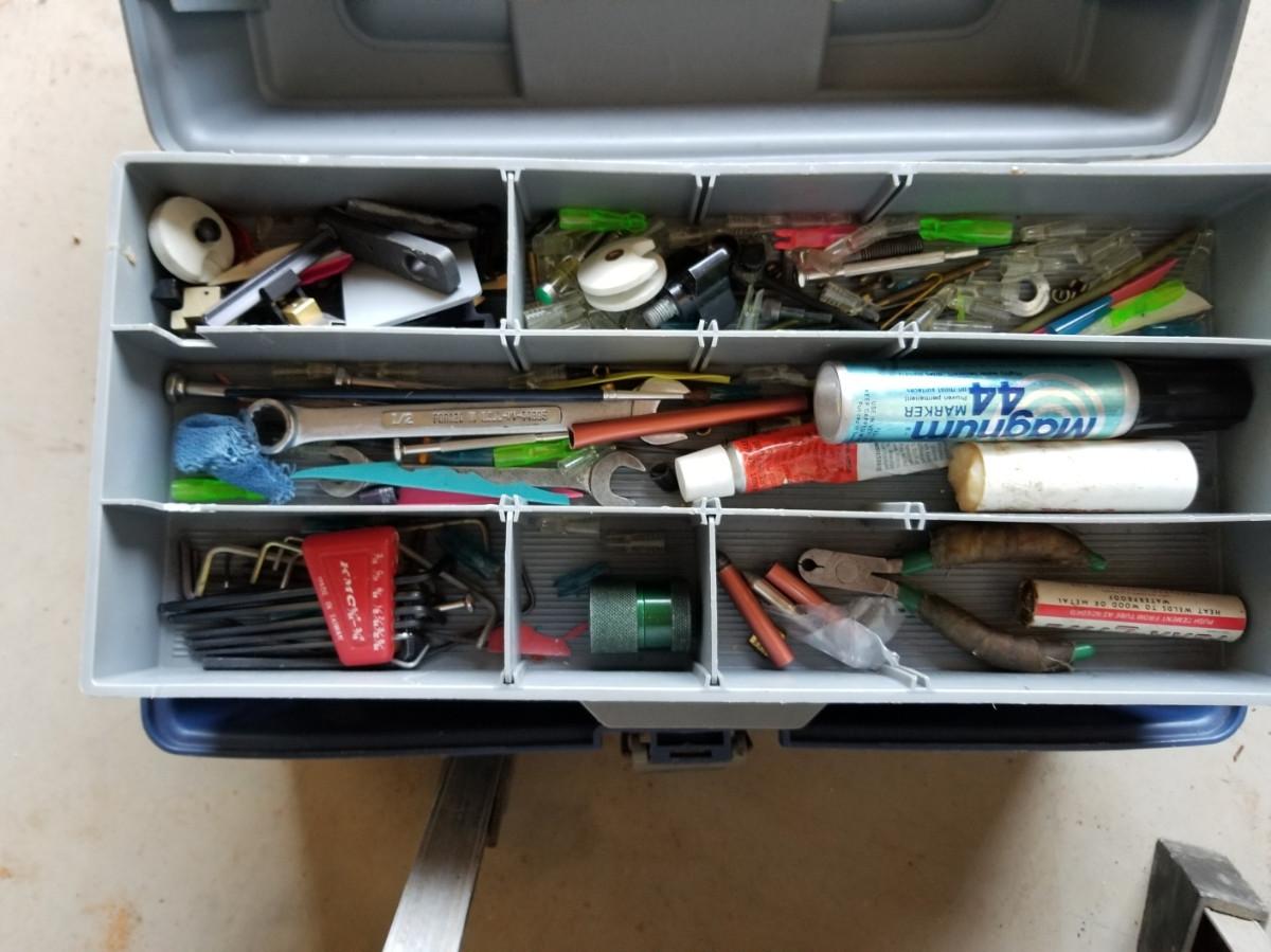 Tool box contains a lot of pieces for electrical and plumbing repair. There is more hardware we have included that are not pictures.